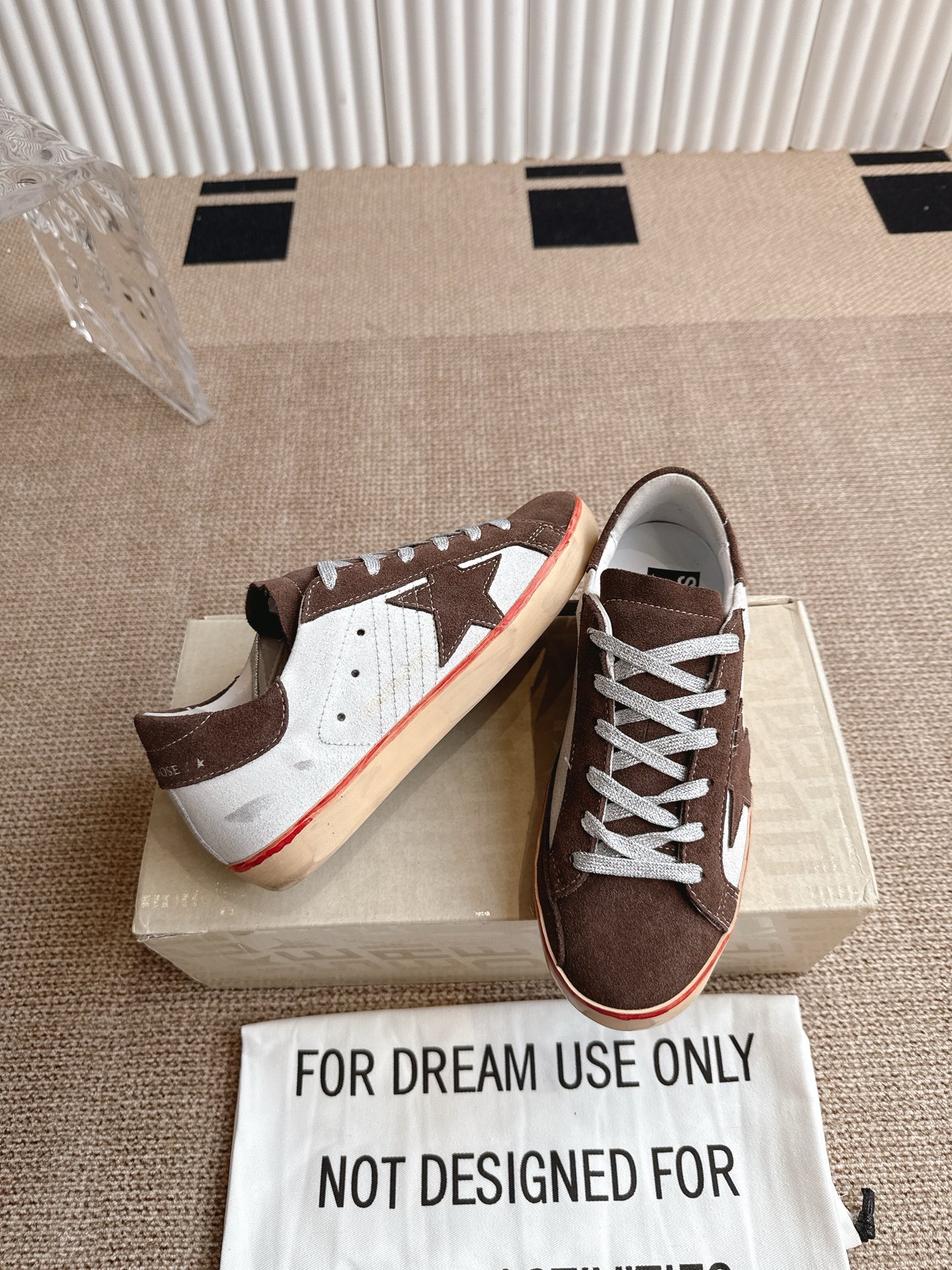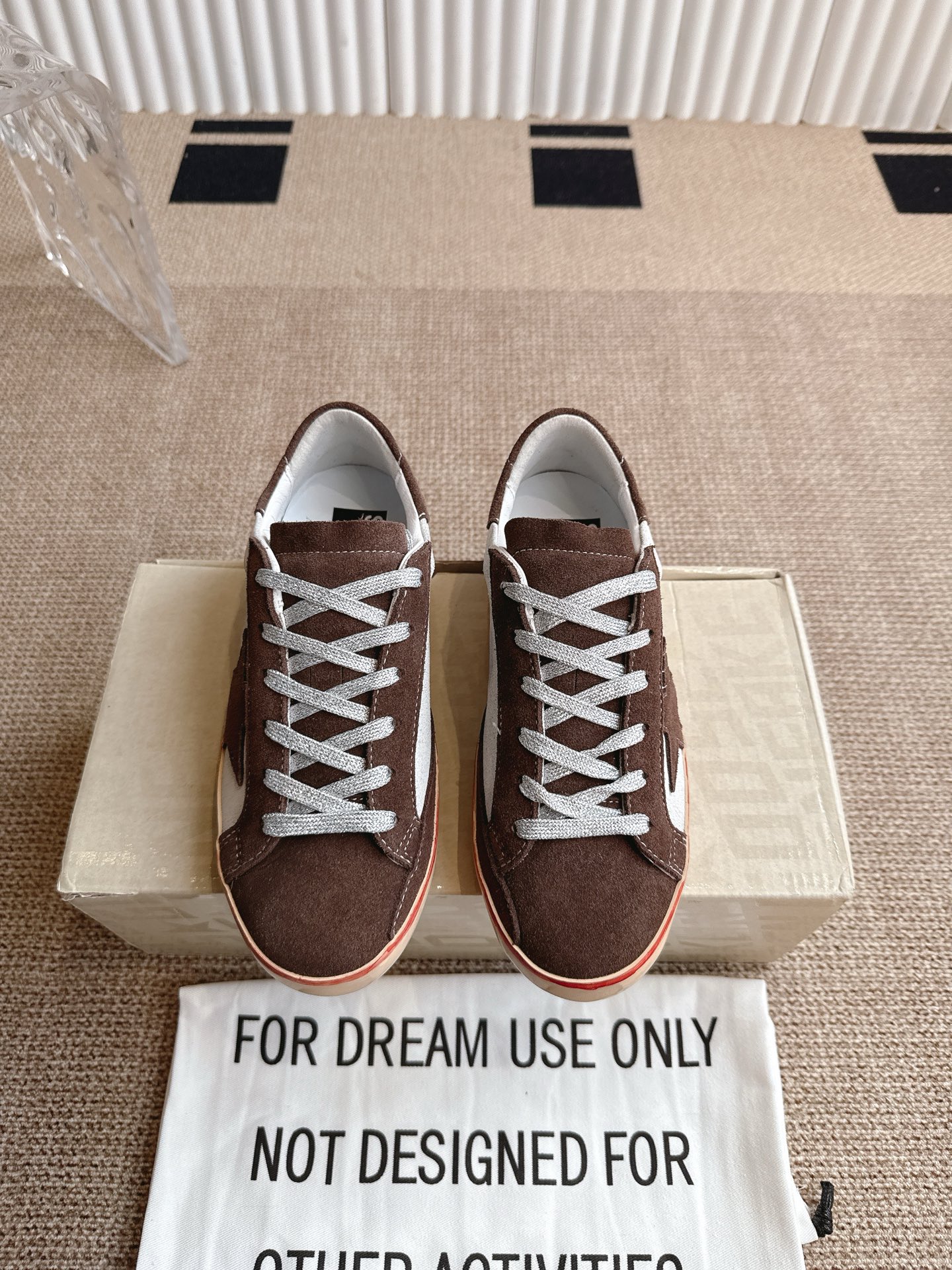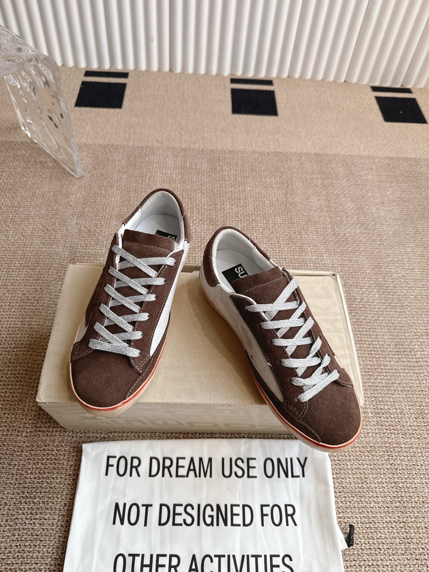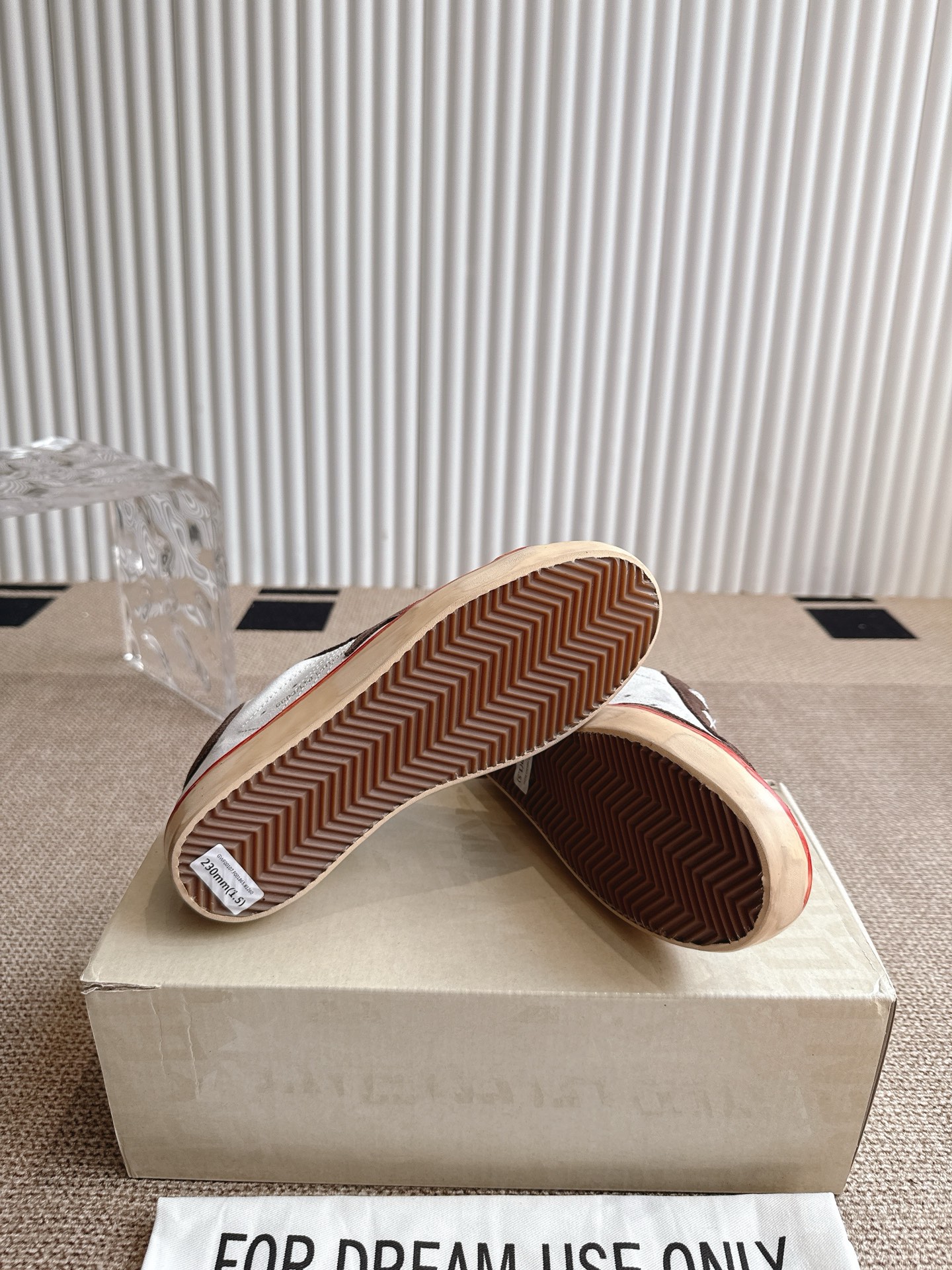 这款鞋子是AAAAA 1:1 质量 (非常棒). 使用了和原版一模一样的材料. 商标部分也保持了和Golden Goose一样. 图片拍摄是实物鞋子拍摄, 您所收到的实物保证和我们图片一模一样.