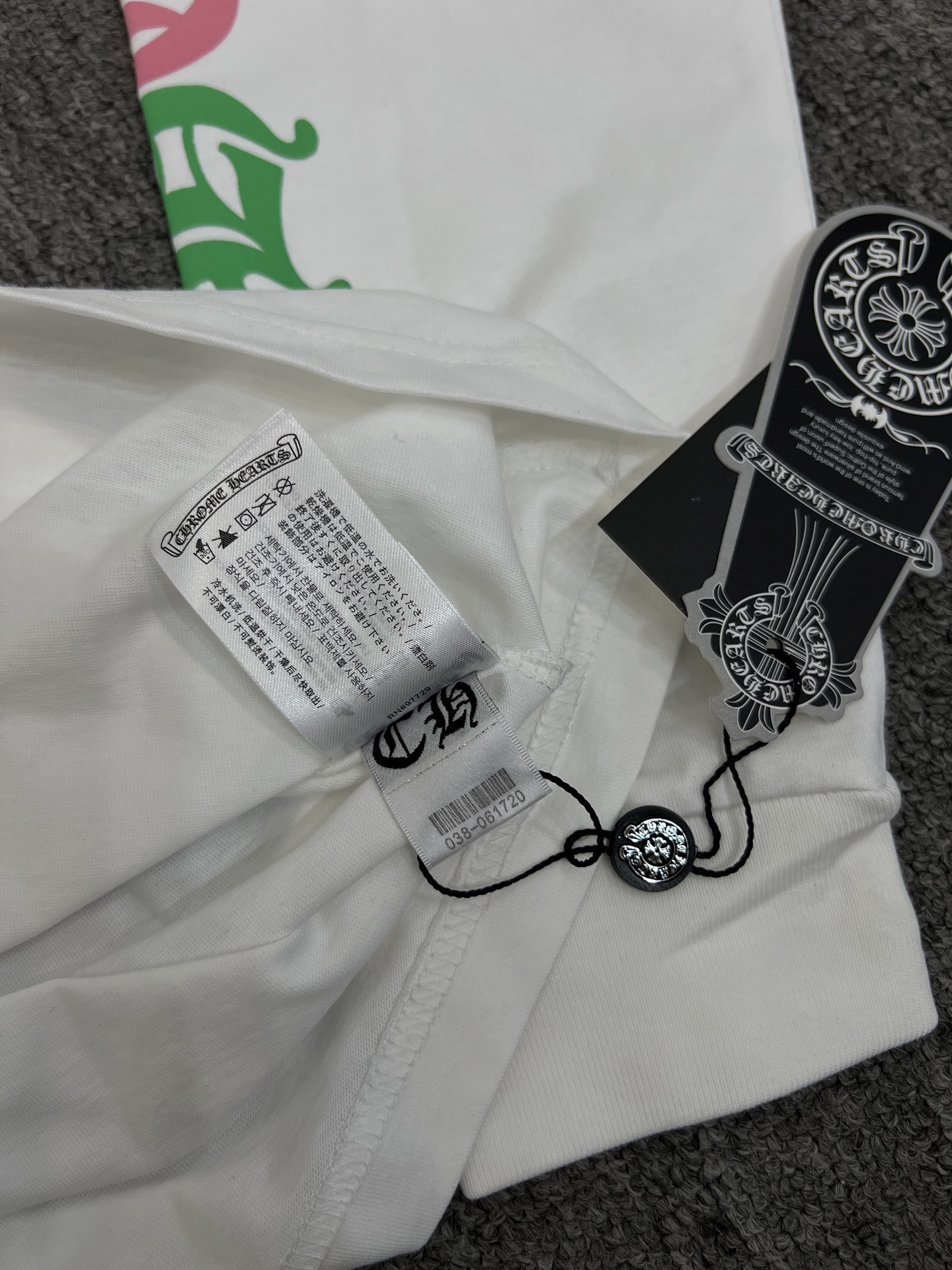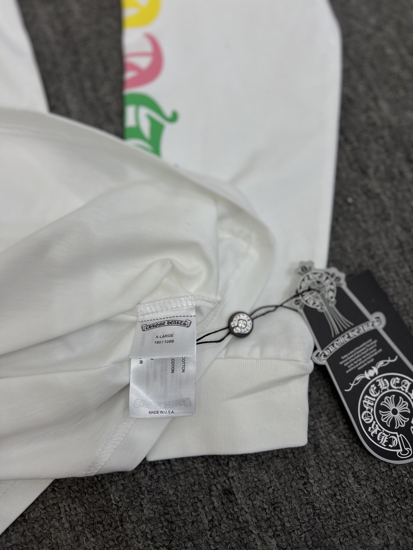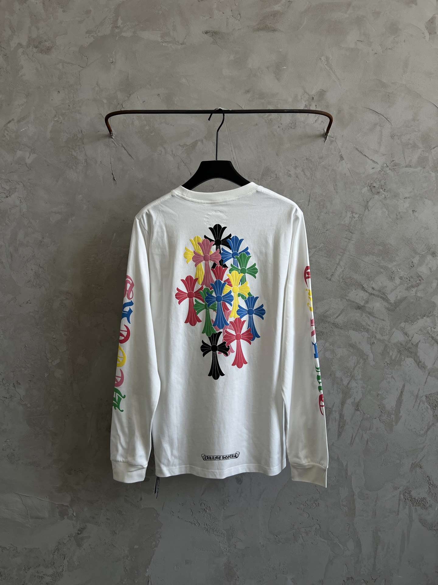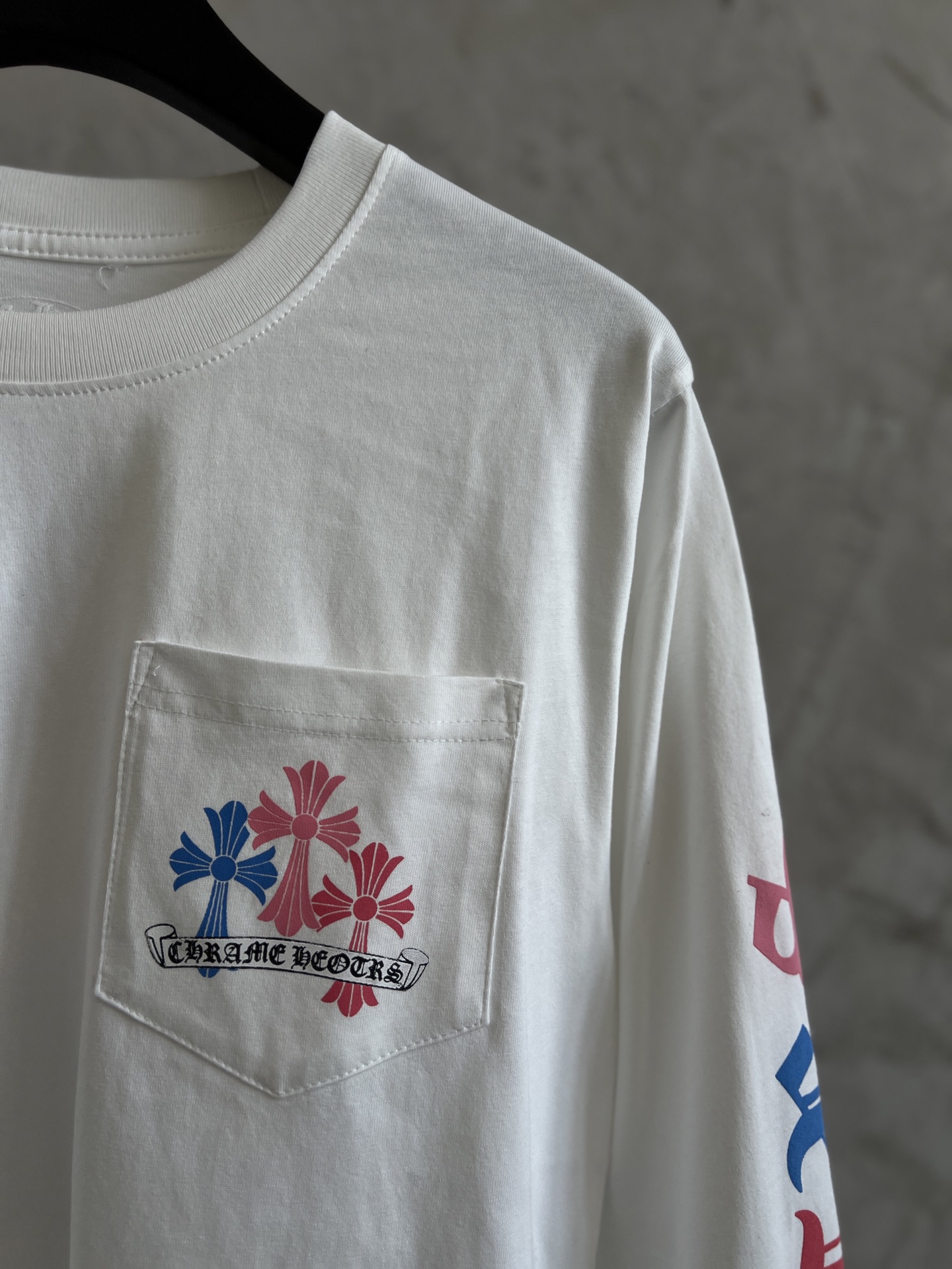 这款衣服是AAAAA 1:1 质量 (非常棒). 使用了和原版一模一样的材料. 商标部分也保持了和克罗心/Chrome Hearts一样. 图片拍摄是实物衣服拍摄, 您所收到的实物保证和我们图片一模一样.
