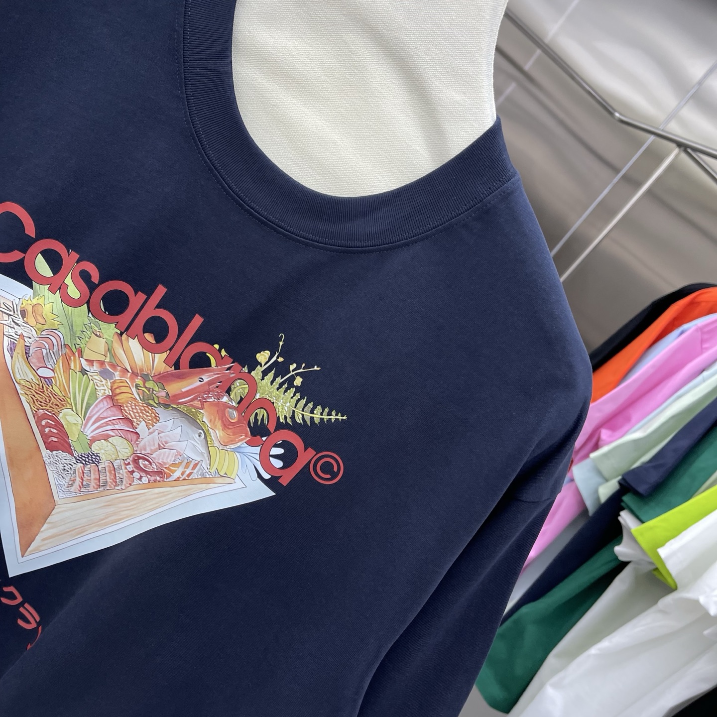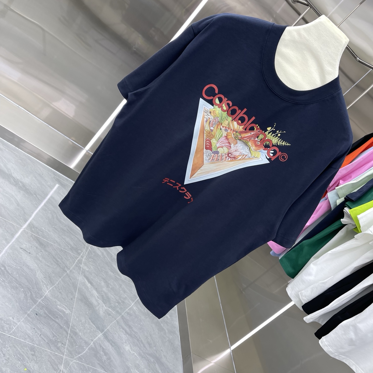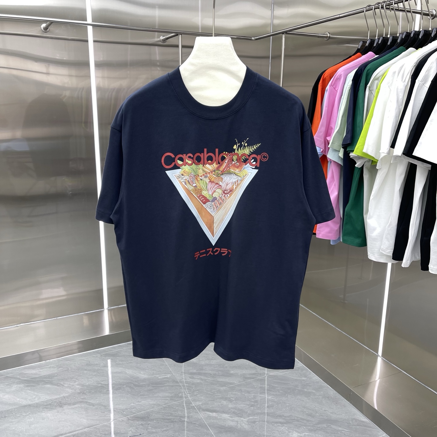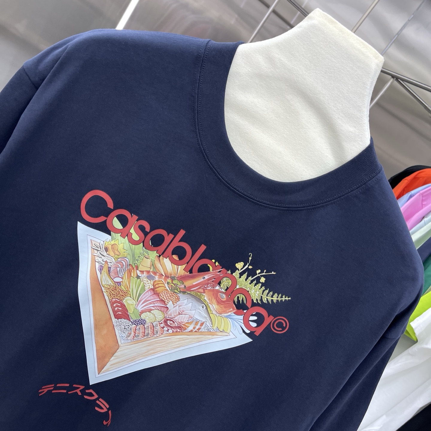 这款衣服是AAAAA 1:1 质量 (非常棒). 使用了和原版一模一样的材料. 商标部分也保持了和Casablanca一样. 图片拍摄是实物衣服拍摄, 您所收到的实物保证和我们图片一模一样.