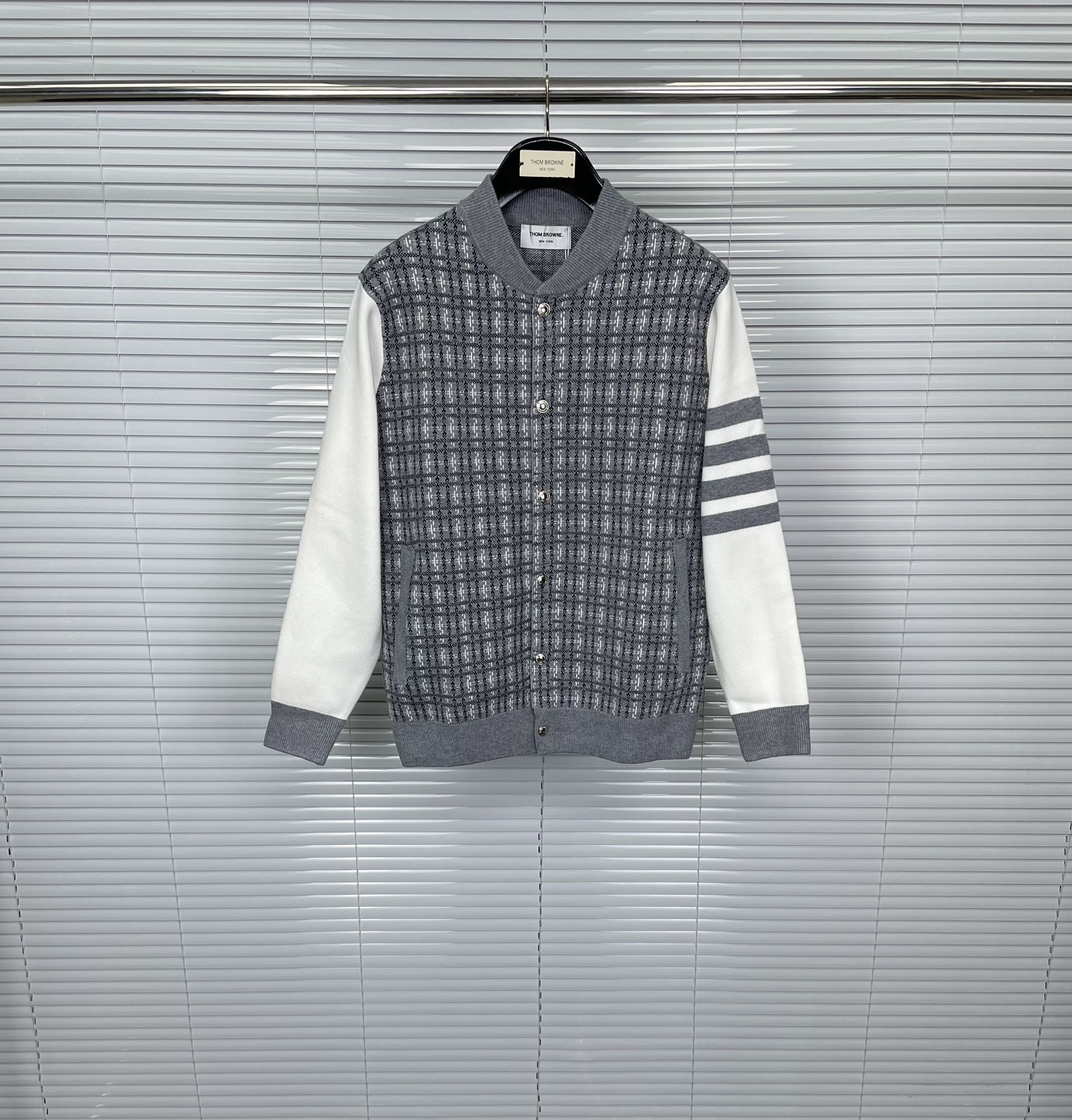 这款衣服是AAAAA 1:1 质量 (非常棒). 使用了和原版一模一样的材料. 商标部分也保持了和汤姆布朗/Thom Browne一样. 图片拍摄是实物衣服拍摄, 您所收到的实物保证和我们图片一模一样.