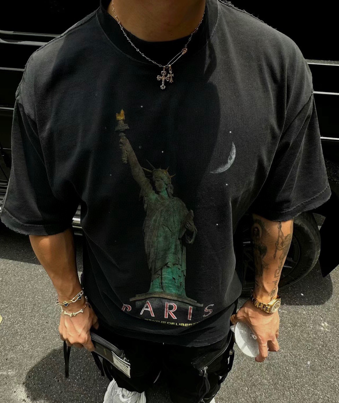 这款衣服是AAAAA 1:1 质量 (非常棒). 使用了和原版一模一样的材料. 商标部分也保持了和巴黎世家/Balenciaga一样. 图片拍摄是实物衣服拍摄, 您所收到的实物保证和我们图片一模一样.