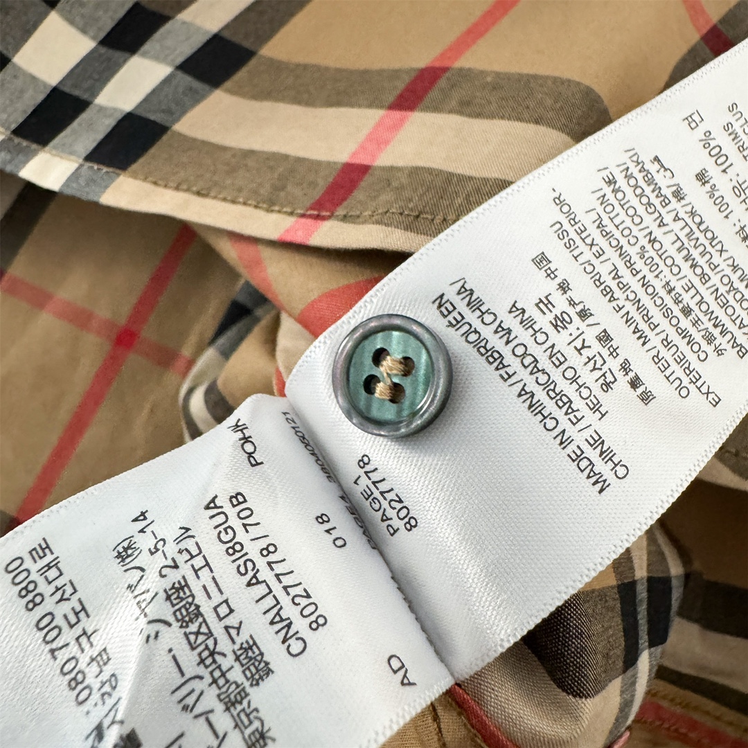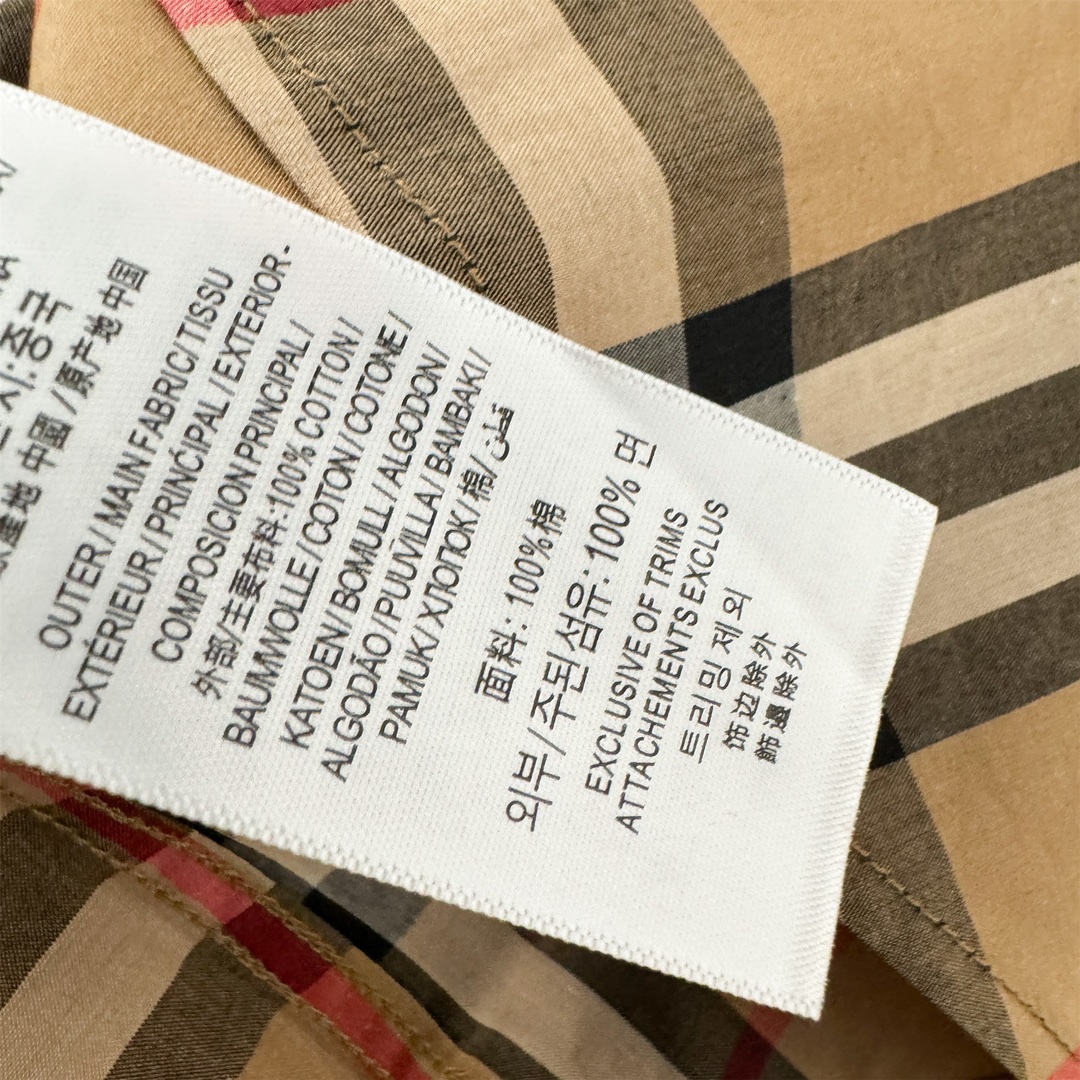 这款衣服是AAAAA 1:1 质量 (非常棒). 使用了和原版一模一样的材料. 商标部分也保持了和巴宝莉/Burberry一样. 图片拍摄是实物衣服拍摄, 您所收到的实物保证和我们图片一模一样.