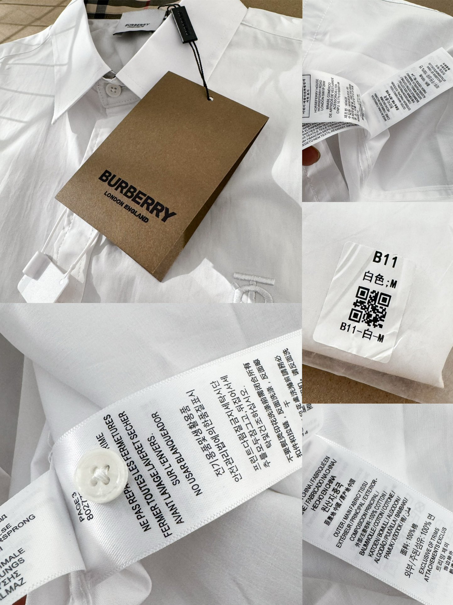 这款衣服是AAAAA 1:1 质量 (非常棒). 使用了和原版一模一样的材料. 商标部分也保持了和巴宝莉/Burberry一样. 图片拍摄是实物衣服拍摄, 您所收到的实物保证和我们图片一模一样.
