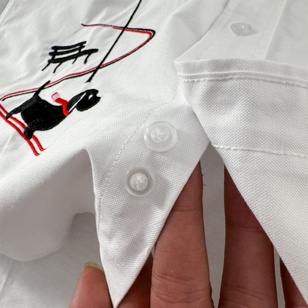 这款衣服是AAAAA 1:1 质量 (非常棒). 使用了和原版一模一样的材料. 商标部分也保持了和汤姆布朗/Thom Browne一样. 图片拍摄是实物衣服拍摄, 您所收到的实物保证和我们图片一模一样.