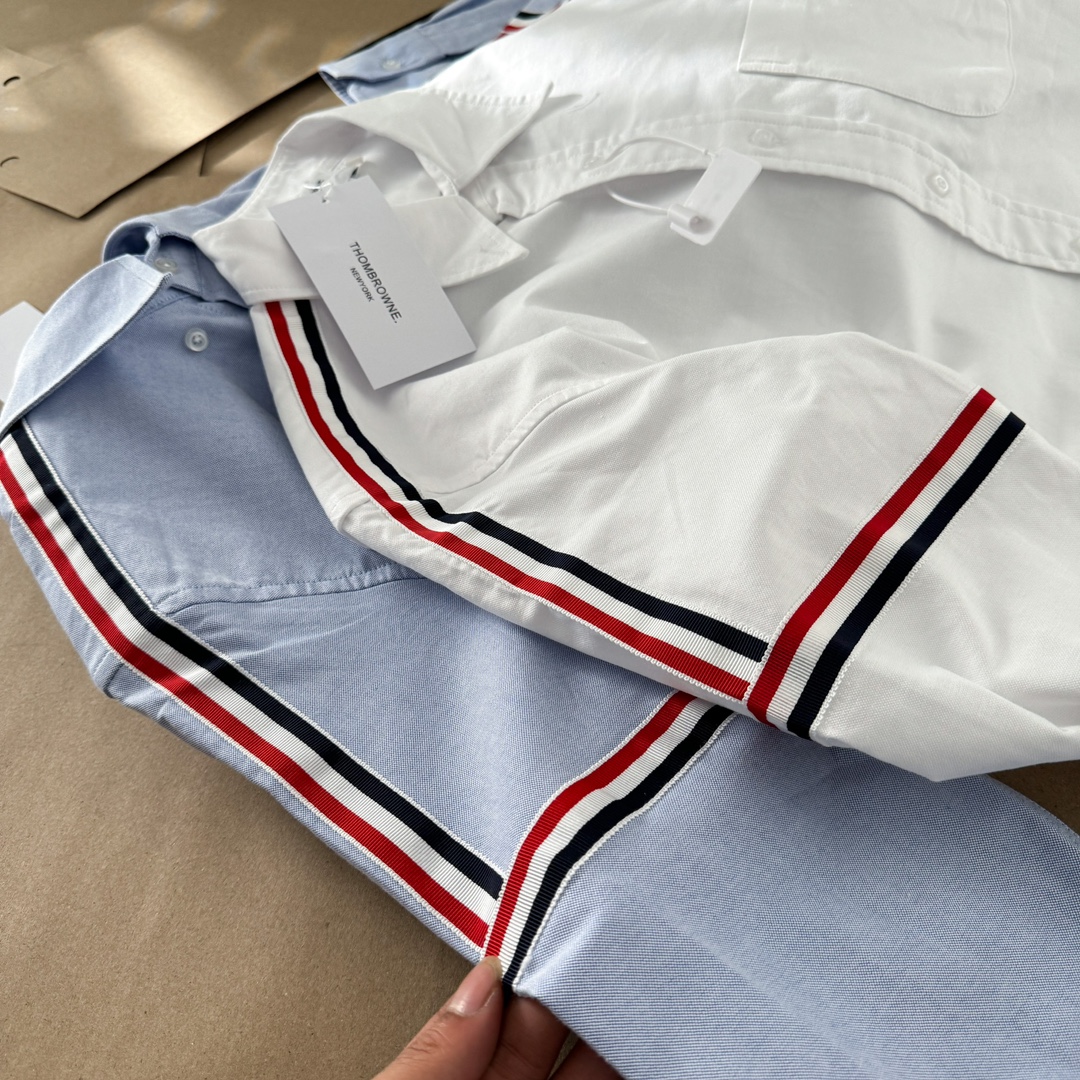 这款衣服是AAAAA 1:1 质量 (非常棒). 使用了和原版一模一样的材料. 商标部分也保持了和汤姆布朗/Thom Browne一样. 图片拍摄是实物衣服拍摄, 您所收到的实物保证和我们图片一模一样.
