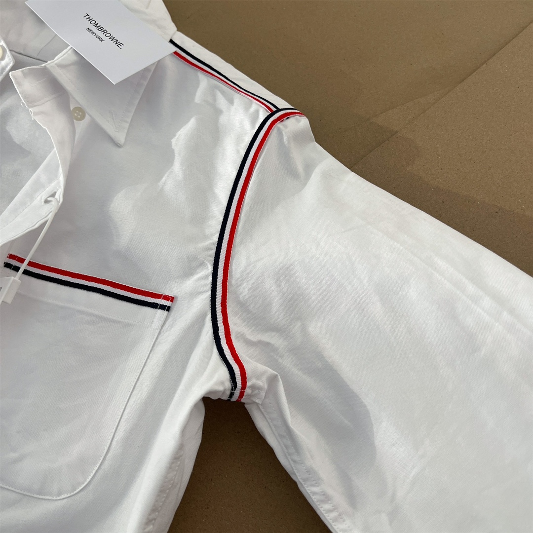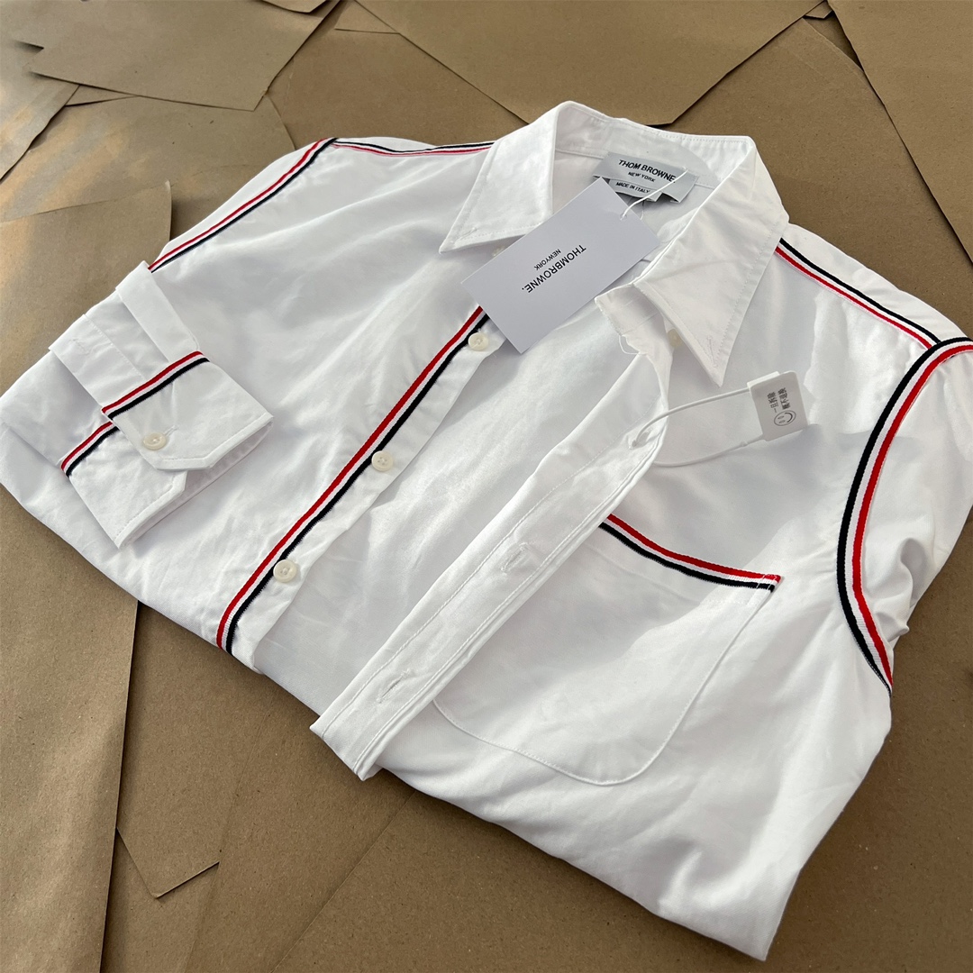 这款衣服是AAAAA 1:1 质量 (非常棒). 使用了和原版一模一样的材料. 商标部分也保持了和汤姆布朗/Thom Browne一样. 图片拍摄是实物衣服拍摄, 您所收到的实物保证和我们图片一模一样.