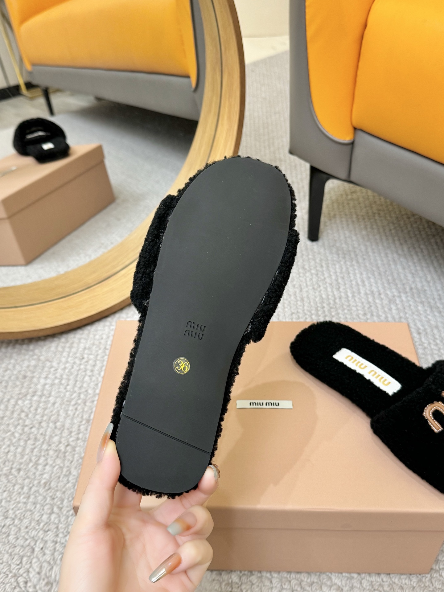 这款鞋子是AAAAA 1:1 质量 (非常棒). 使用了和原版一模一样的材料. 商标部分也保持了和缪缪/Miu Miu一样. 图片拍摄是实物鞋子拍摄, 您所收到的实物保证和我们图片一模一样.