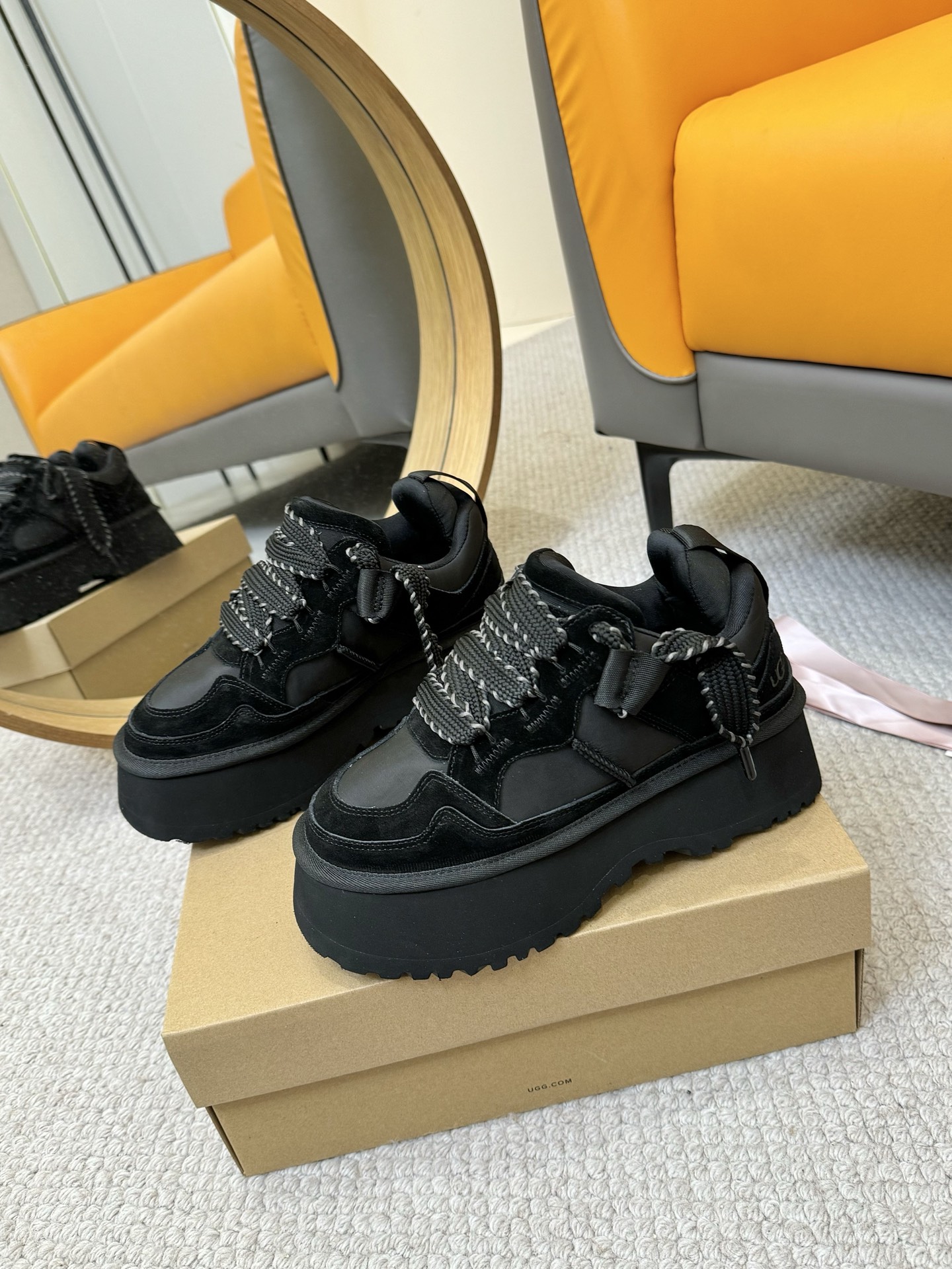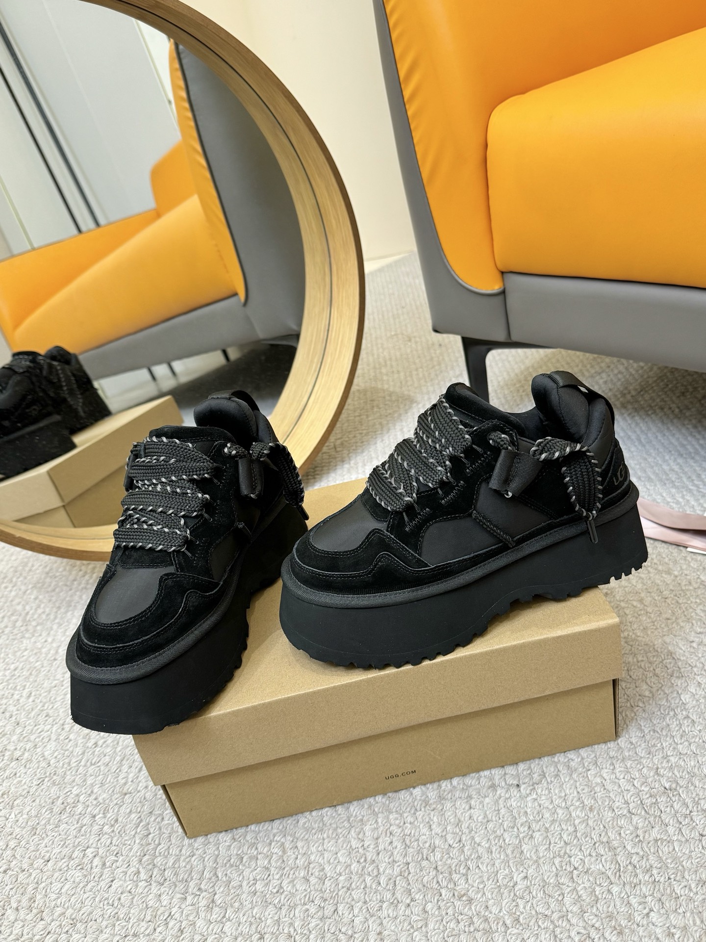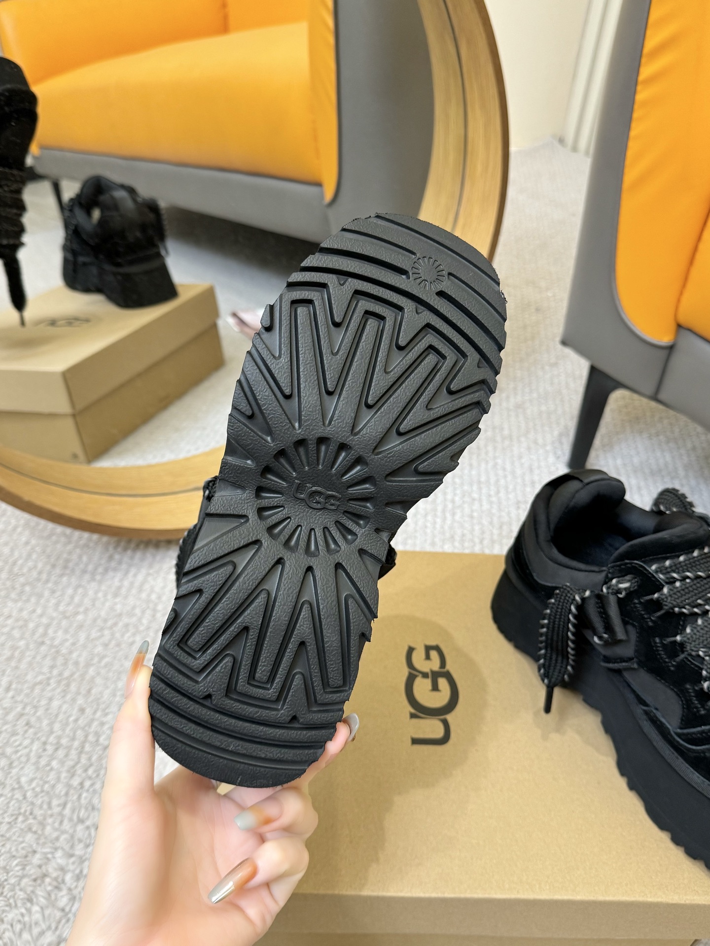 这款鞋子是AAAAA 1:1 质量 (非常棒). 使用了和原版一模一样的材料. 商标部分也保持了和UGG雪地靴一样. 图片拍摄是实物鞋子拍摄, 您所收到的实物保证和我们图片一模一样.