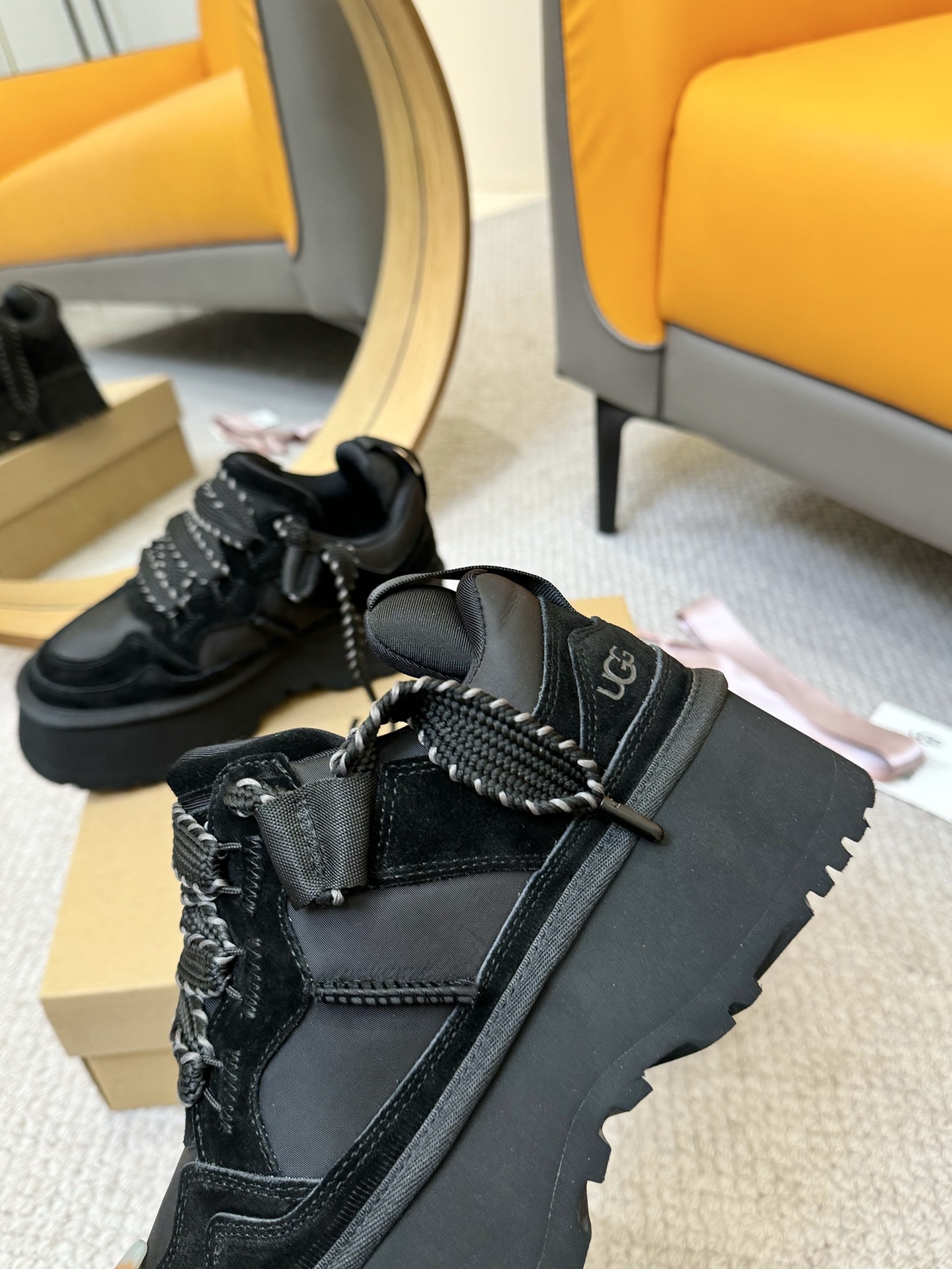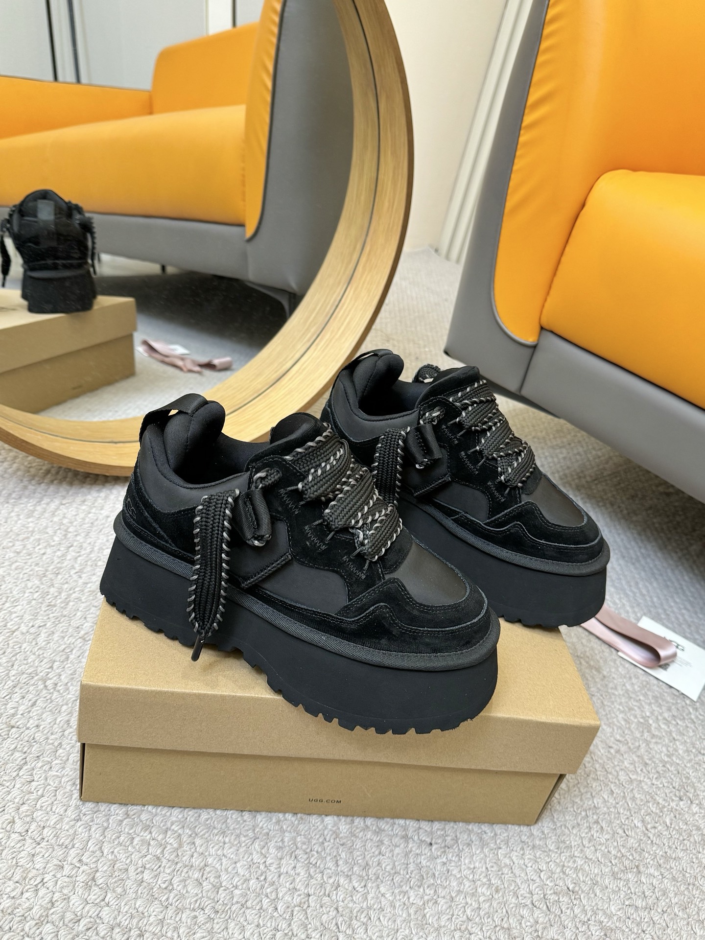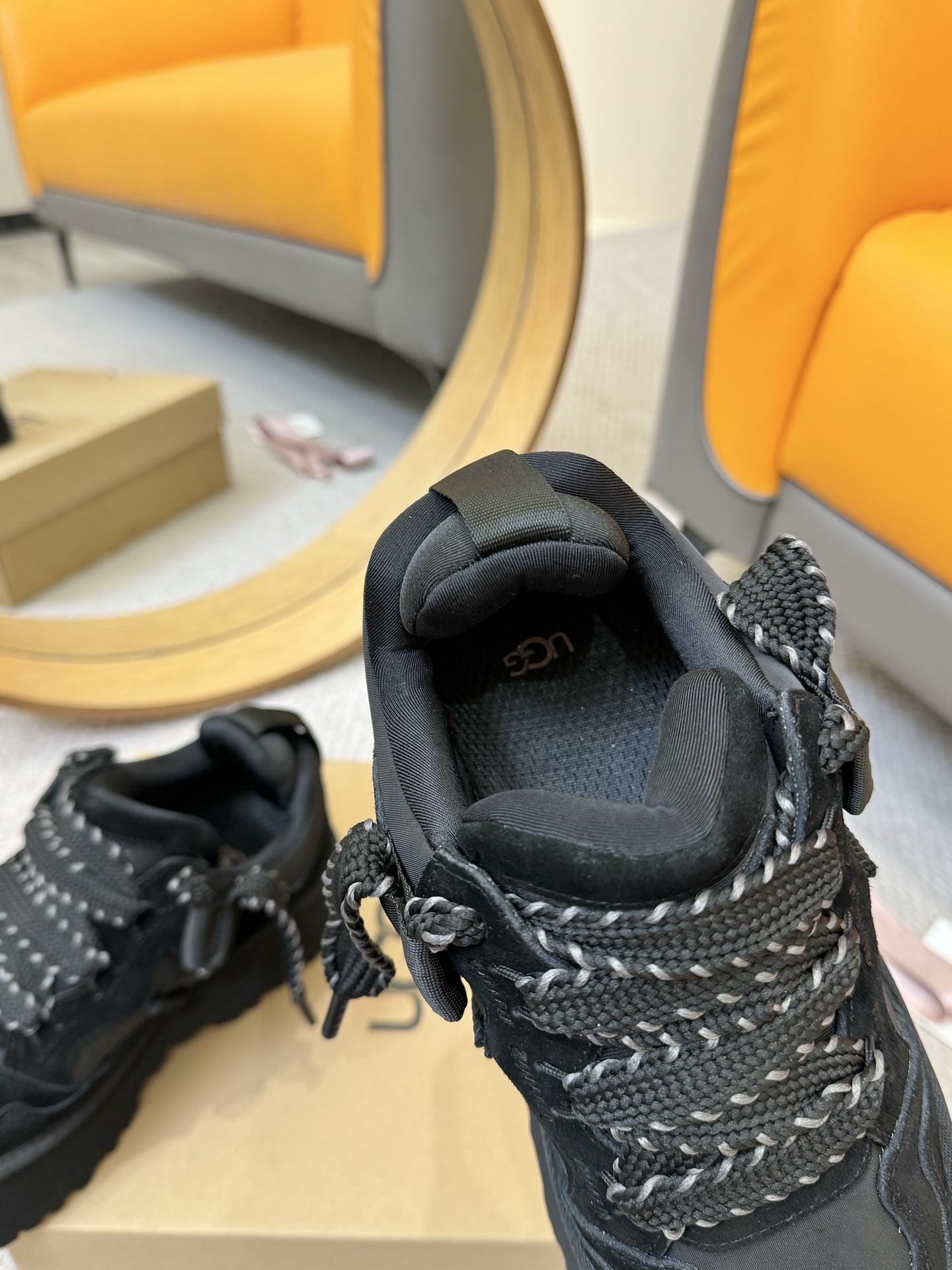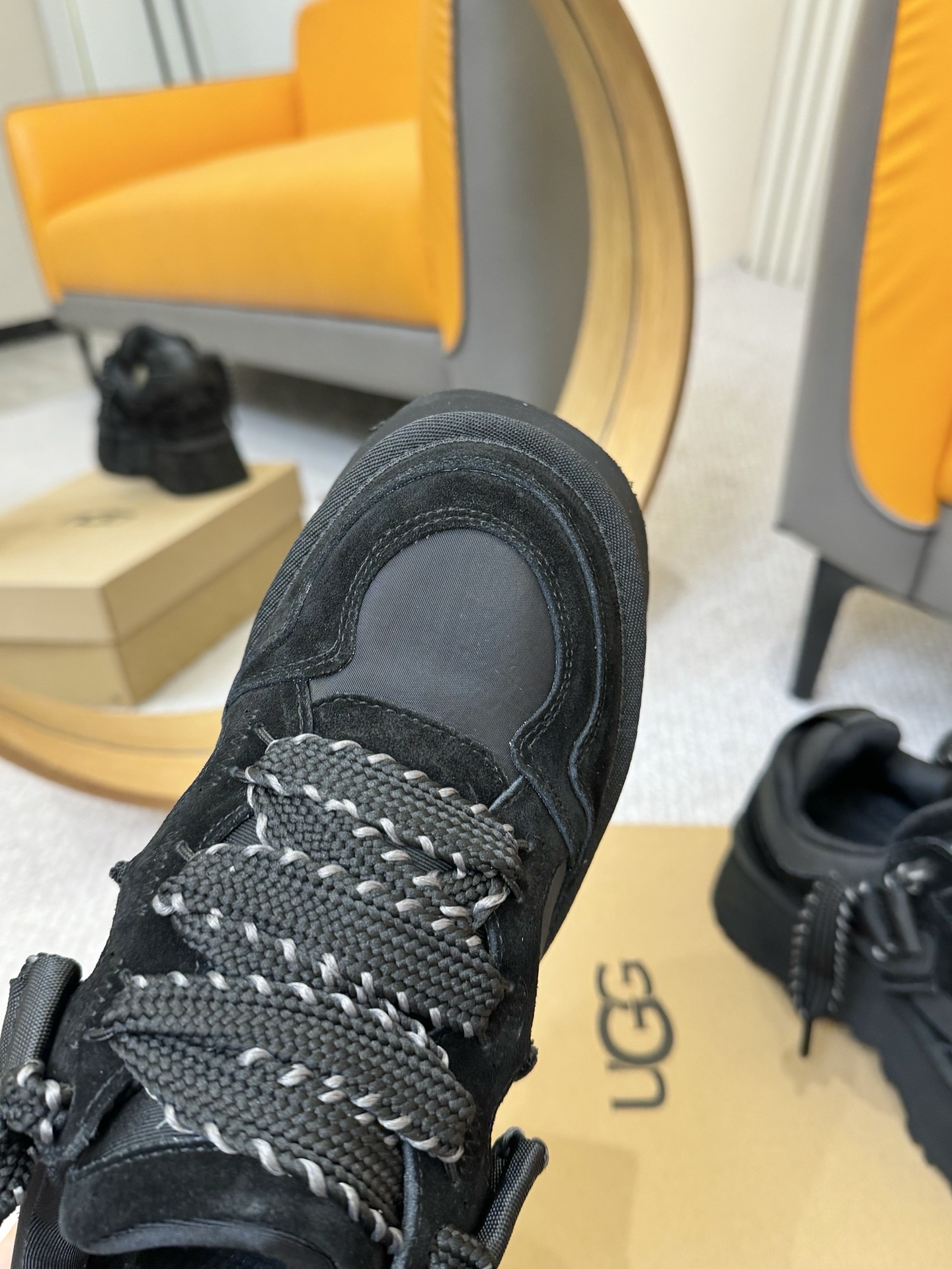 这款鞋子是AAAAA 1:1 质量 (非常棒). 使用了和原版一模一样的材料. 商标部分也保持了和UGG雪地靴一样. 图片拍摄是实物鞋子拍摄, 您所收到的实物保证和我们图片一模一样.