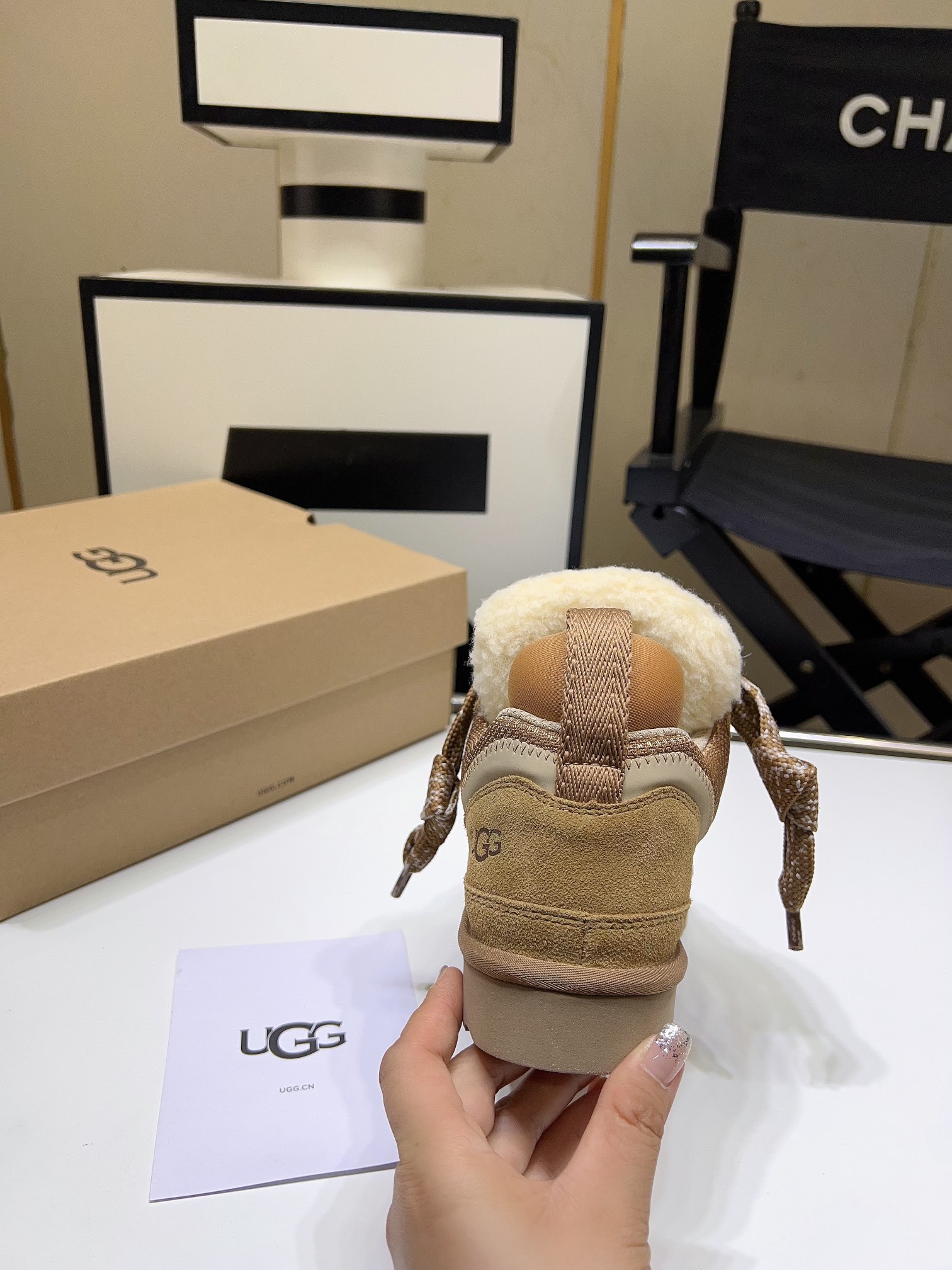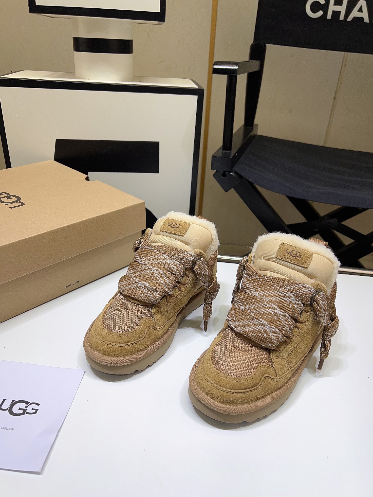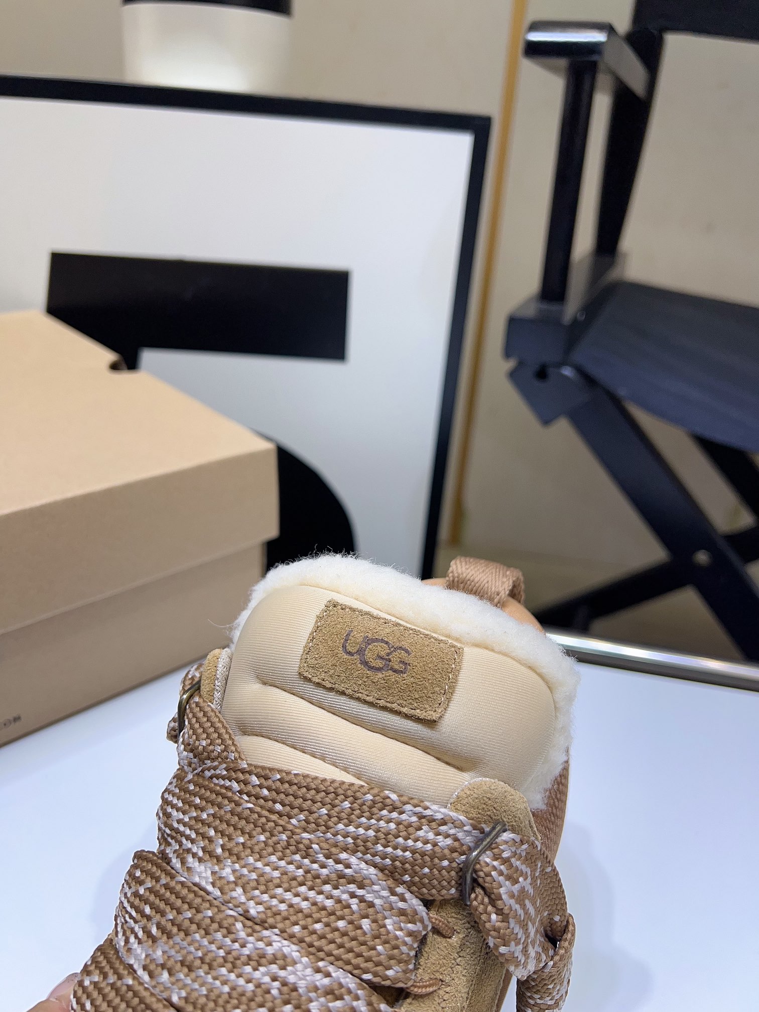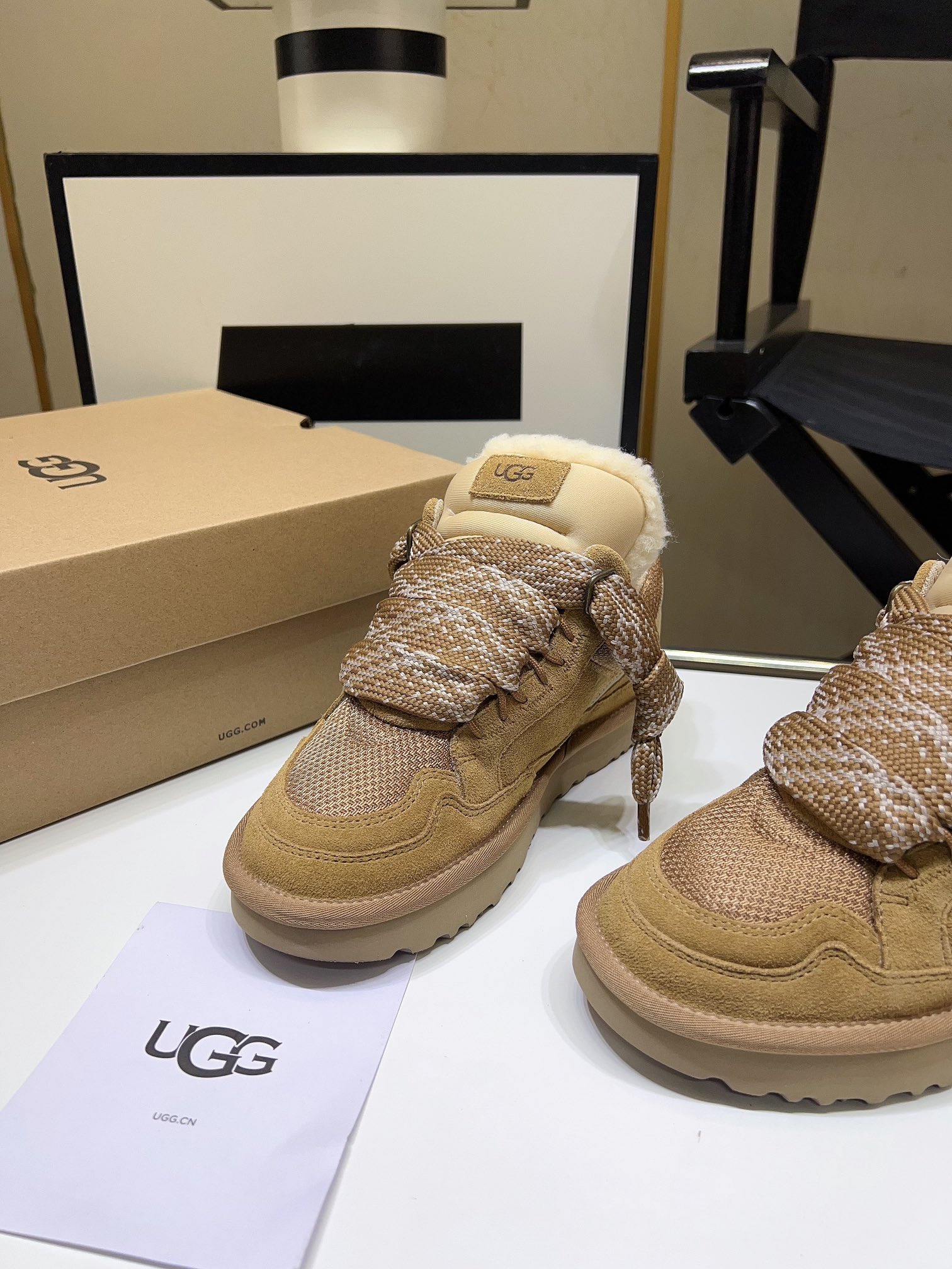 这款鞋子是AAAAA 1:1 质量 (非常棒). 使用了和原版一模一样的材料. 商标部分也保持了和UGG雪地靴一样. 图片拍摄是实物鞋子拍摄, 您所收到的实物保证和我们图片一模一样.