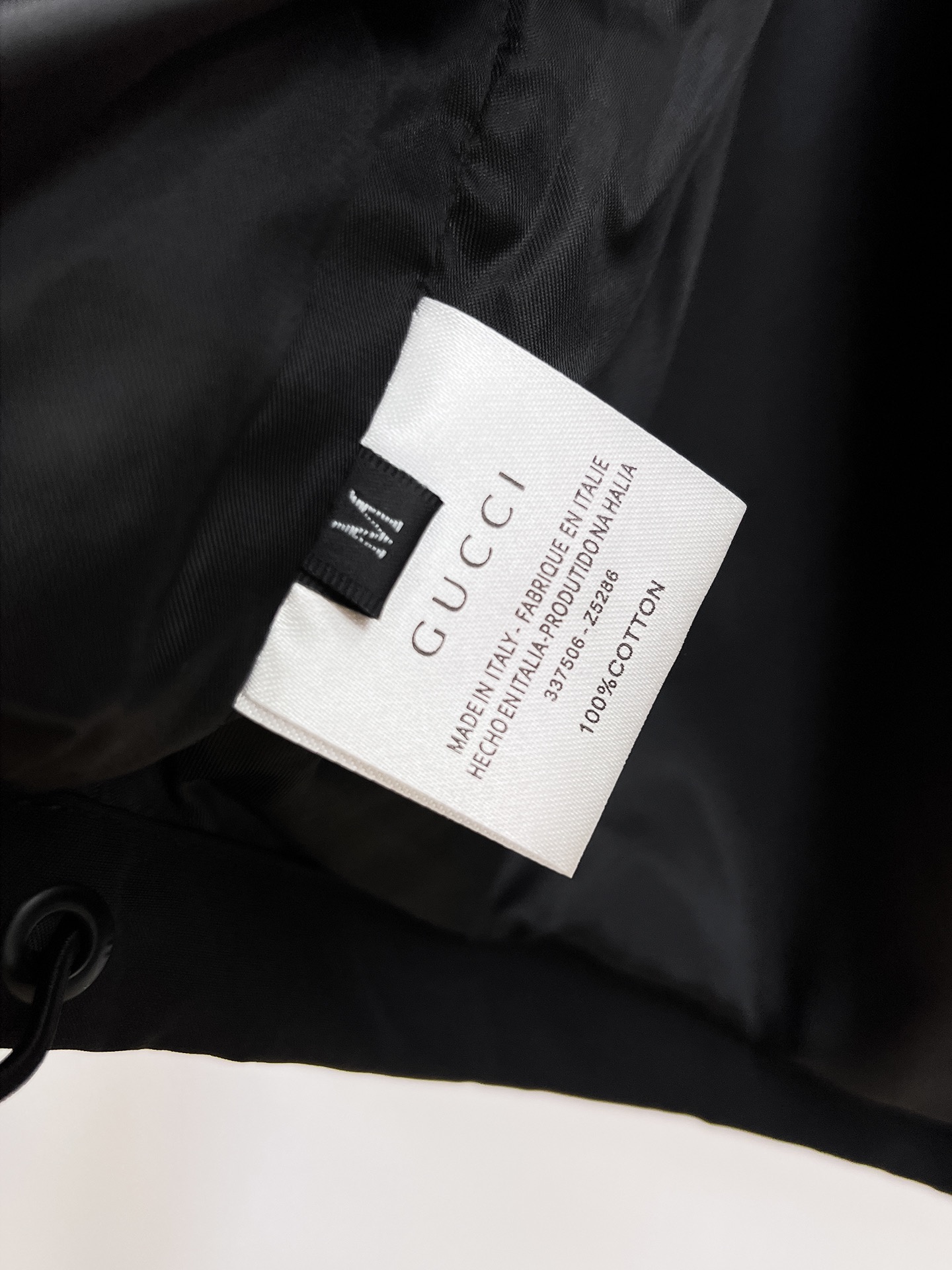 这款衣服是AAAAA 1:1 质量 (非常棒). 使用了和原版一模一样的材料. 商标部分也保持了和古奇/Gucci一样. 图片拍摄是实物衣服拍摄, 您所收到的实物保证和我们图片一模一样.
