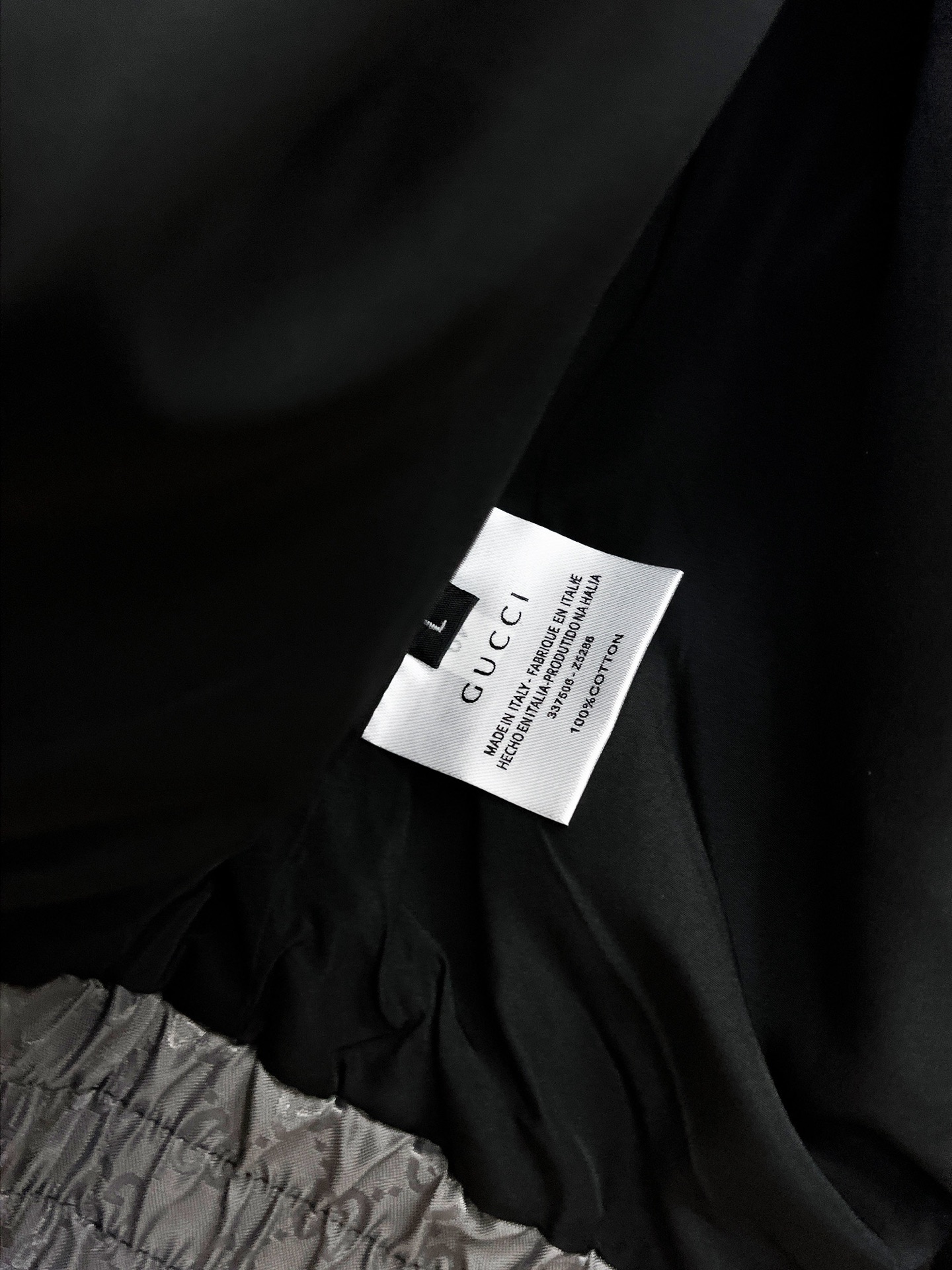 这款衣服是AAAAA 1:1 质量 (非常棒). 使用了和原版一模一样的材料. 商标部分也保持了和古奇/Gucci一样. 图片拍摄是实物衣服拍摄, 您所收到的实物保证和我们图片一模一样.