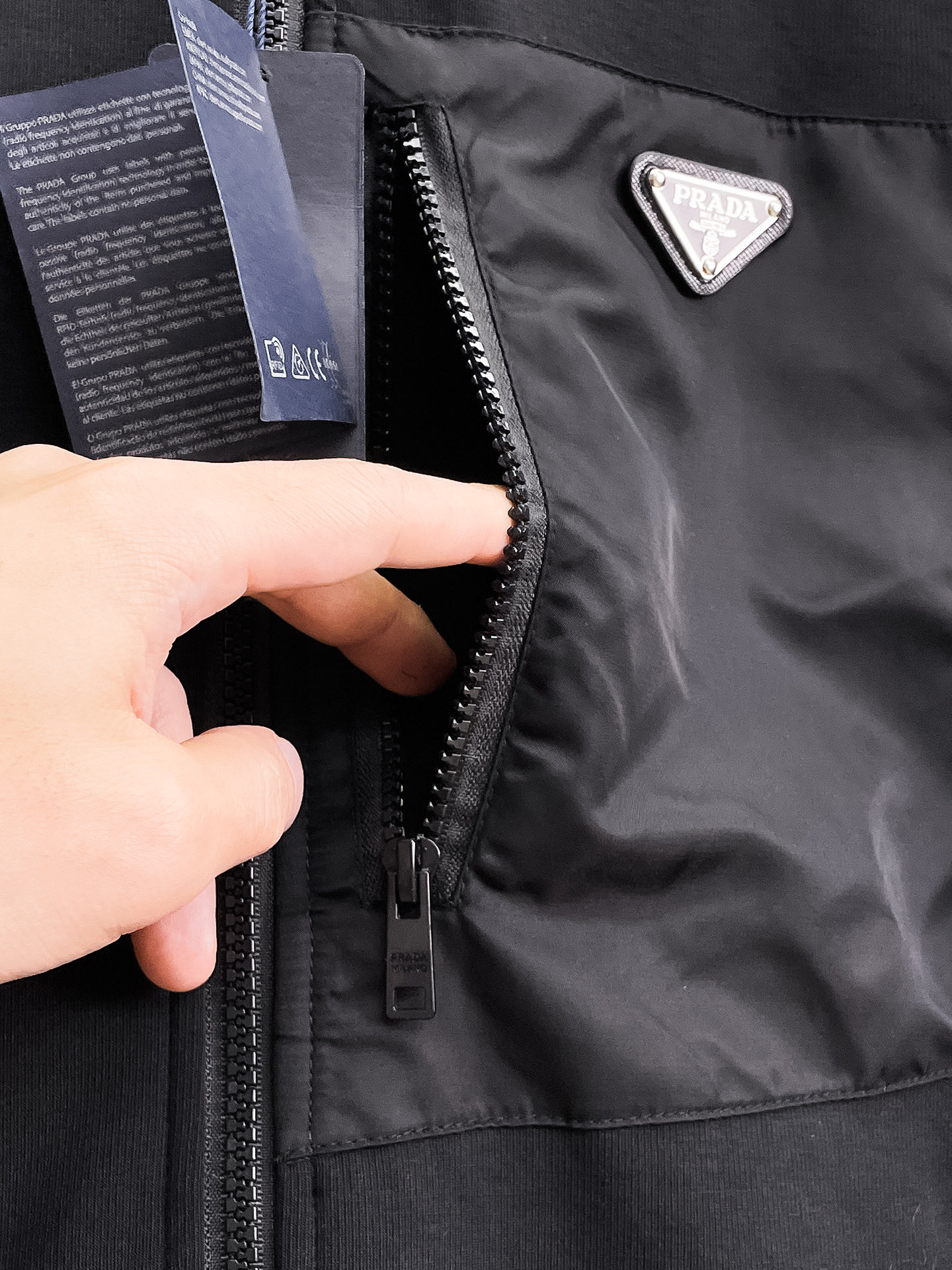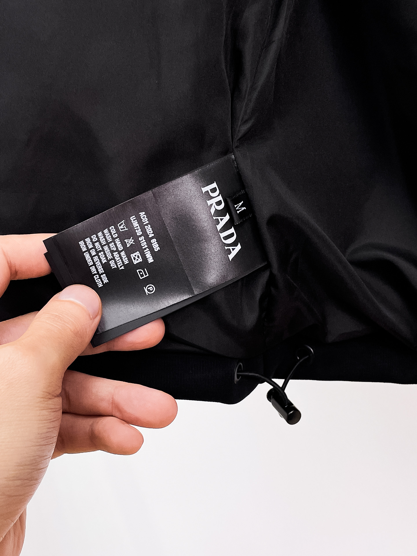 这款衣服是AAAAA 1:1 质量 (非常棒). 使用了和原版一模一样的材料. 商标部分也保持了和普拉达/Prada一样. 图片拍摄是实物衣服拍摄, 您所收到的实物保证和我们图片一模一样.