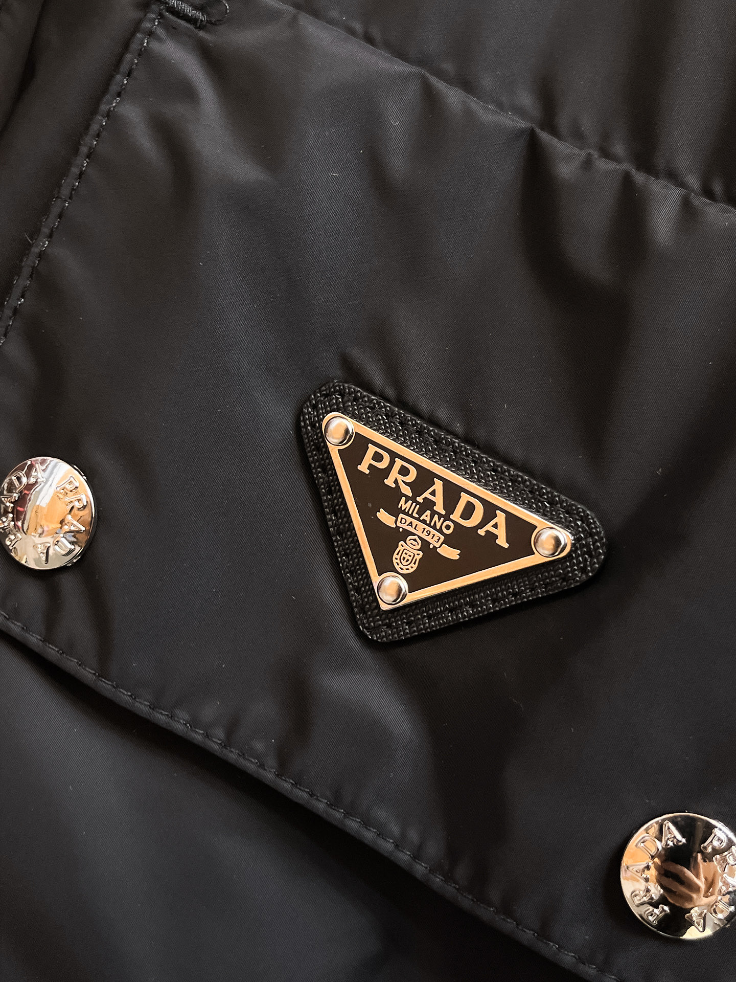 这款衣服是AAAAA 1:1 质量 (非常棒). 使用了和原版一模一样的材料. 商标部分也保持了和普拉达/Prada一样. 图片拍摄是实物衣服拍摄, 您所收到的实物保证和我们图片一模一样.