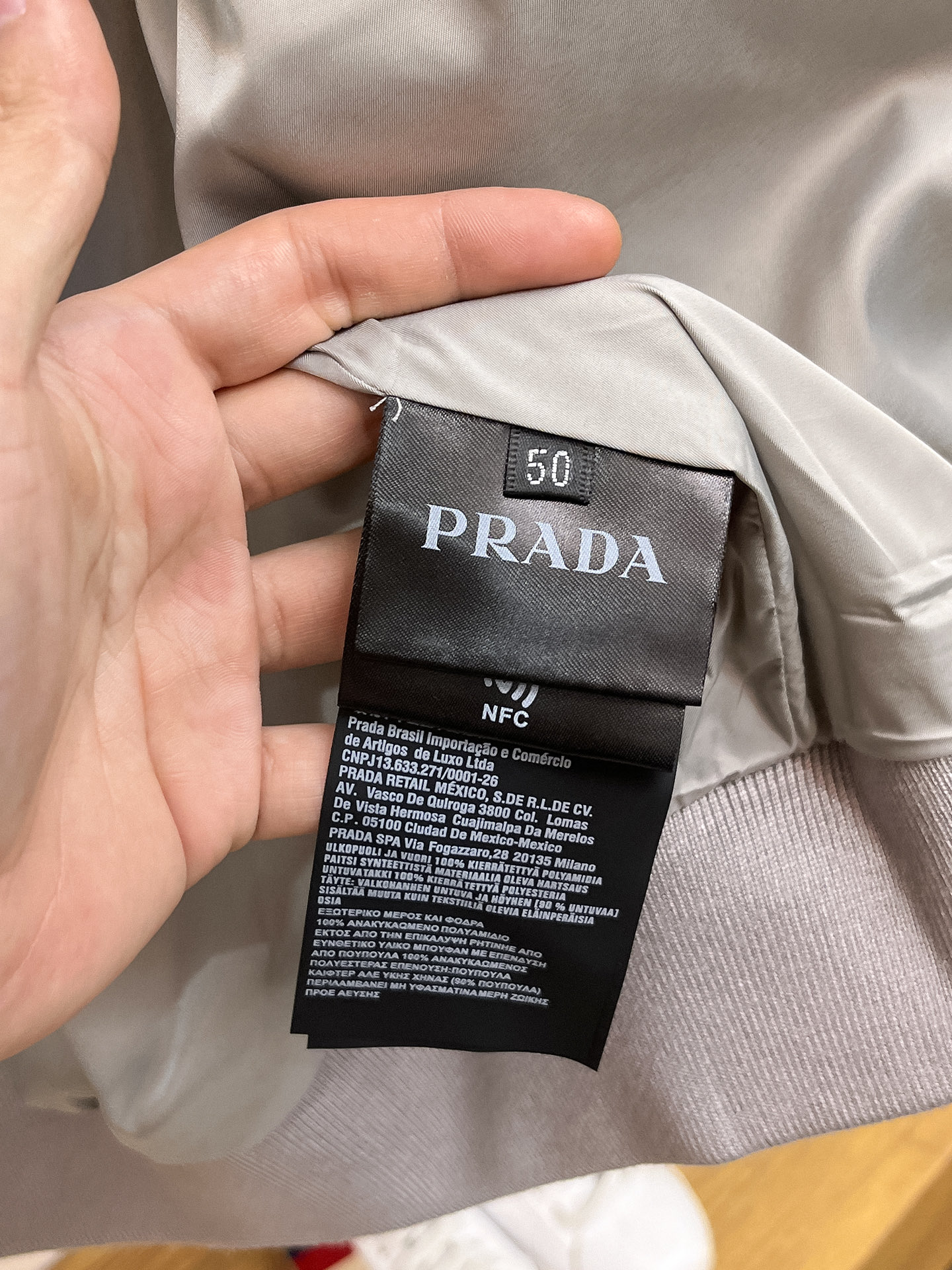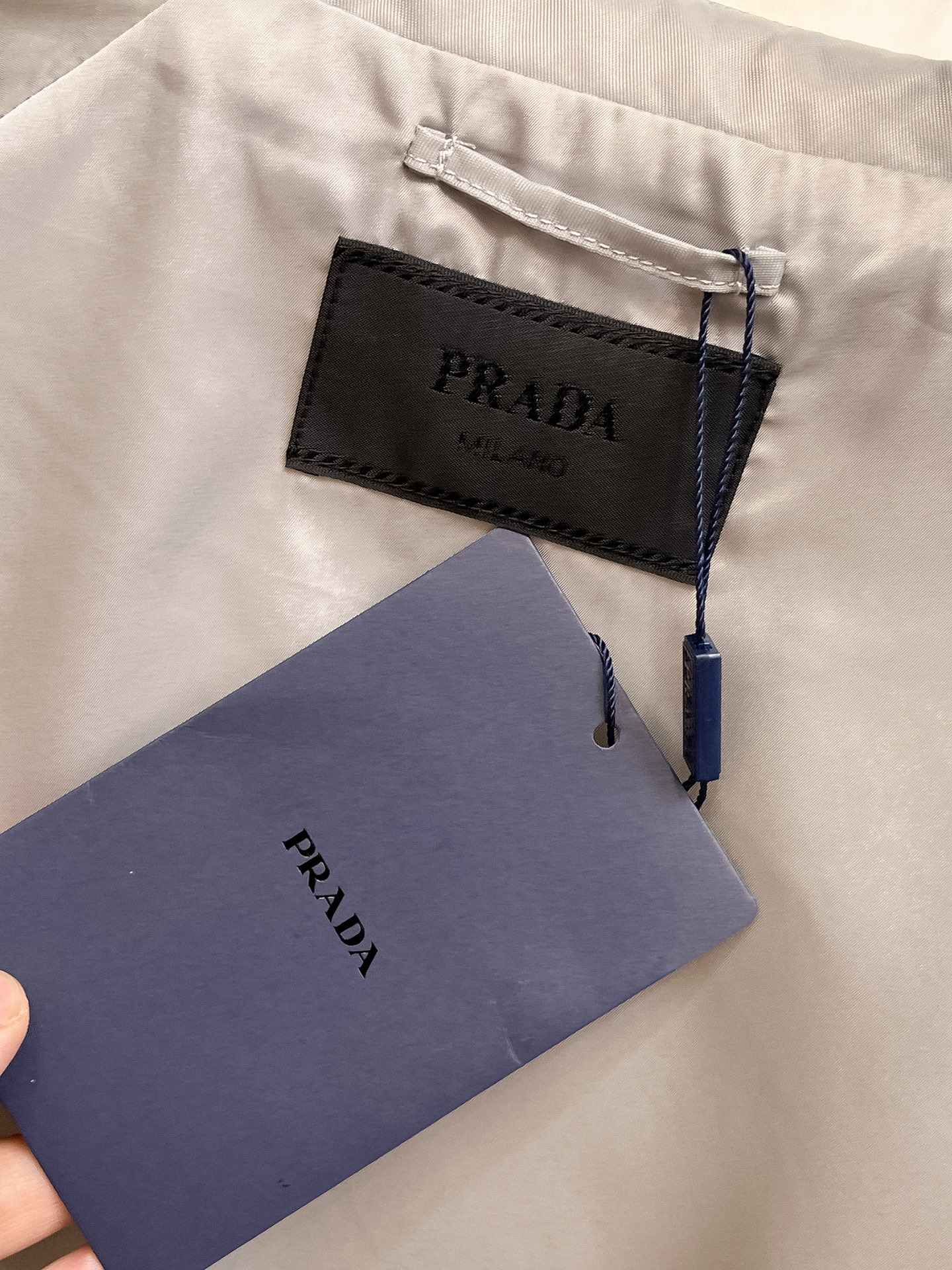 这款衣服是AAAAA 1:1 质量 (非常棒). 使用了和原版一模一样的材料. 商标部分也保持了和普拉达/Prada一样. 图片拍摄是实物衣服拍摄, 您所收到的实物保证和我们图片一模一样.