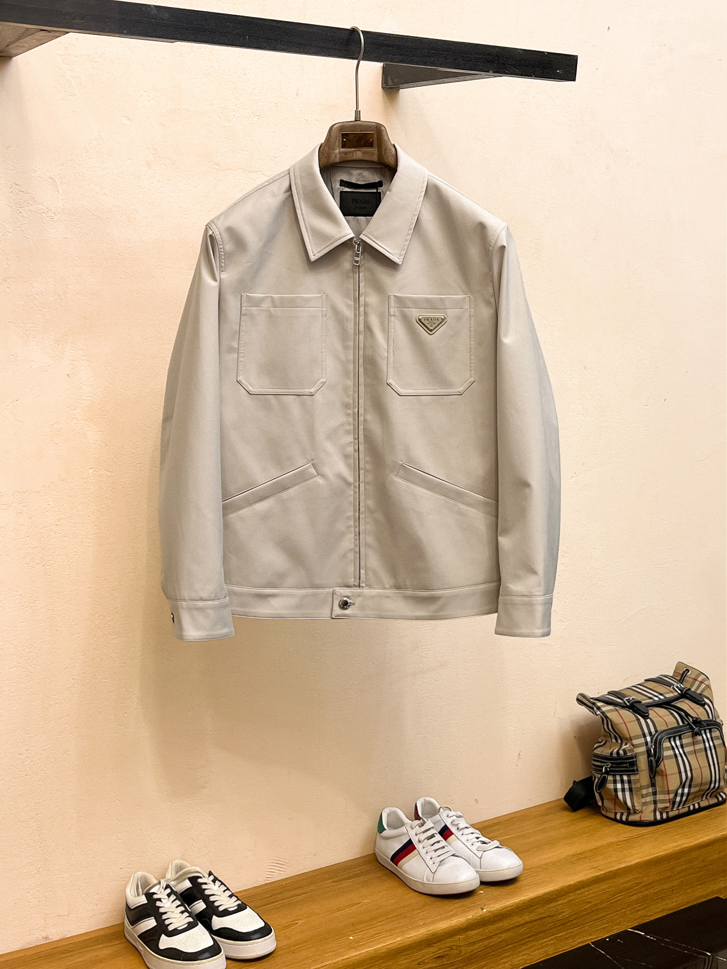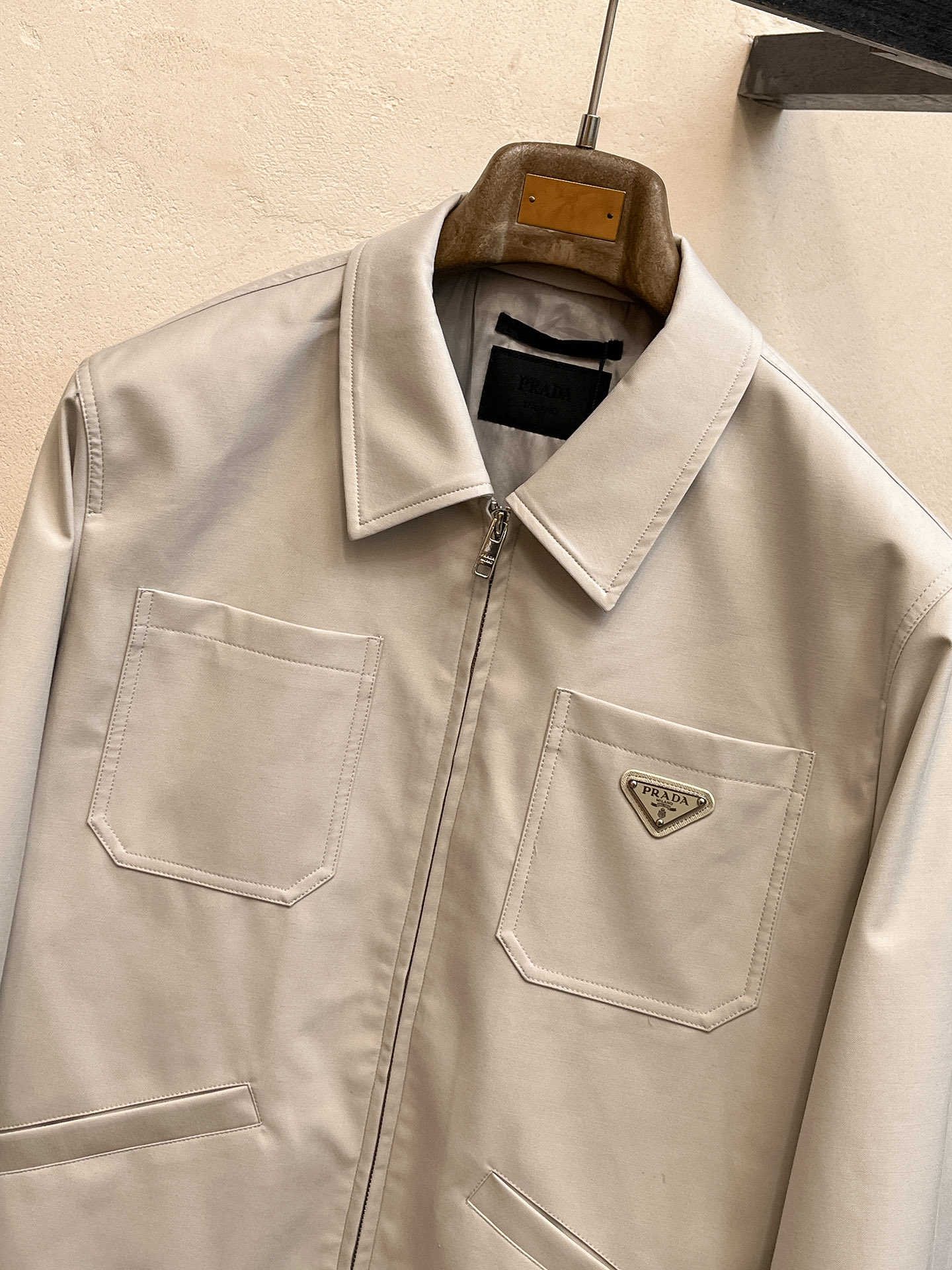 这款衣服是AAAAA 1:1 质量 (非常棒). 使用了和原版一模一样的材料. 商标部分也保持了和普拉达/Prada一样. 图片拍摄是实物衣服拍摄, 您所收到的实物保证和我们图片一模一样.
