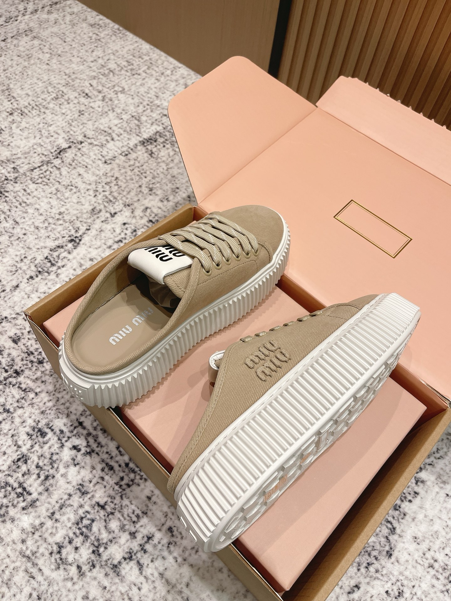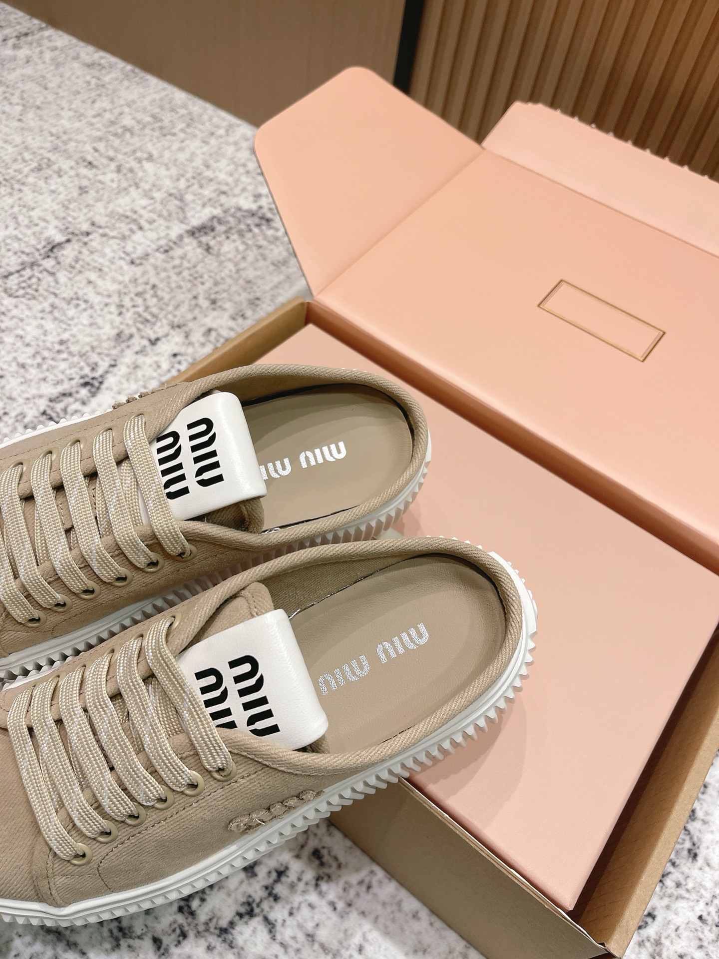 这款鞋子是AAAAA 1:1 质量 (非常棒). 使用了和原版一模一样的材料. 商标部分也保持了和缪缪/Miu Miu一样. 图片拍摄是实物鞋子拍摄, 您所收到的实物保证和我们图片一模一样.