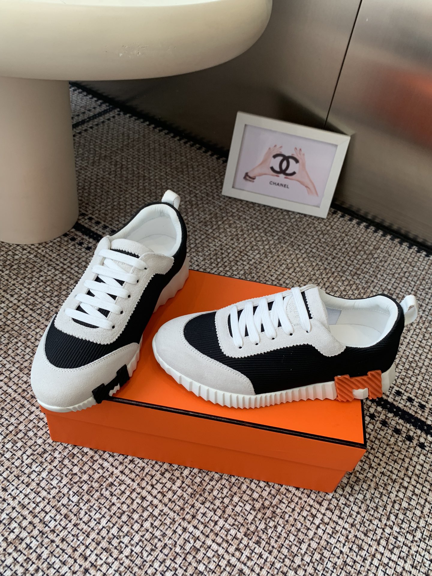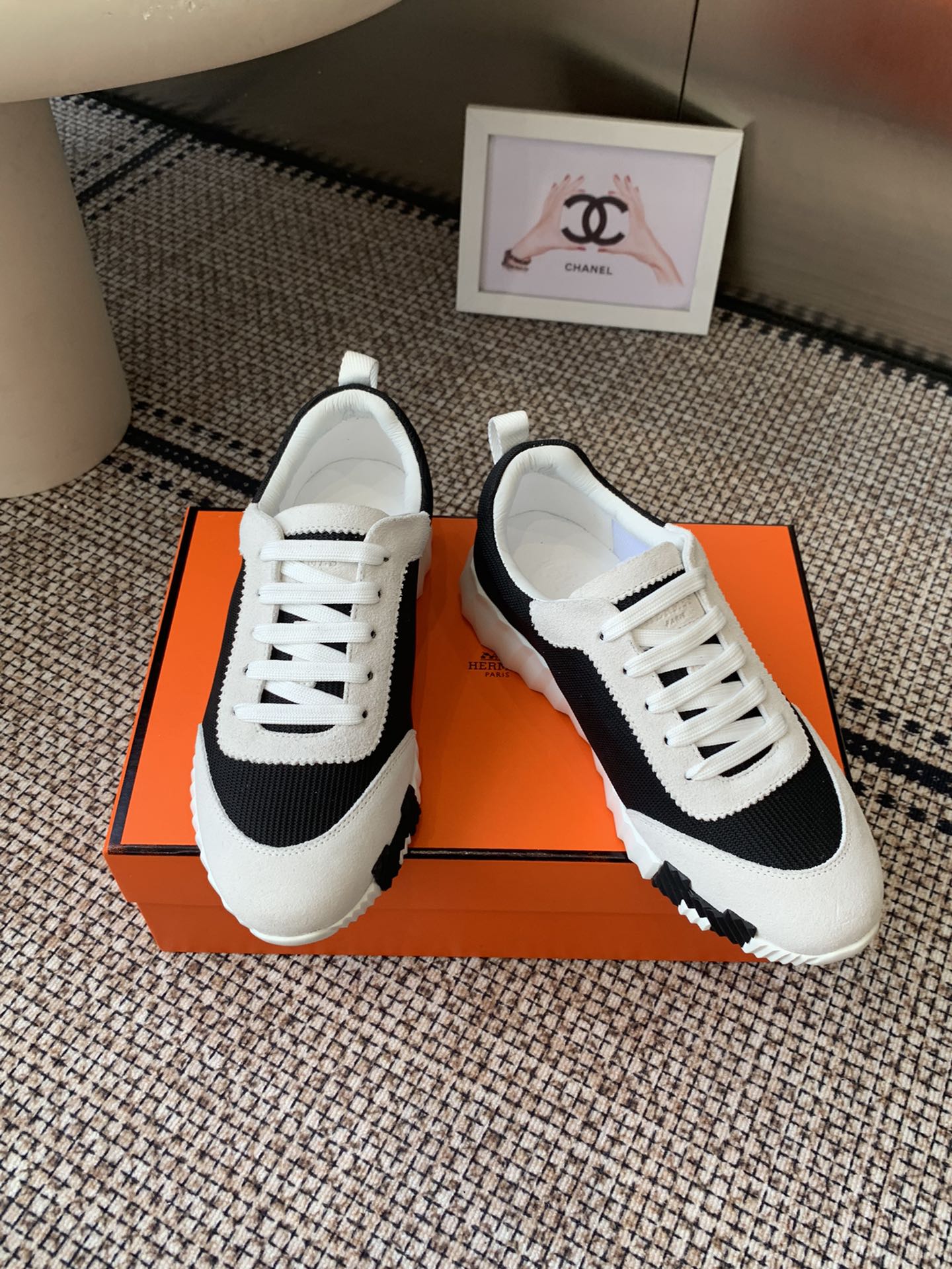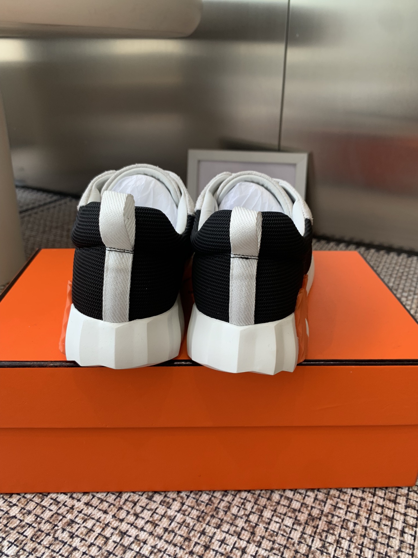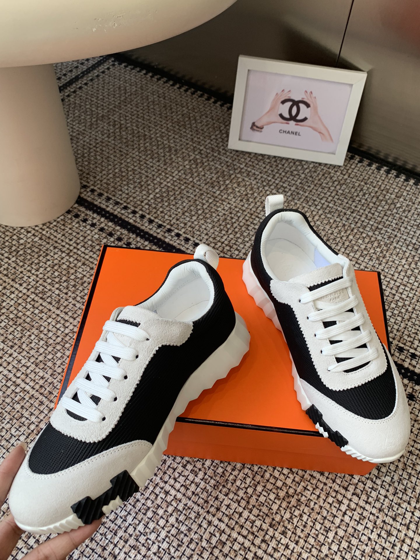 这款鞋子是AAAAA 1:1 质量 (非常棒). 使用了和原版一模一样的材料. 商标部分也保持了和爱马仕/Hermes一样. 图片拍摄是实物鞋子拍摄, 您所收到的实物保证和我们图片一模一样.