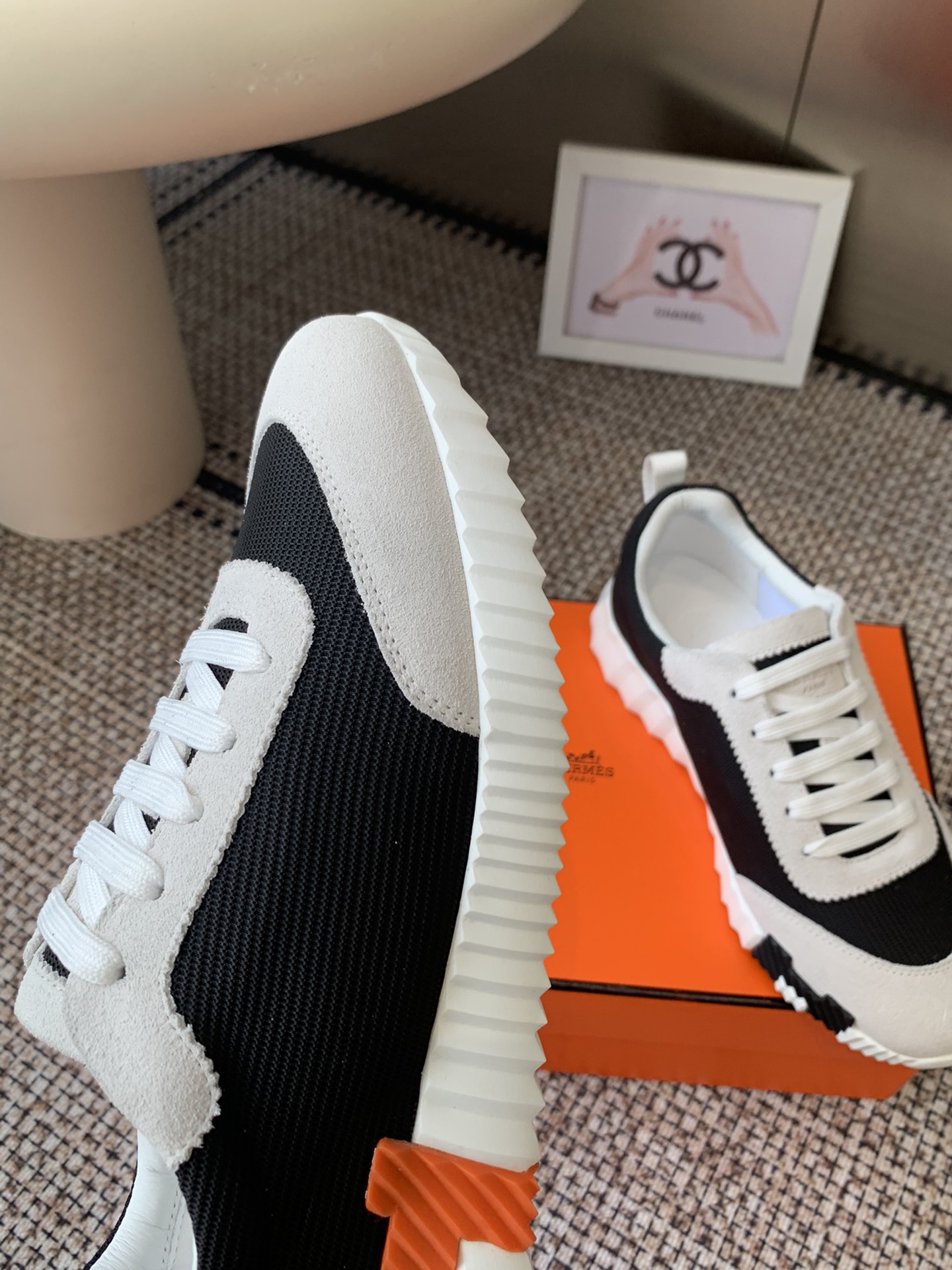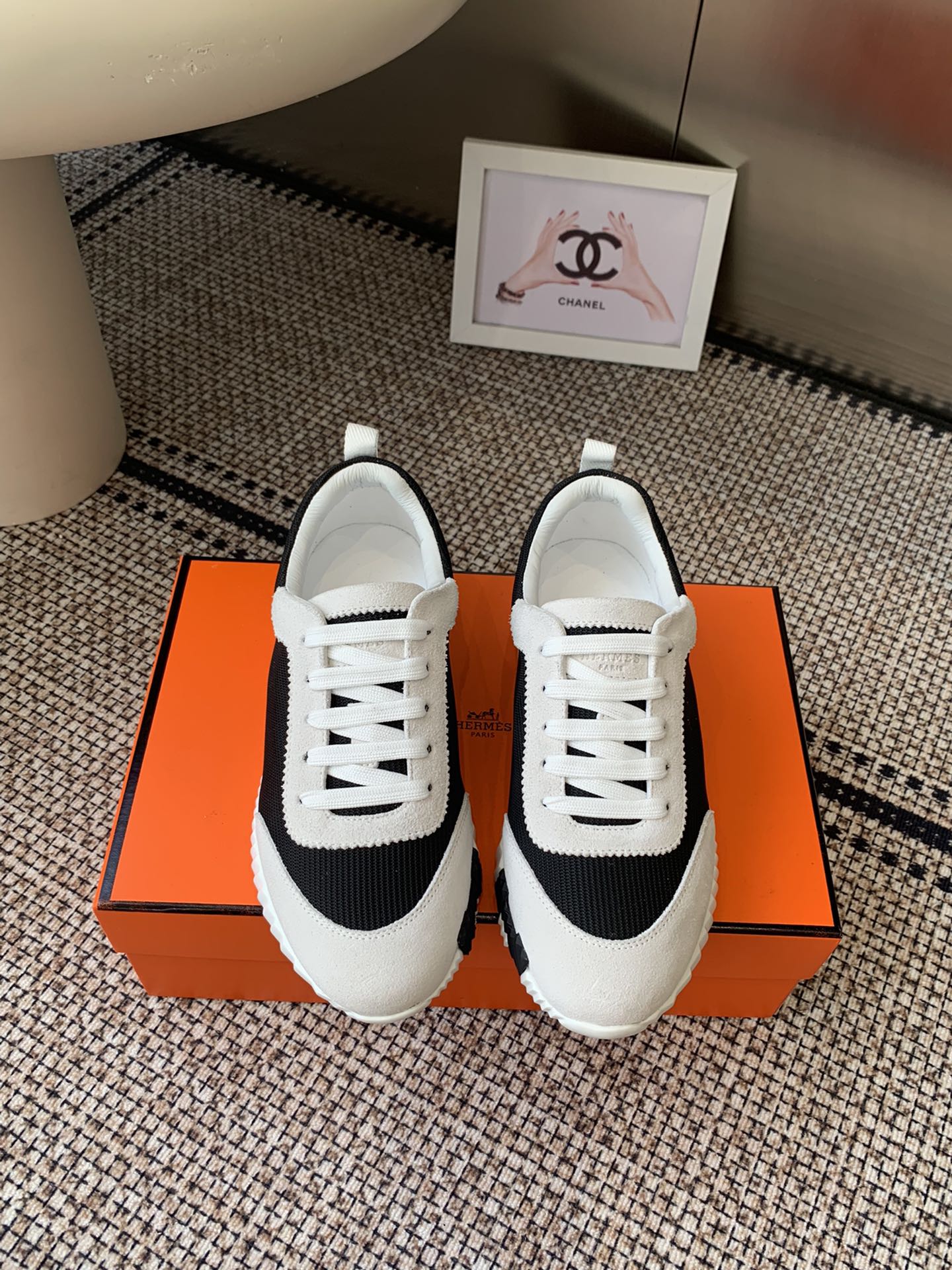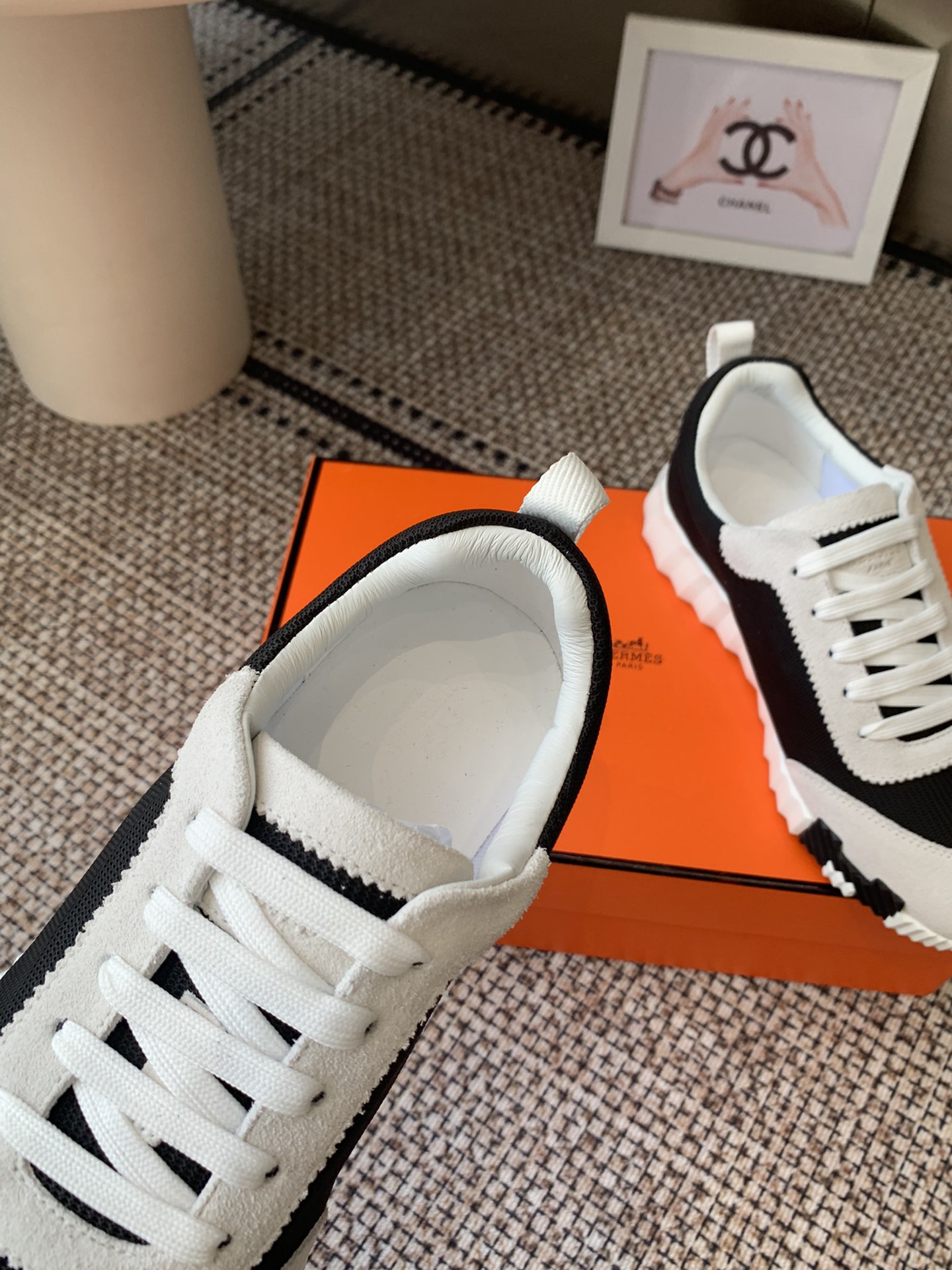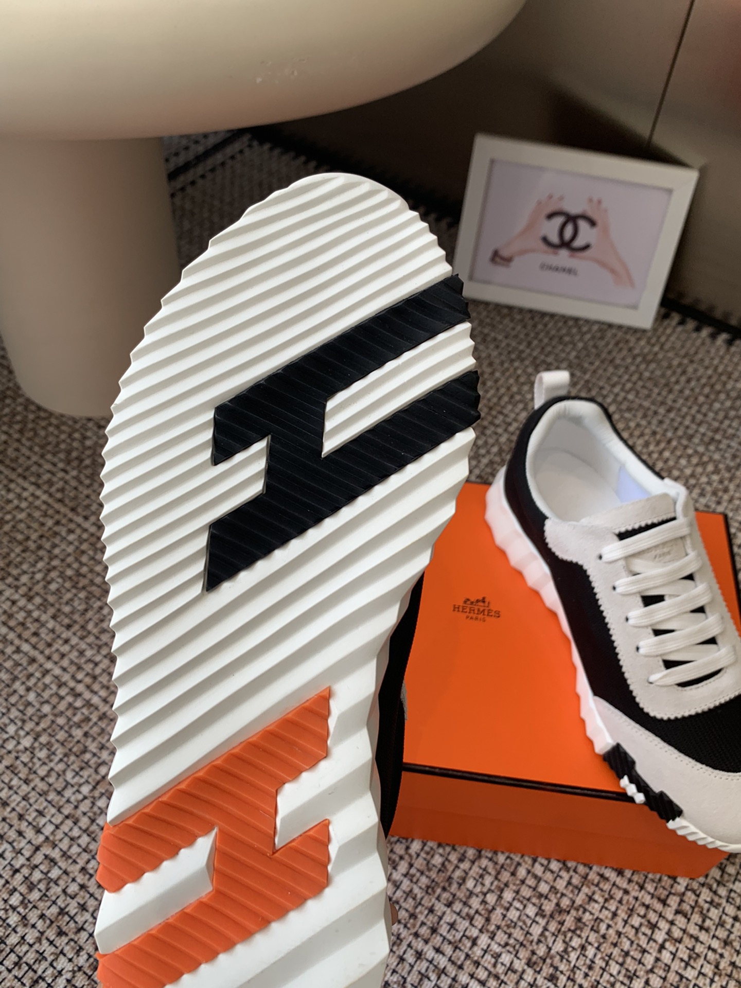 这款鞋子是AAAAA 1:1 质量 (非常棒). 使用了和原版一模一样的材料. 商标部分也保持了和爱马仕/Hermes一样. 图片拍摄是实物鞋子拍摄, 您所收到的实物保证和我们图片一模一样.