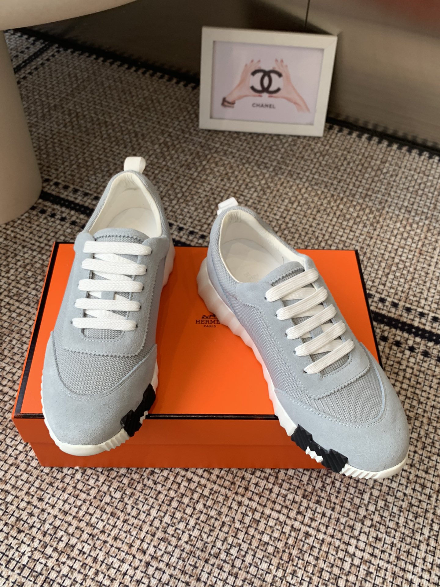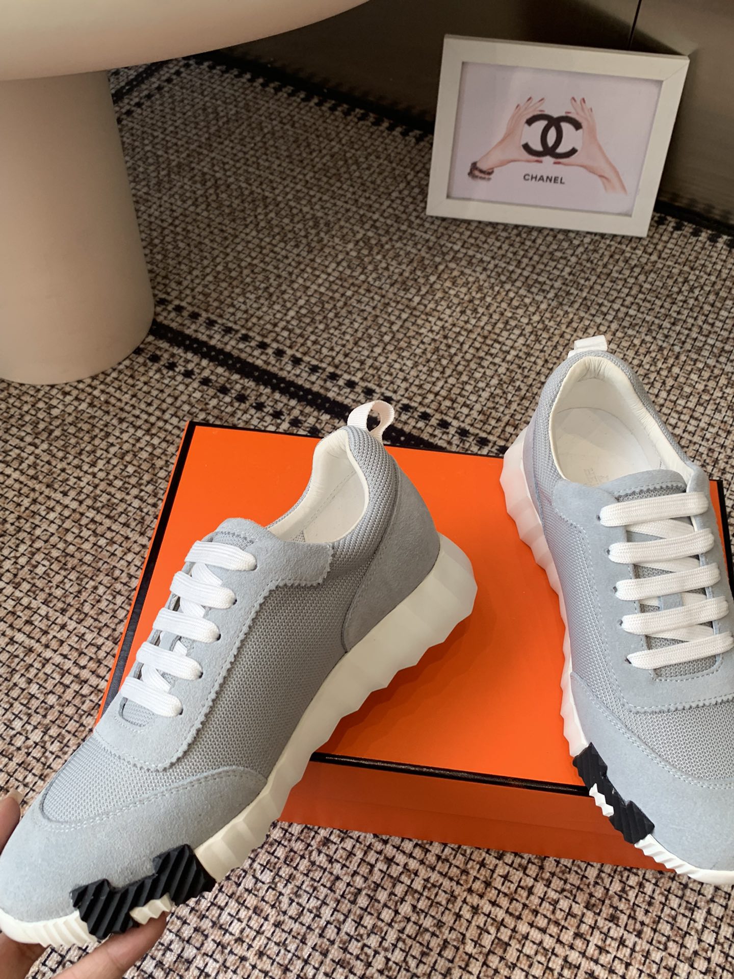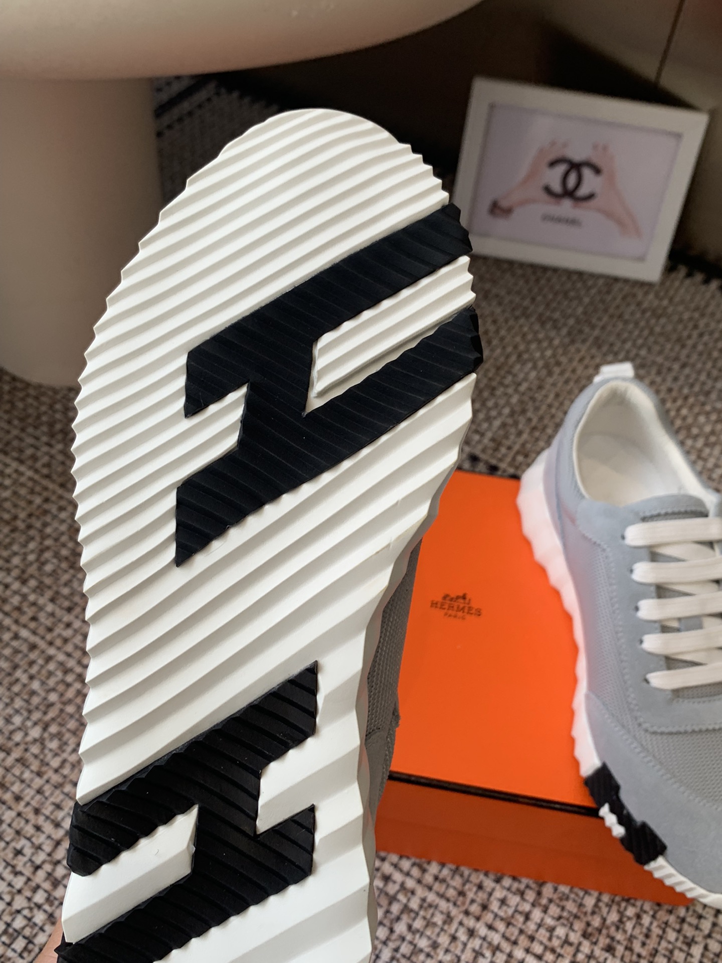 这款鞋子是AAAAA 1:1 质量 (非常棒). 使用了和原版一模一样的材料. 商标部分也保持了和爱马仕/Hermes一样. 图片拍摄是实物鞋子拍摄, 您所收到的实物保证和我们图片一模一样.