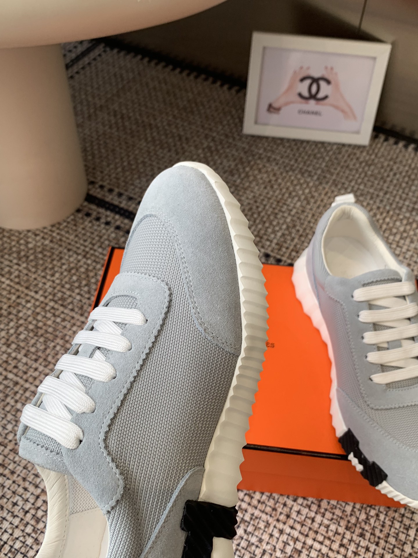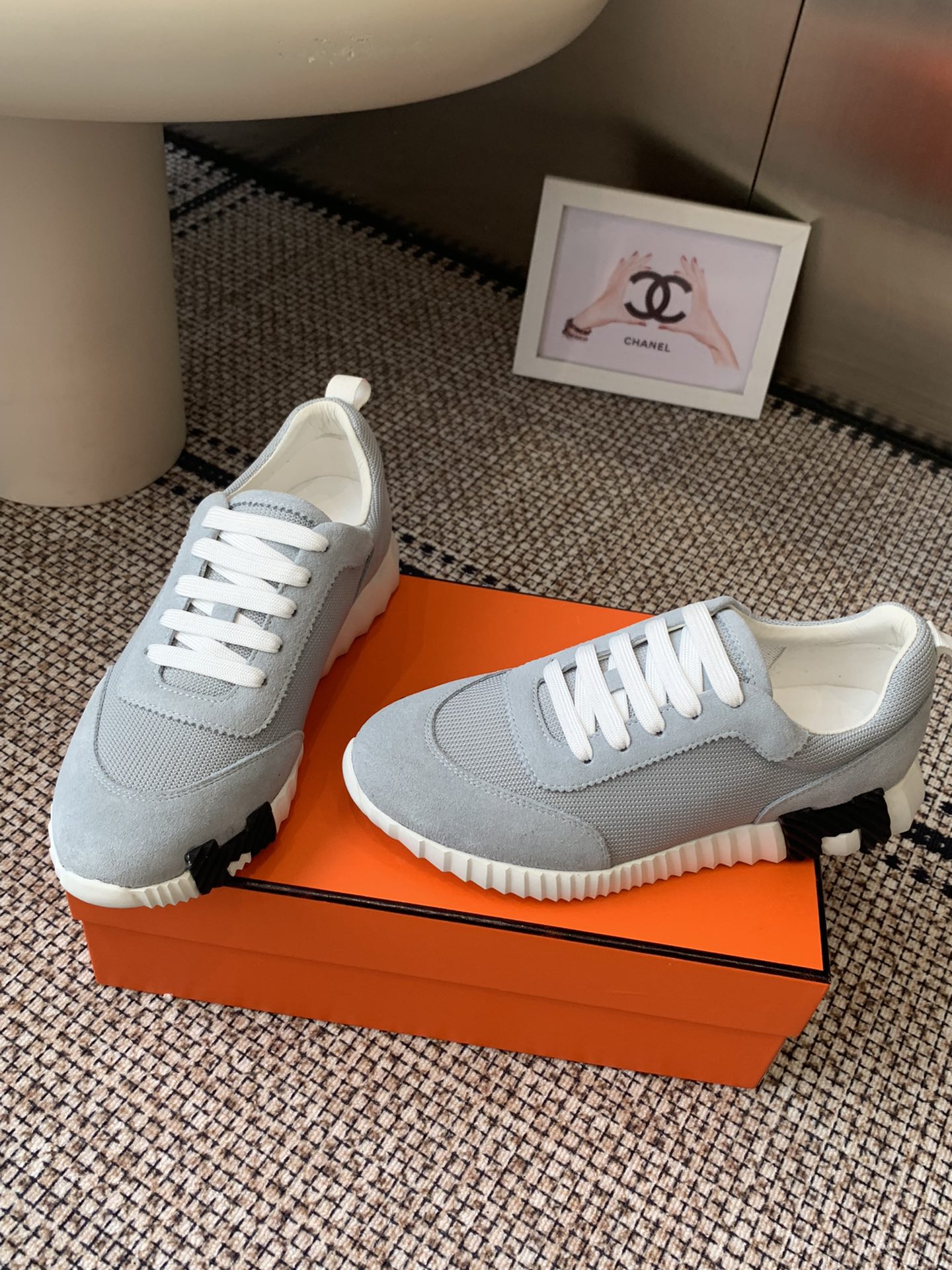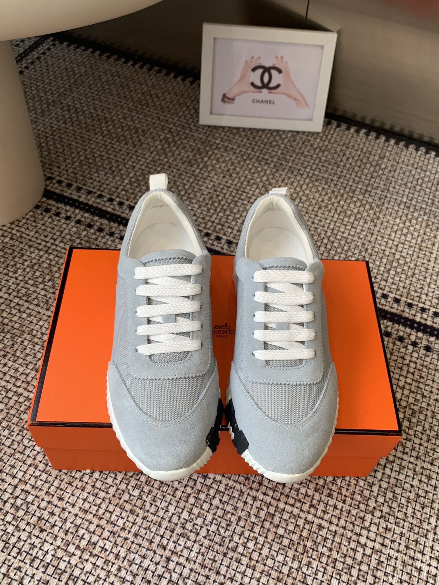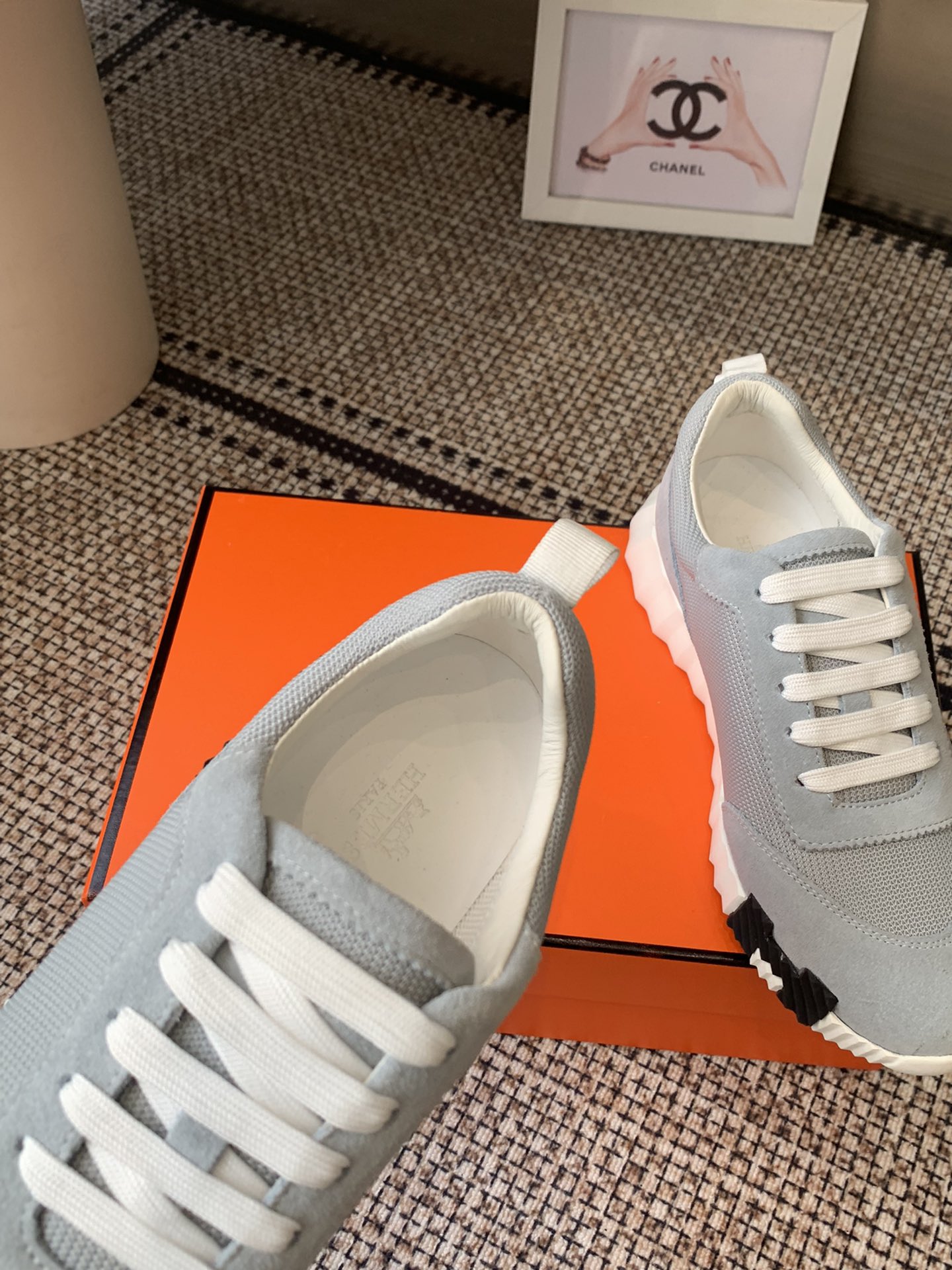 这款鞋子是AAAAA 1:1 质量 (非常棒). 使用了和原版一模一样的材料. 商标部分也保持了和爱马仕/Hermes一样. 图片拍摄是实物鞋子拍摄, 您所收到的实物保证和我们图片一模一样.