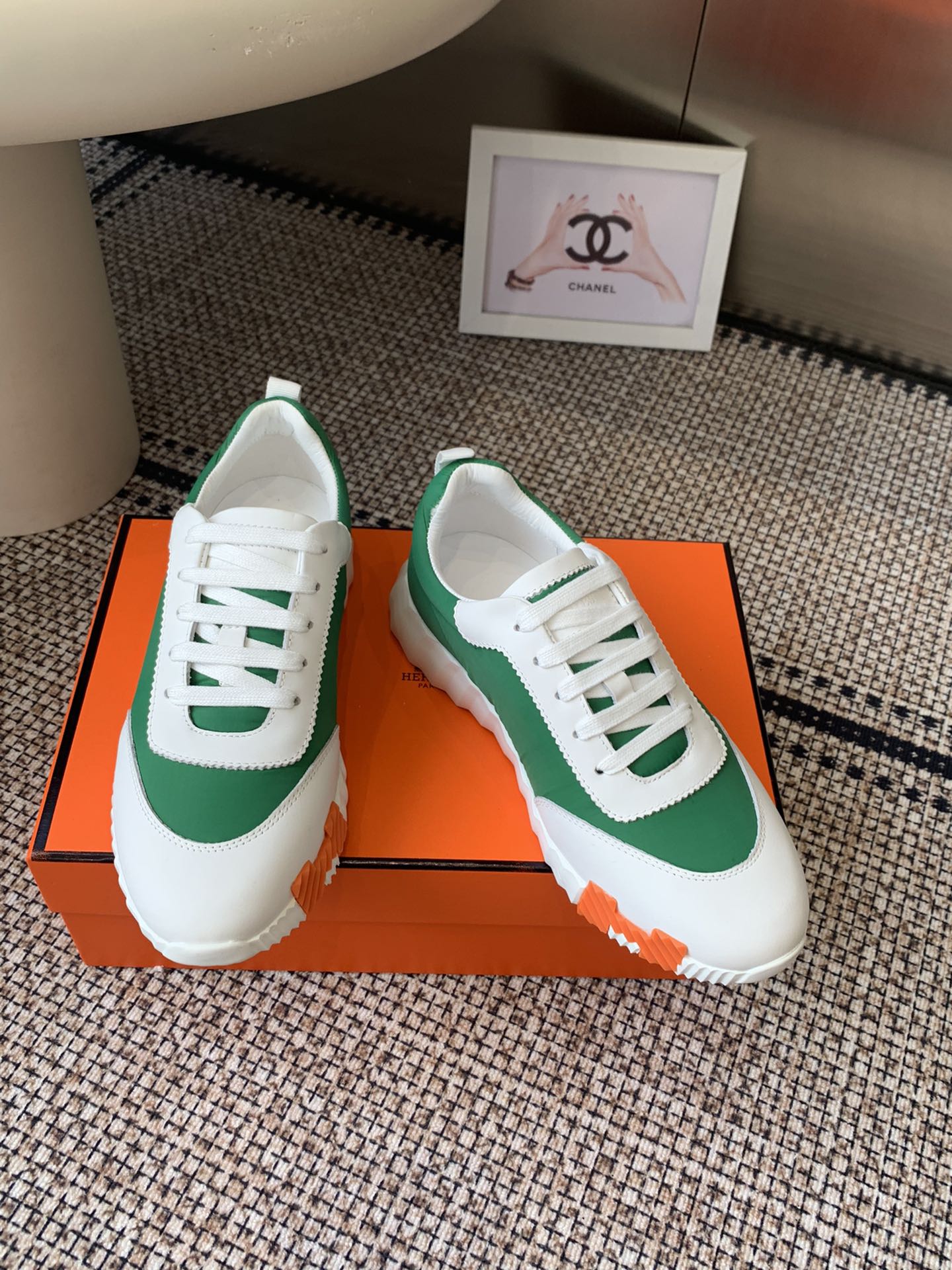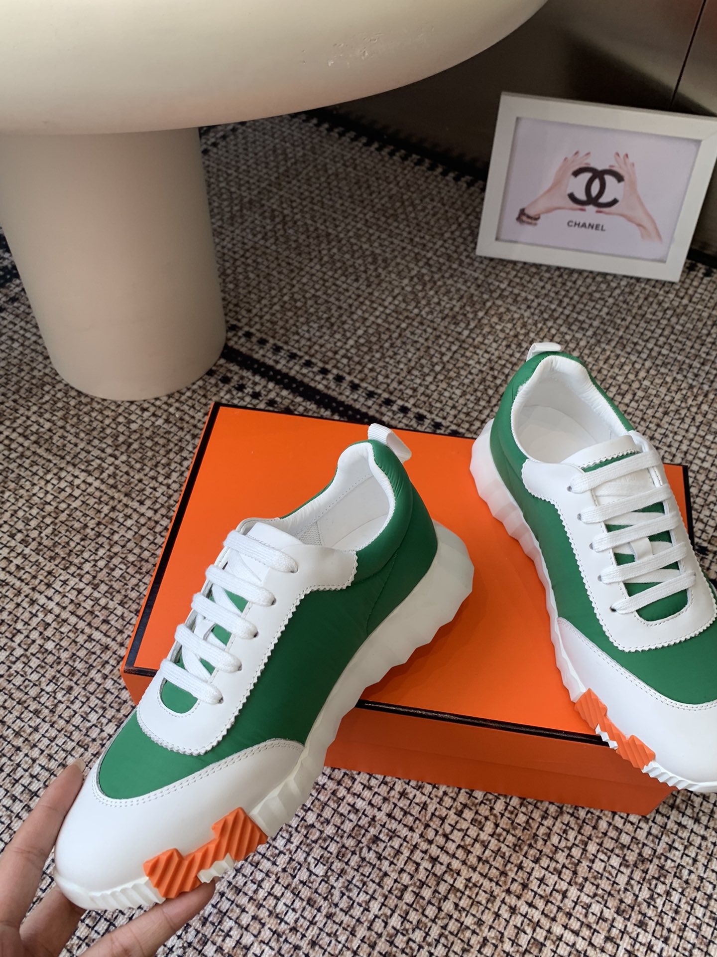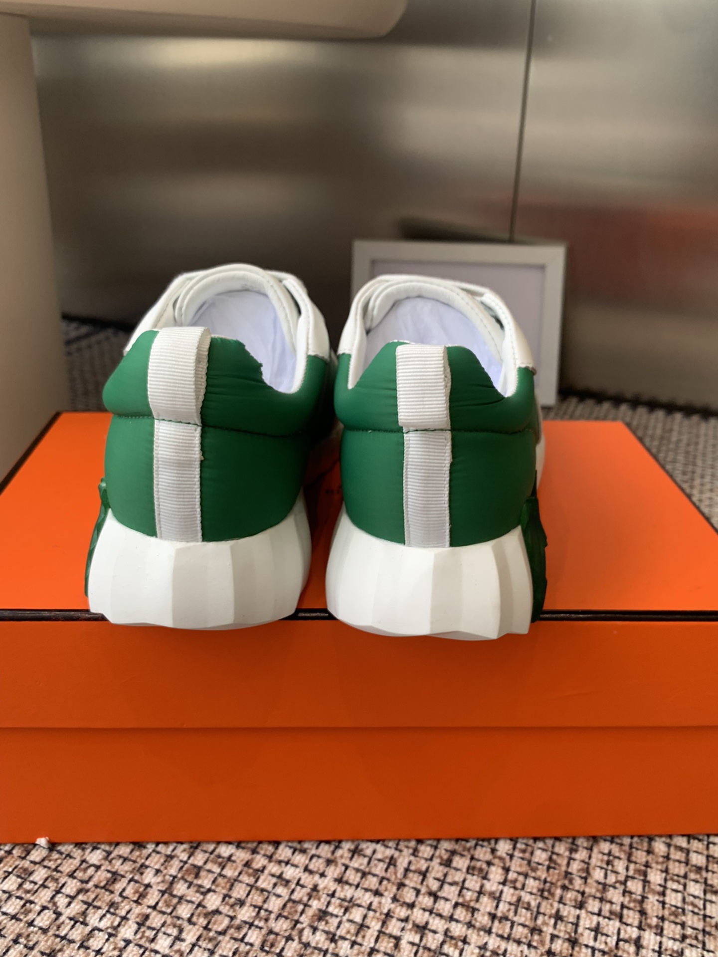这款鞋子是AAAAA 1:1 质量 (非常棒). 使用了和原版一模一样的材料. 商标部分也保持了和爱马仕/Hermes一样. 图片拍摄是实物鞋子拍摄, 您所收到的实物保证和我们图片一模一样.