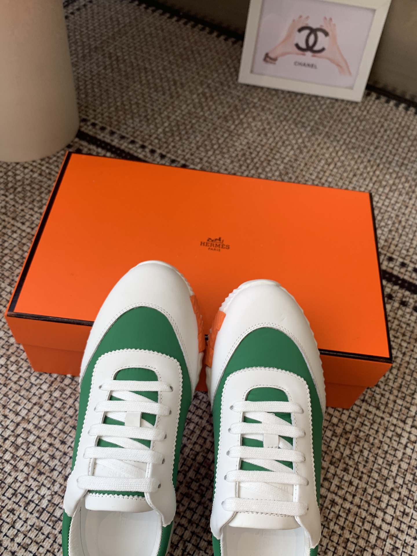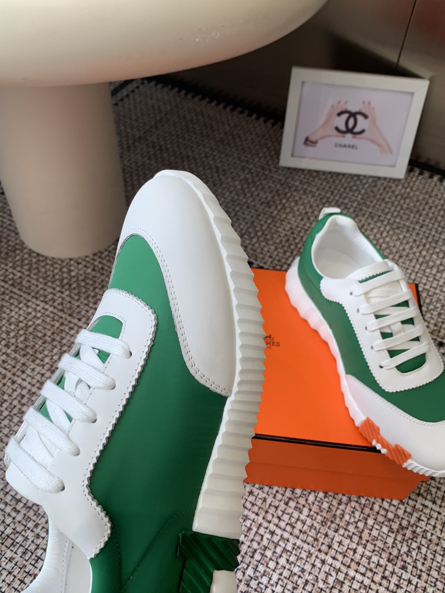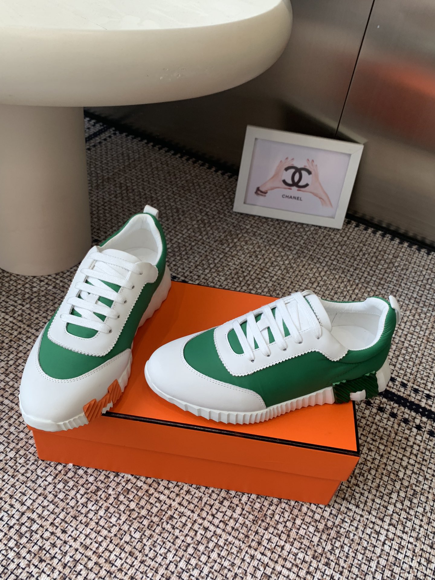 这款鞋子是AAAAA 1:1 质量 (非常棒). 使用了和原版一模一样的材料. 商标部分也保持了和爱马仕/Hermes一样. 图片拍摄是实物鞋子拍摄, 您所收到的实物保证和我们图片一模一样.