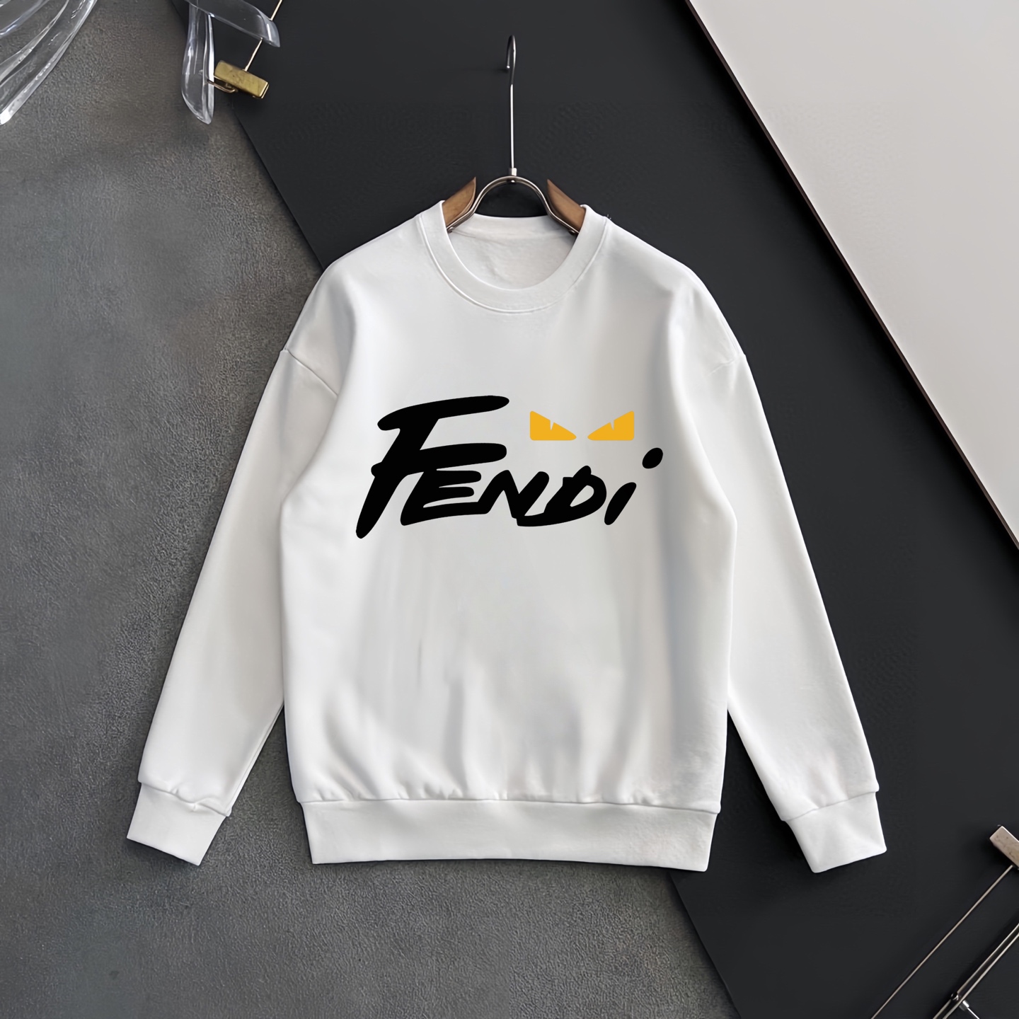 这款衣服是AAAAA 1:1 质量 (非常棒). 使用了和原版一模一样的材料. 商标部分也保持了和芬迪/Fendi一样. 图片拍摄是实物衣服拍摄, 您所收到的实物保证和我们图片一模一样.