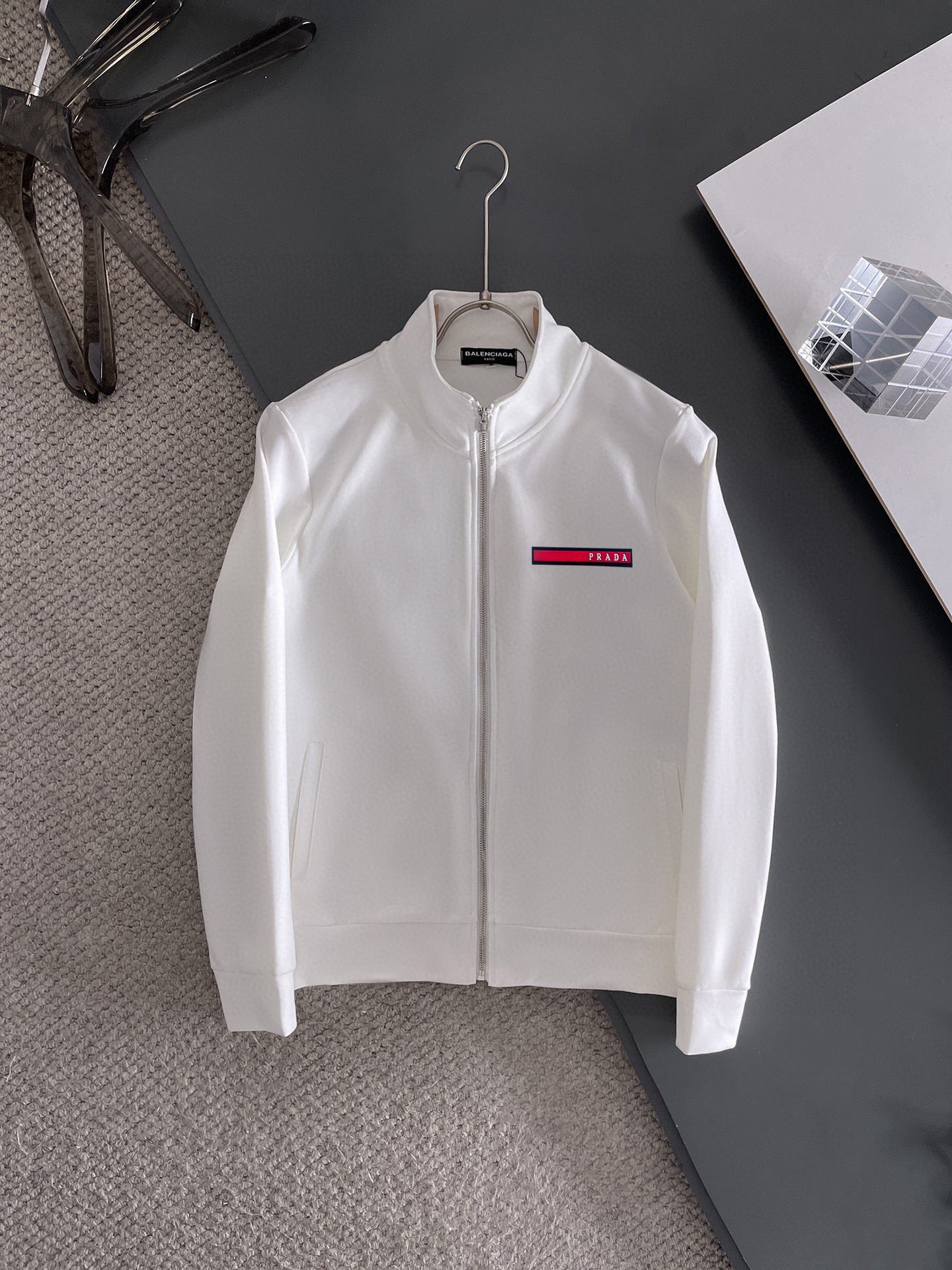 这款衣服是AAAAA 1:1 质量 (非常棒). 使用了和原版一模一样的材料. 商标部分也保持了和普拉达/Prada一样. 图片拍摄是实物衣服拍摄, 您所收到的实物保证和我们图片一模一样.