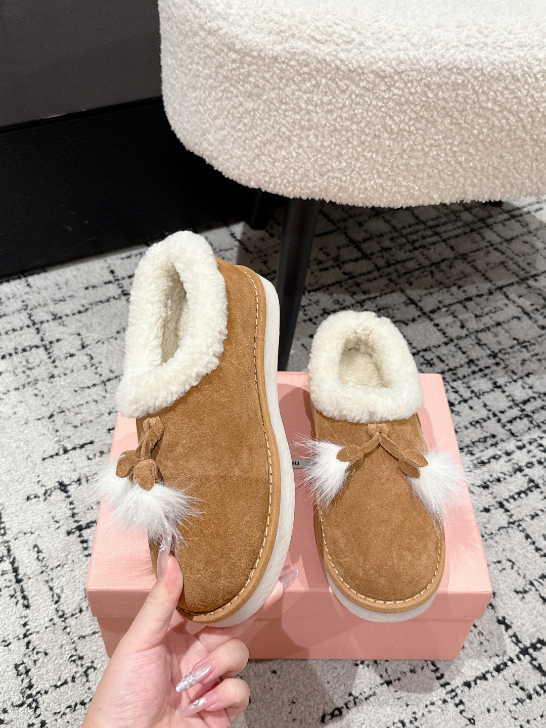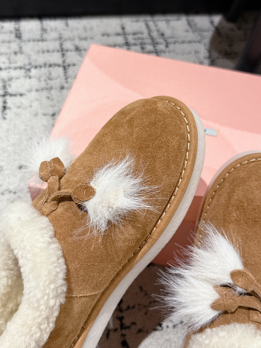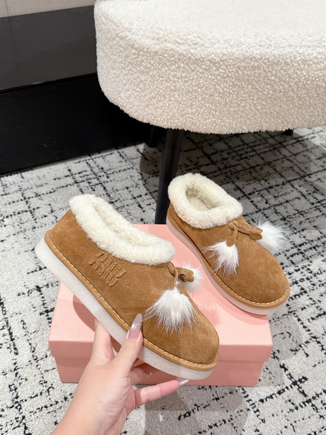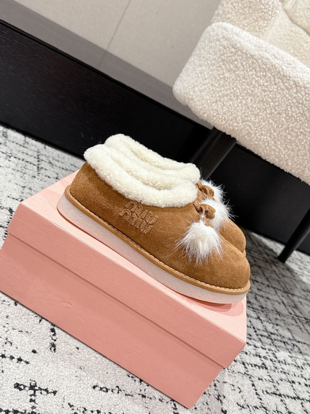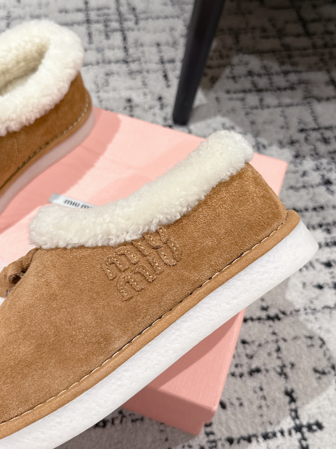这款鞋子是AAAAA 1:1 质量 (非常棒). 使用了和原版一模一样的材料. 商标部分也保持了和缪缪/Miu Miu一样. 图片拍摄是实物鞋子拍摄, 您所收到的实物保证和我们图片一模一样.