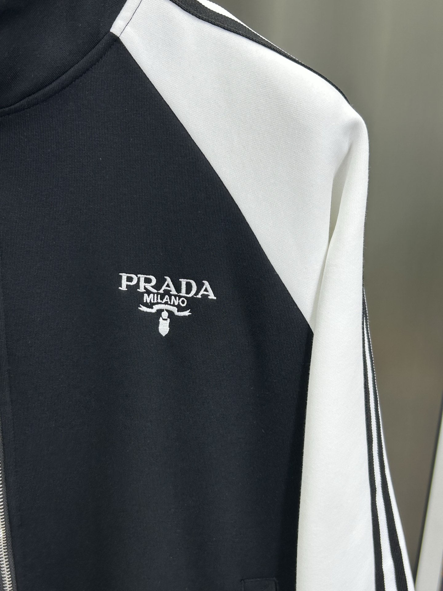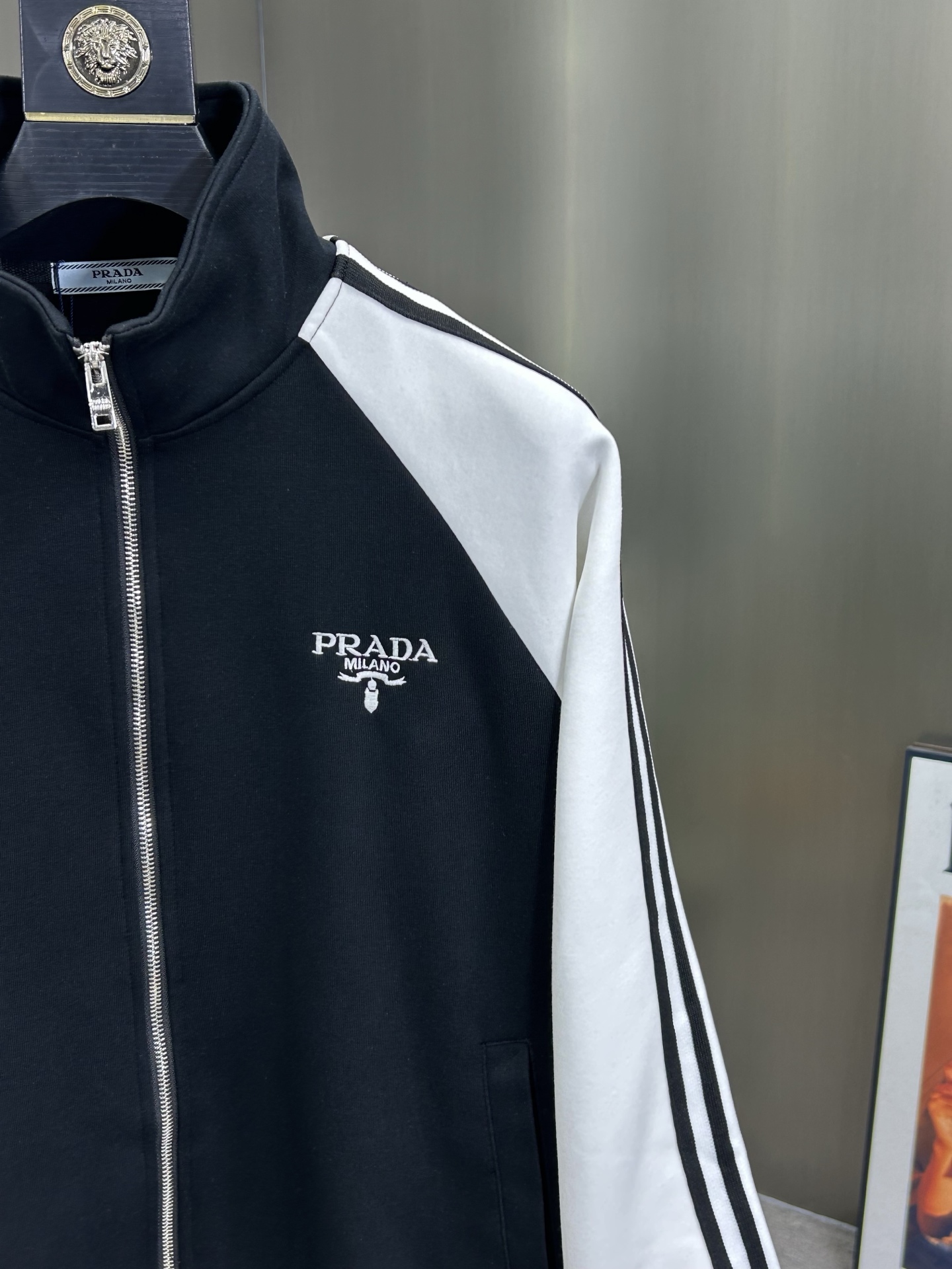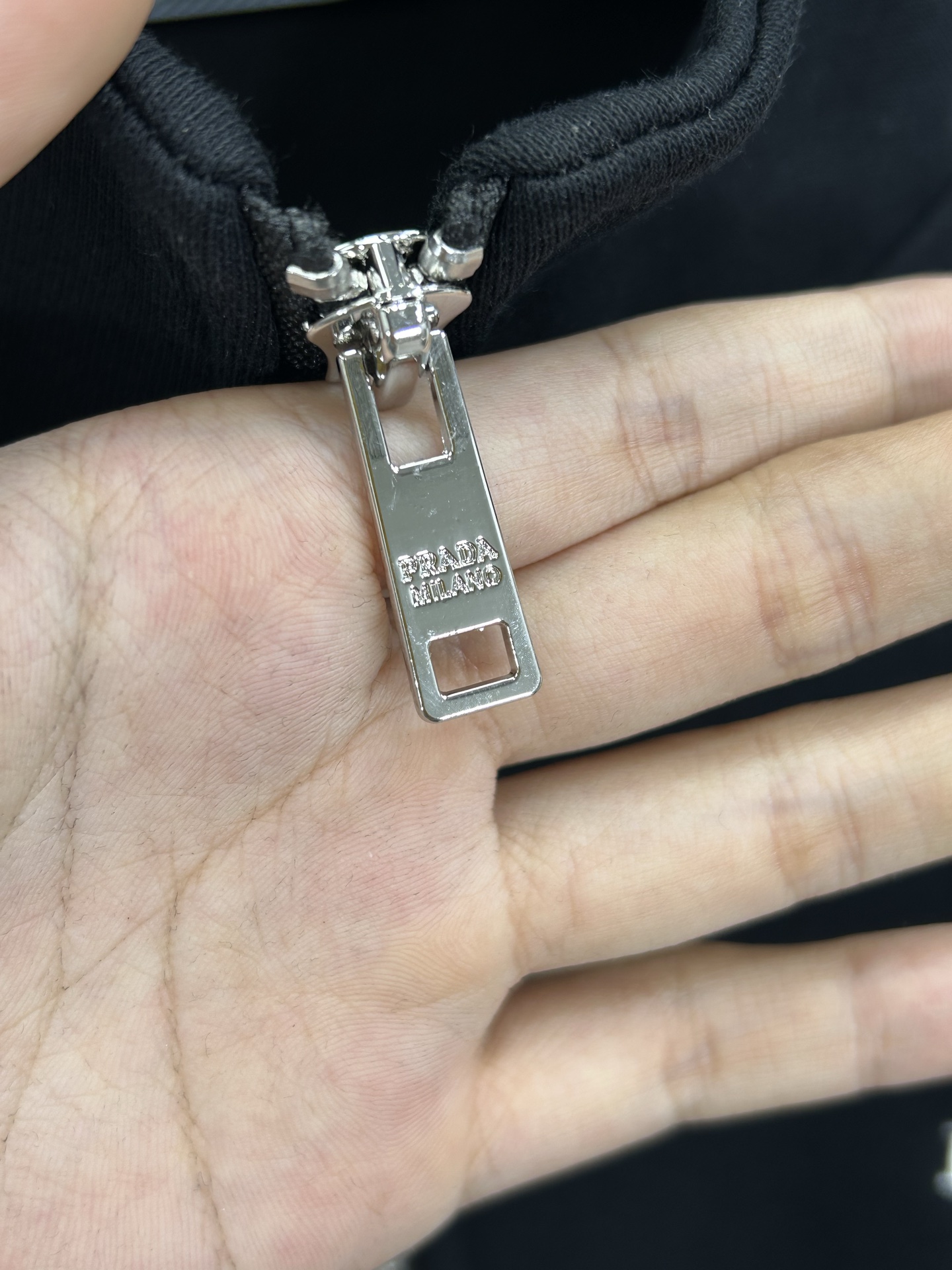 这款衣服是AAAAA 1:1 质量 (非常棒). 使用了和原版一模一样的材料. 商标部分也保持了和普拉达/Prada一样. 图片拍摄是实物衣服拍摄, 您所收到的实物保证和我们图片一模一样.