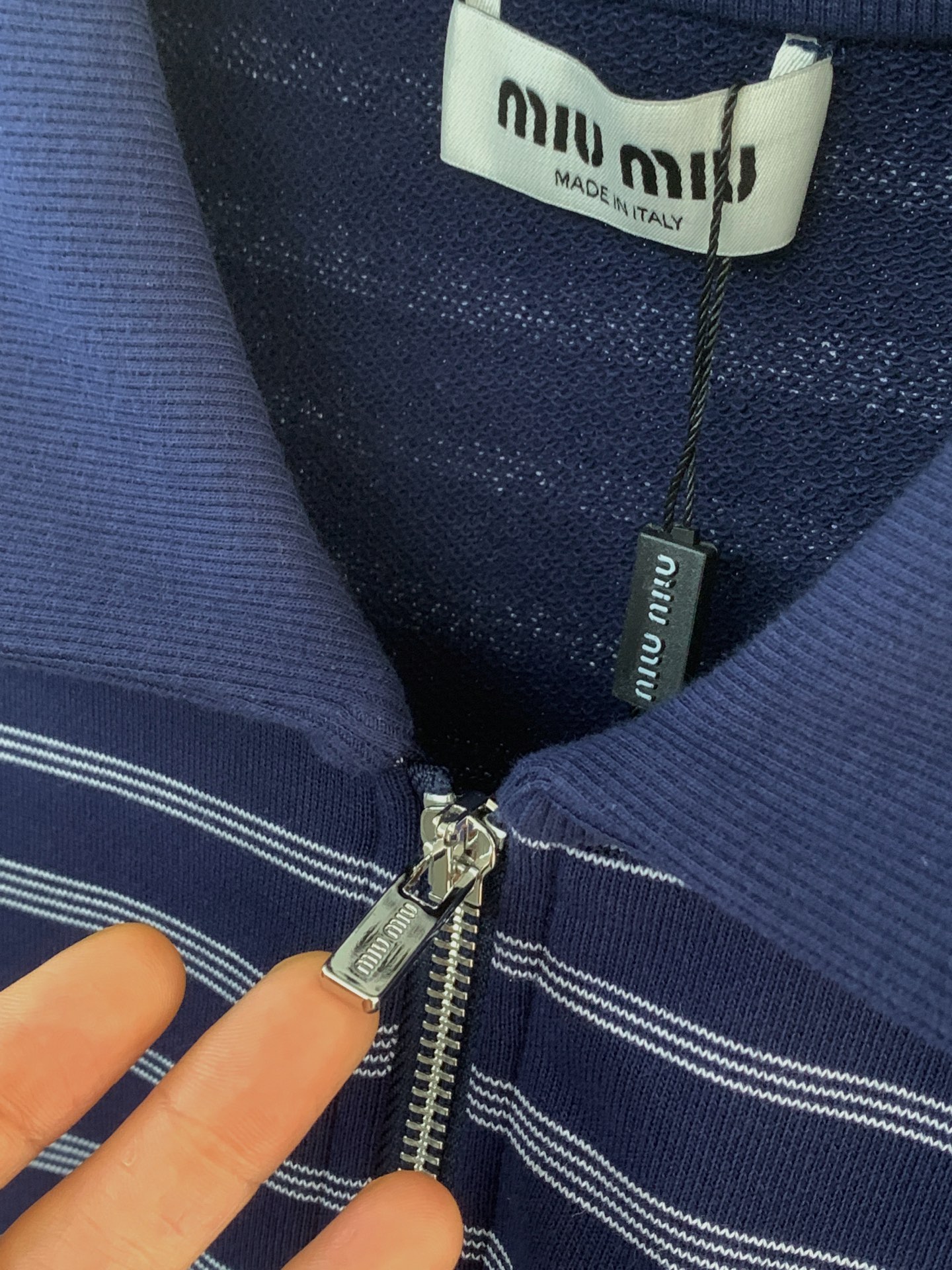 这款衣服是AAAAA 1:1 质量 (非常棒). 使用了和原版一模一样的材料. 商标部分也保持了和缪缪/Miu Miu一样. 图片拍摄是实物衣服拍摄, 您所收到的实物保证和我们图片一模一样.