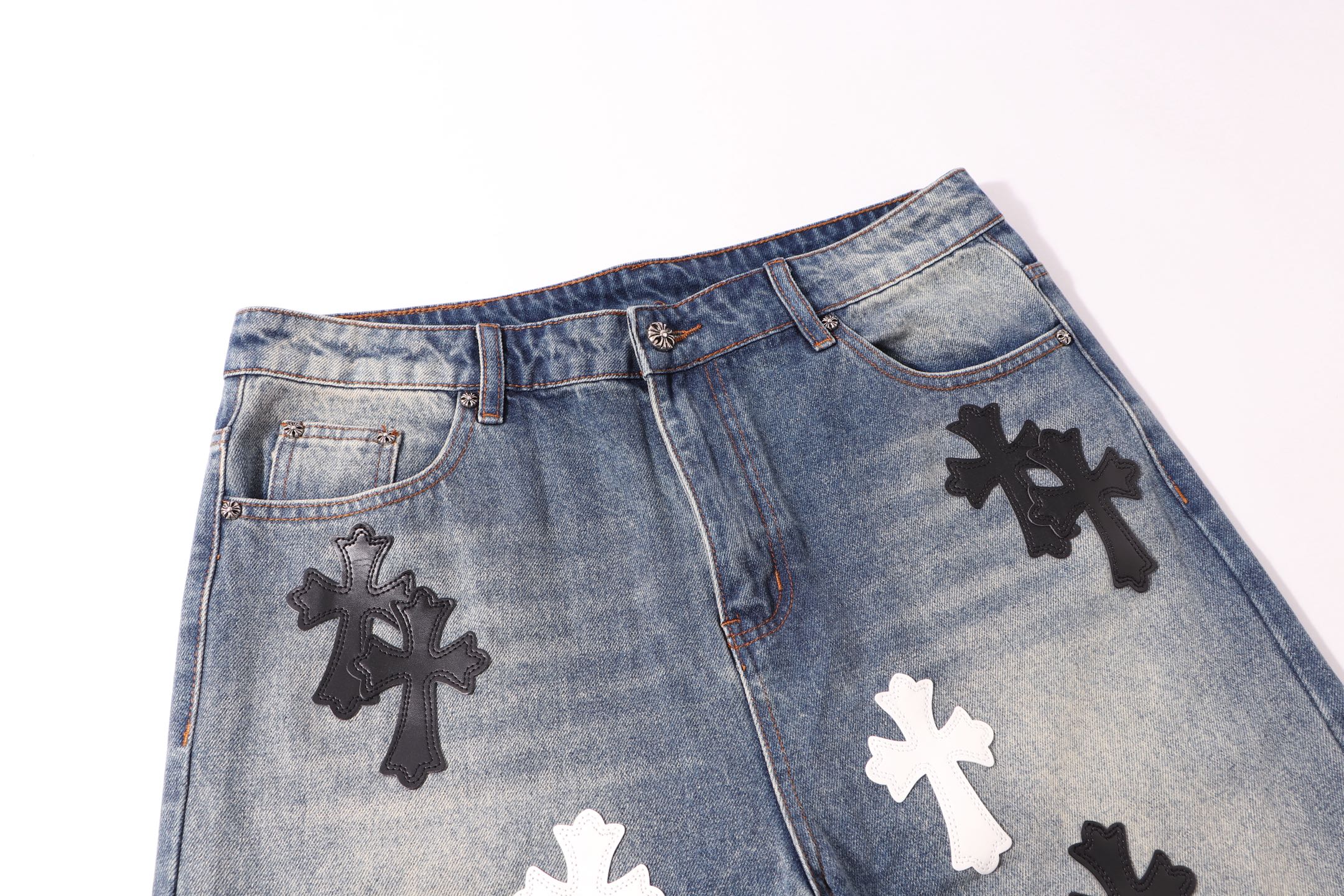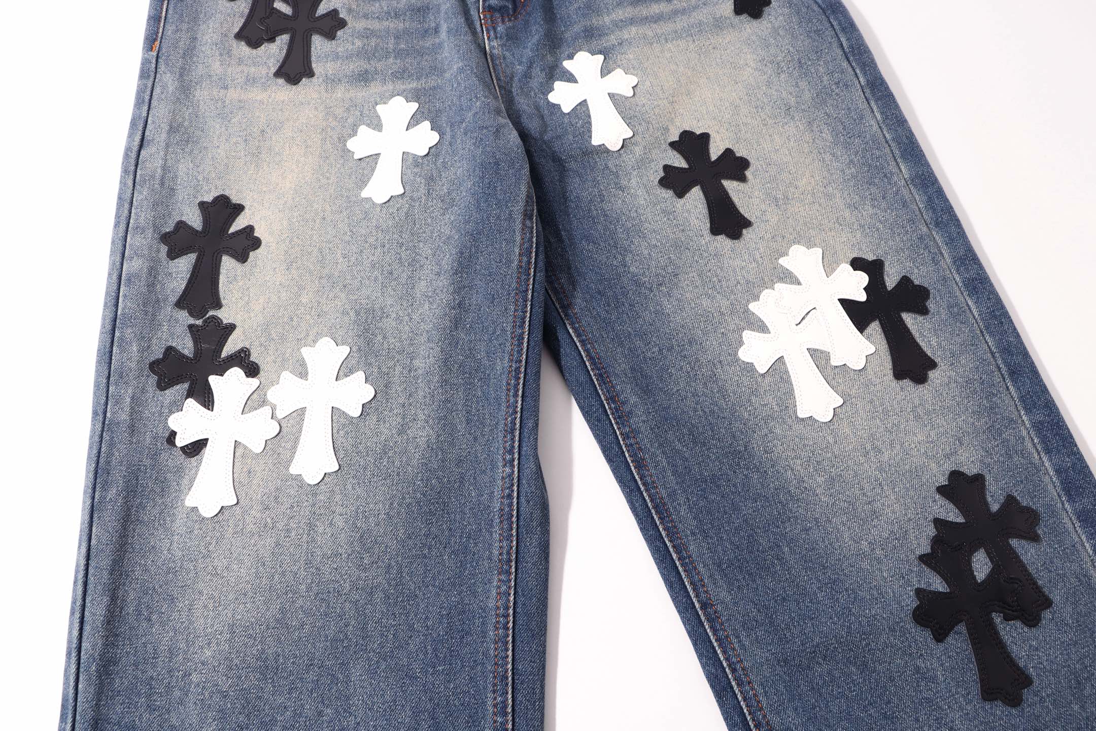 这款衣服是AAAAA 1:1 质量 (非常棒). 使用了和原版一模一样的材料. 商标部分也保持了和克罗心/Chrome Hearts一样. 图片拍摄是实物衣服拍摄, 您所收到的实物保证和我们图片一模一样.