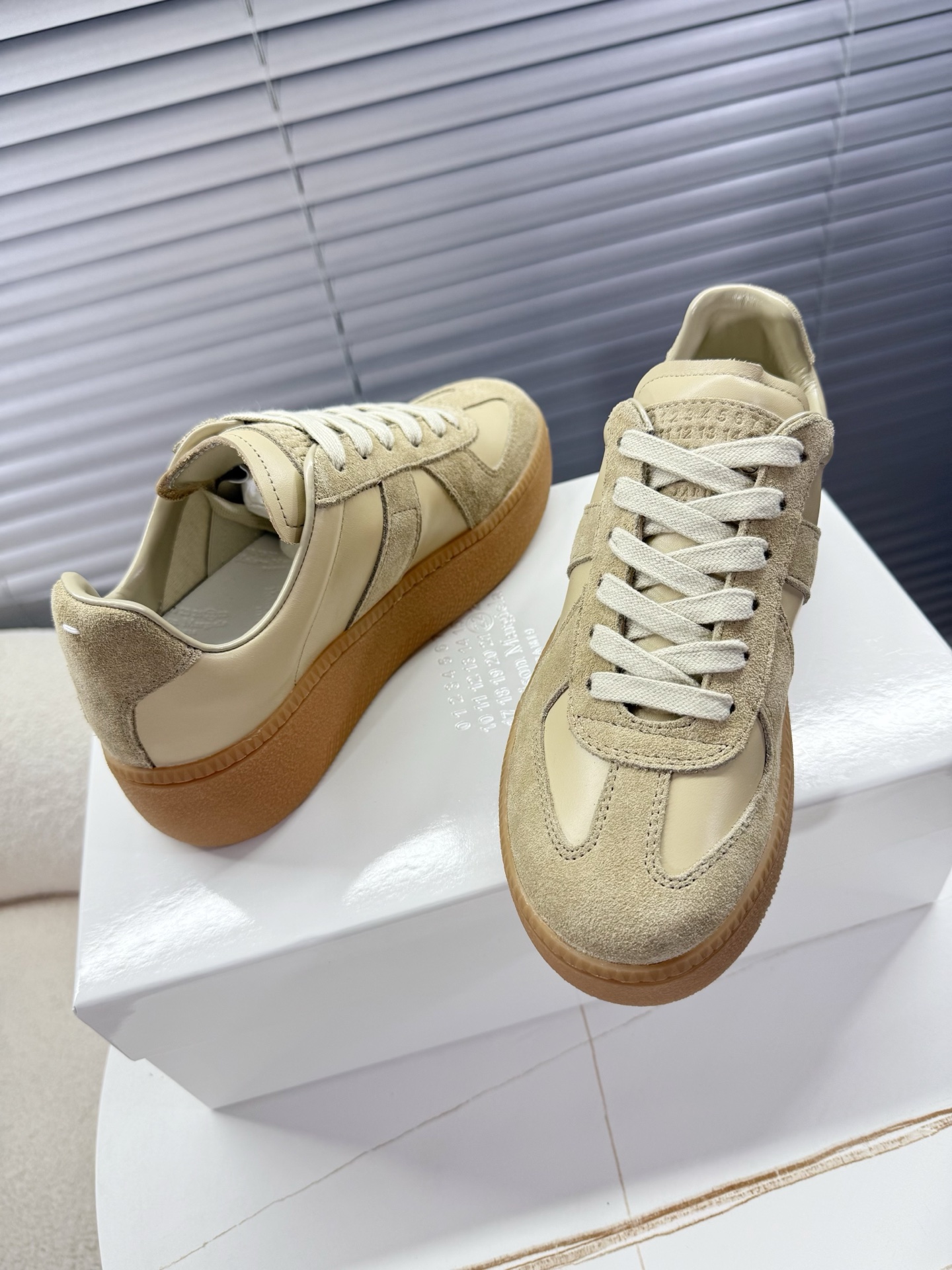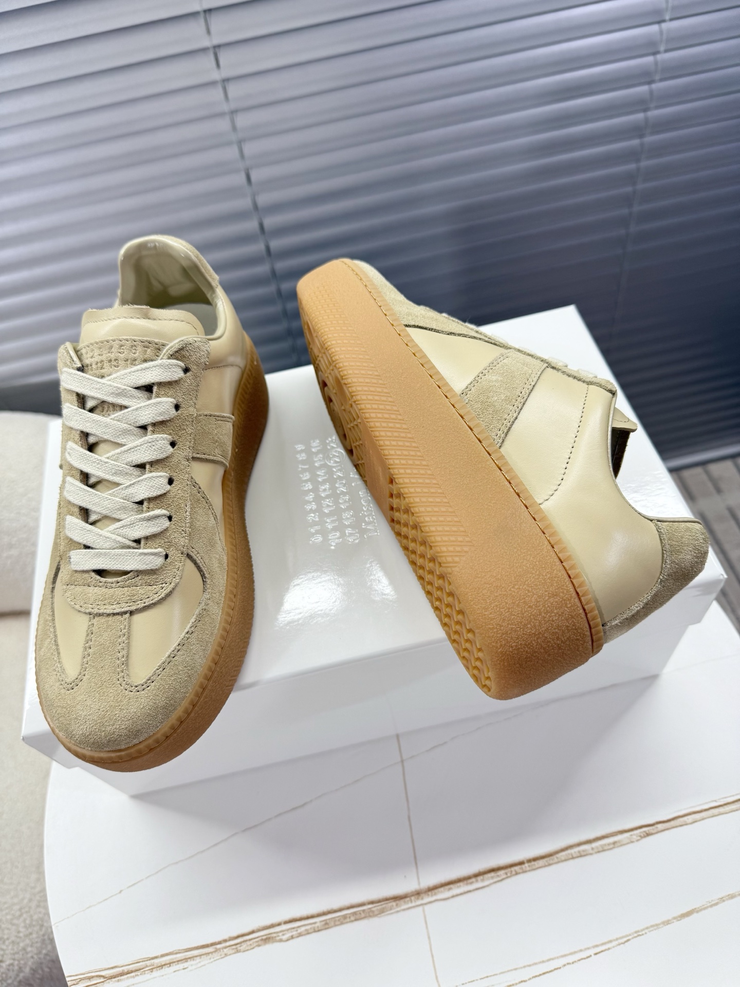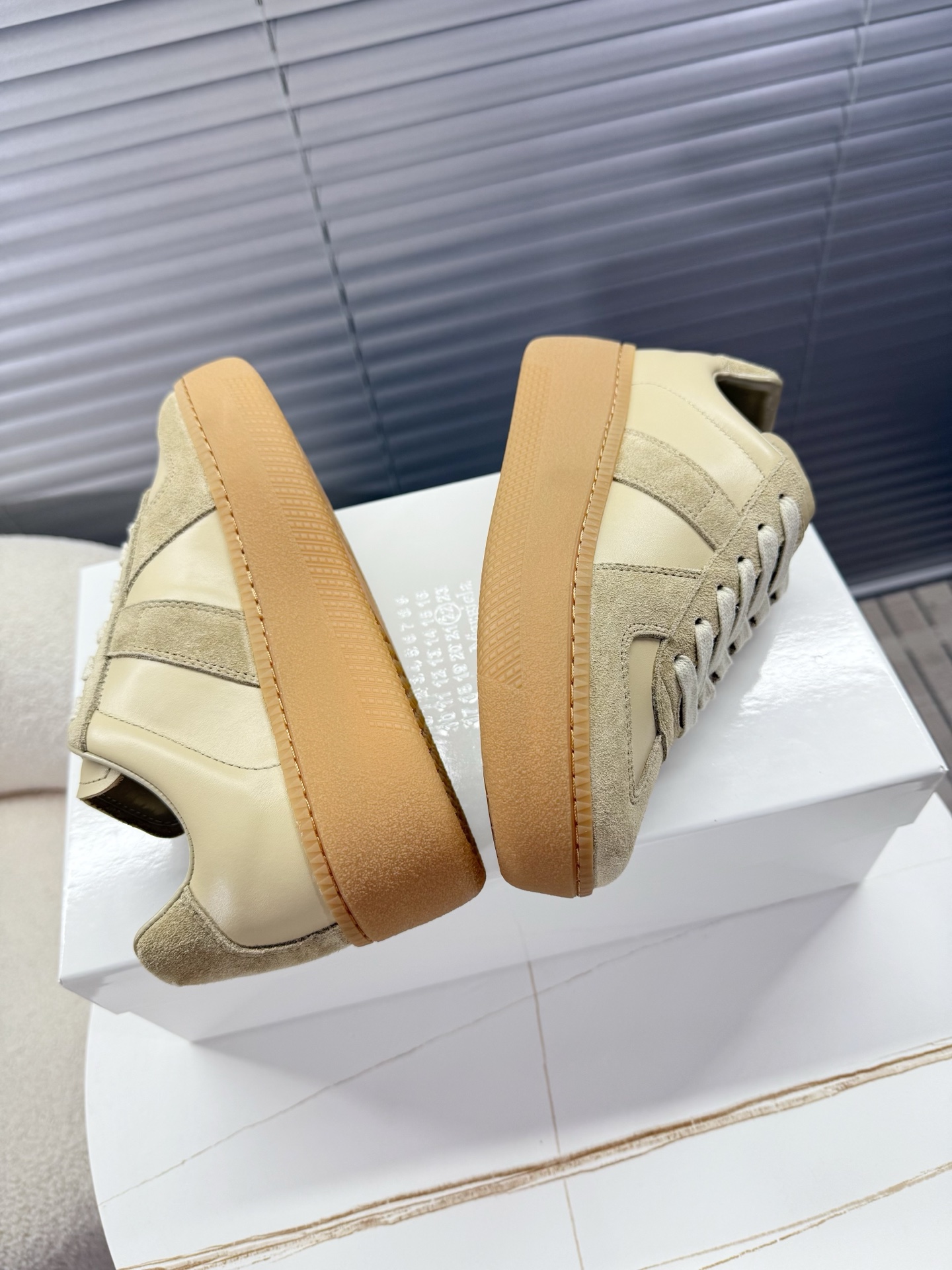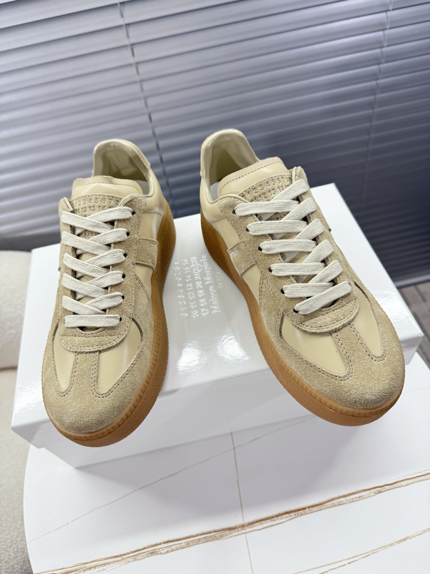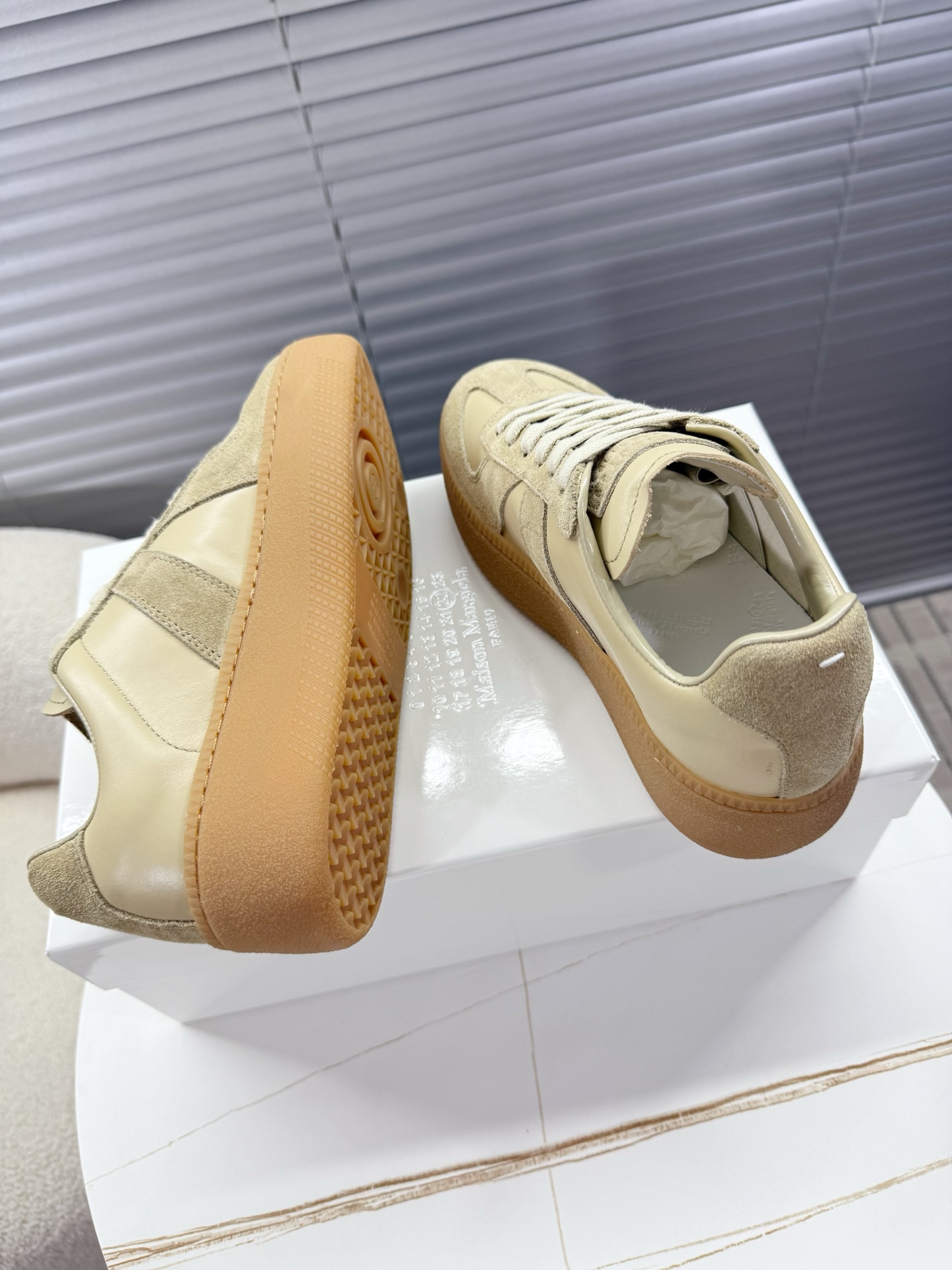 这款鞋子是AAAAA 1:1 质量 (非常棒). 使用了和原版一模一样的材料. 商标部分也保持了和Maison Margiela一样. 图片拍摄是实物鞋子拍摄, 您所收到的实物保证和我们图片一模一样.