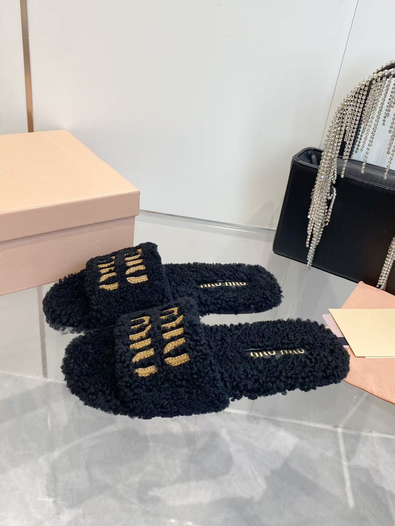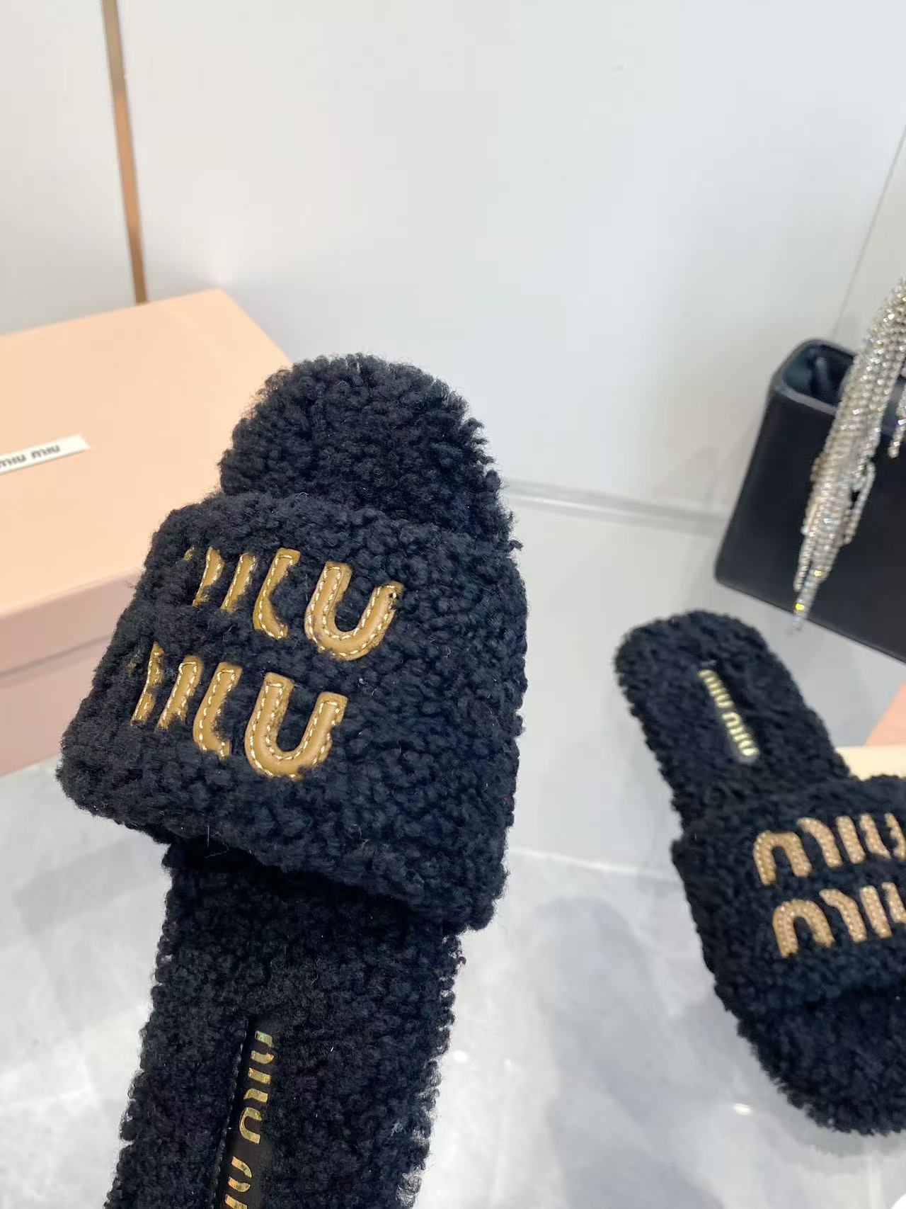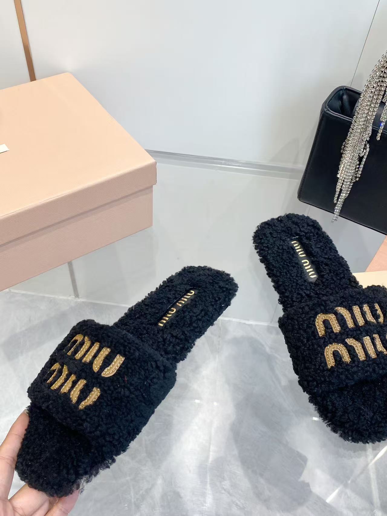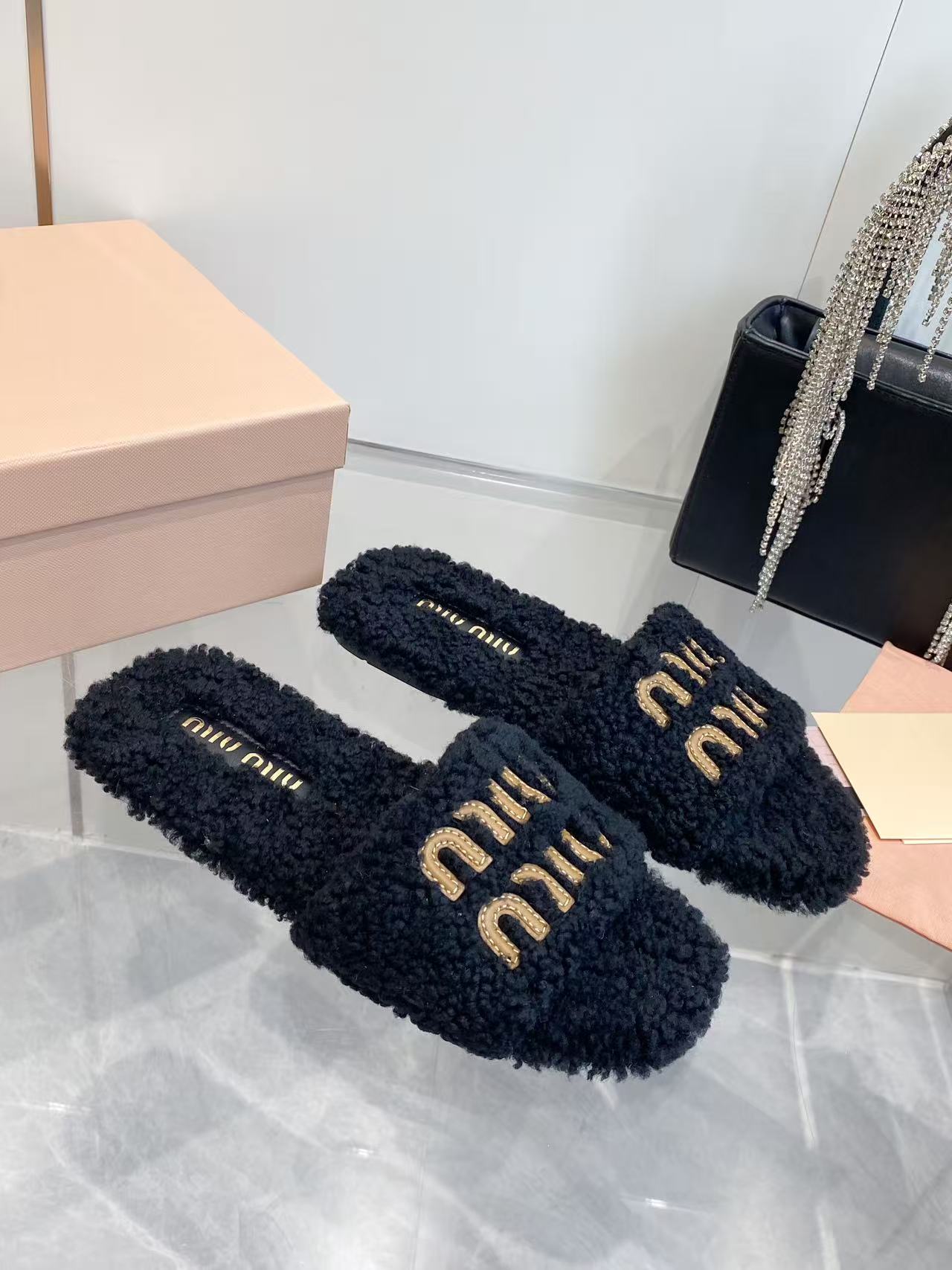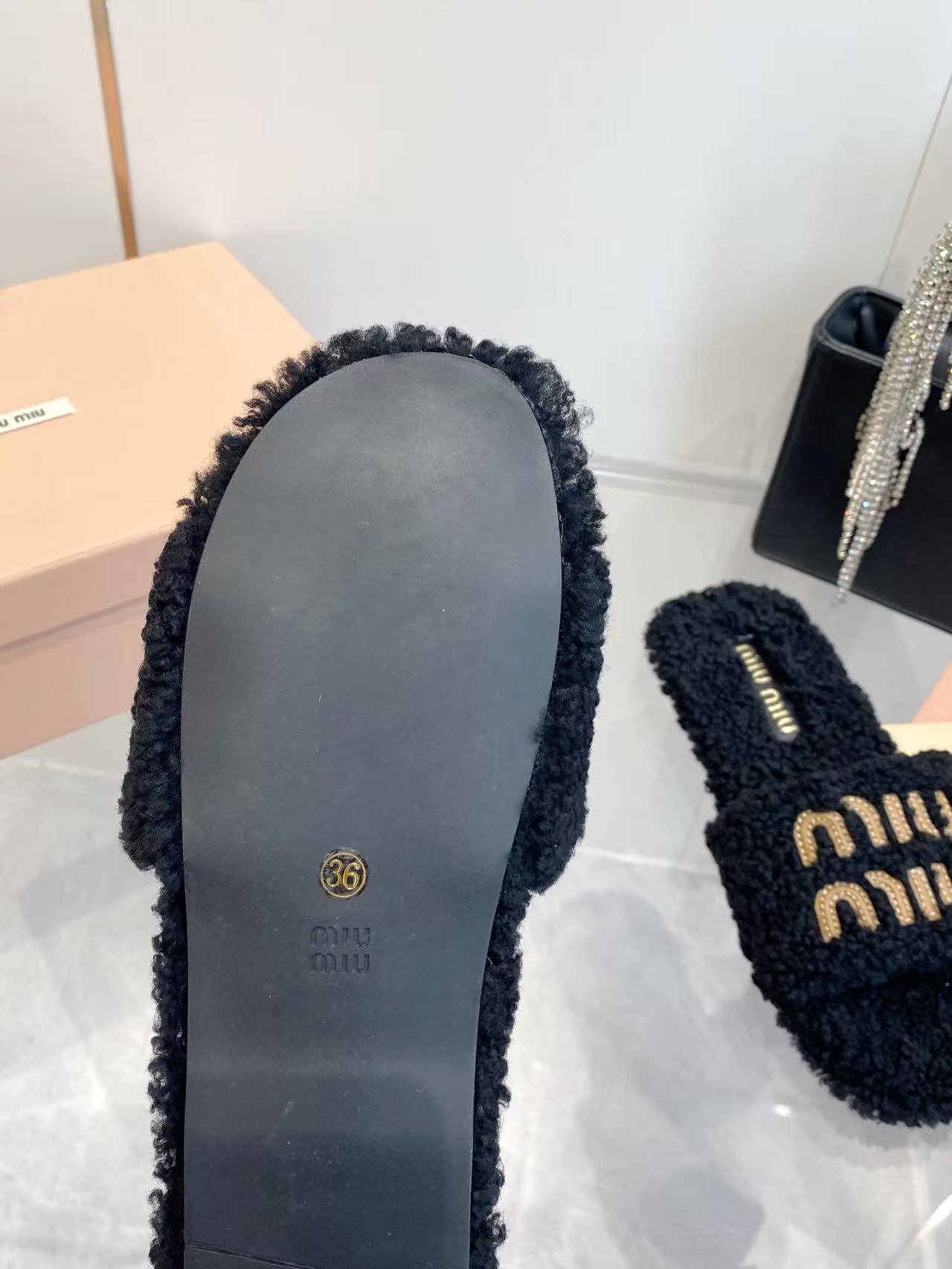 这款鞋子是AAAAA 1:1 质量 (非常棒). 使用了和原版一模一样的材料. 商标部分也保持了和缪缪/Miu Miu一样. 图片拍摄是实物鞋子拍摄, 您所收到的实物保证和我们图片一模一样.
