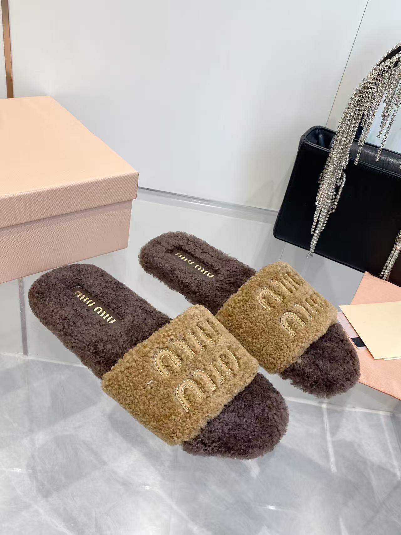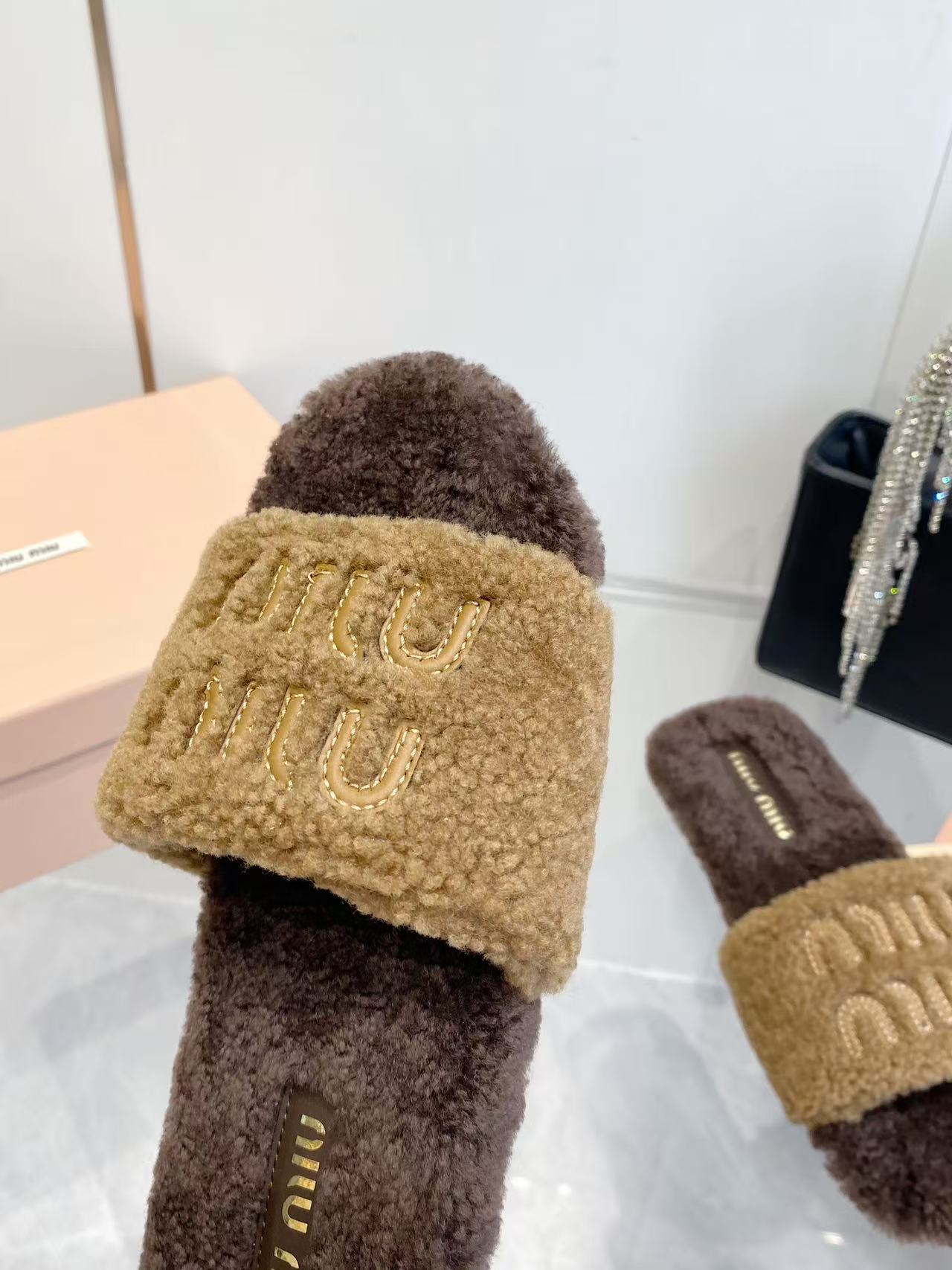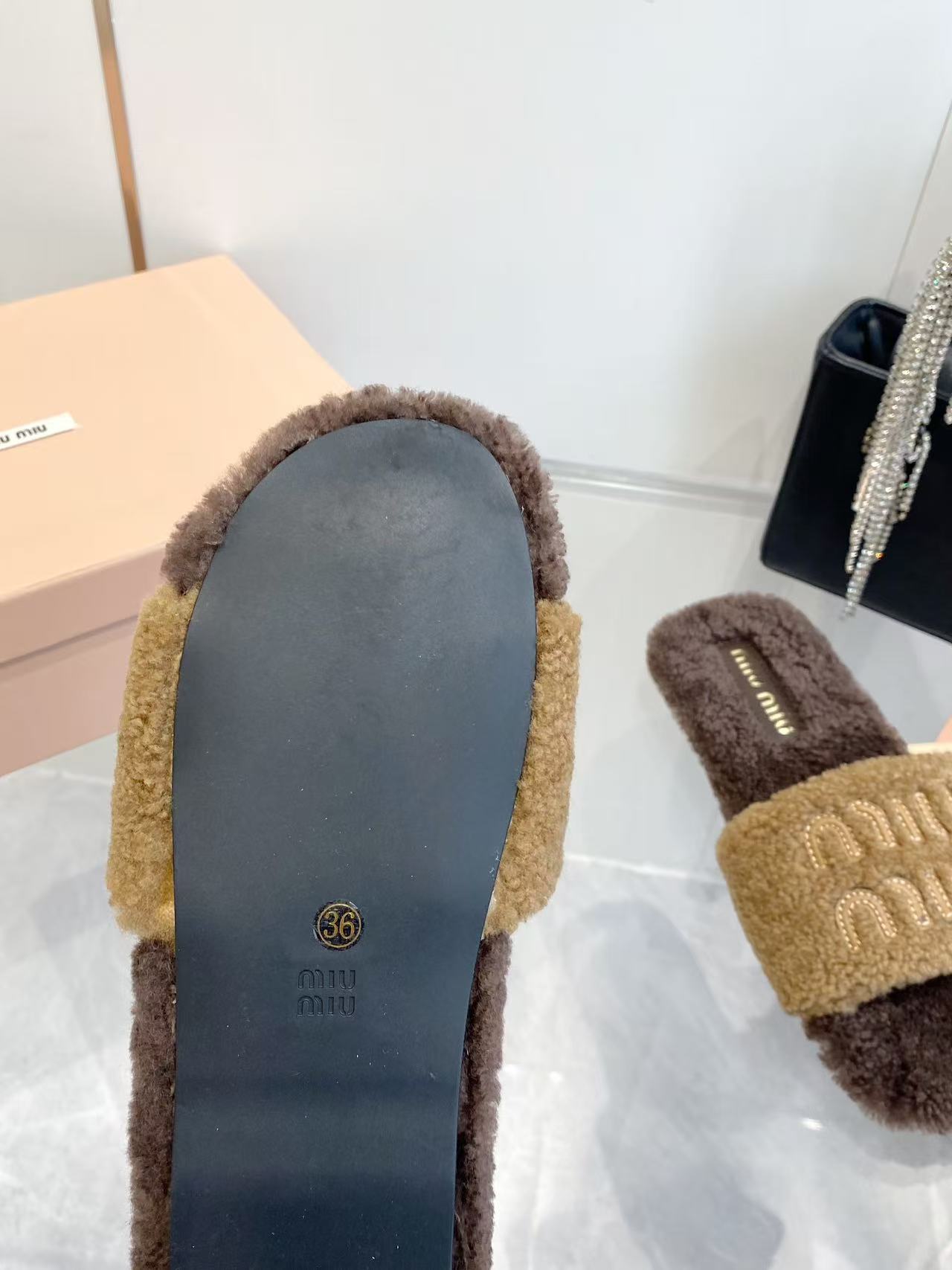 这款鞋子是AAAAA 1:1 质量 (非常棒). 使用了和原版一模一样的材料. 商标部分也保持了和缪缪/Miu Miu一样. 图片拍摄是实物鞋子拍摄, 您所收到的实物保证和我们图片一模一样.
