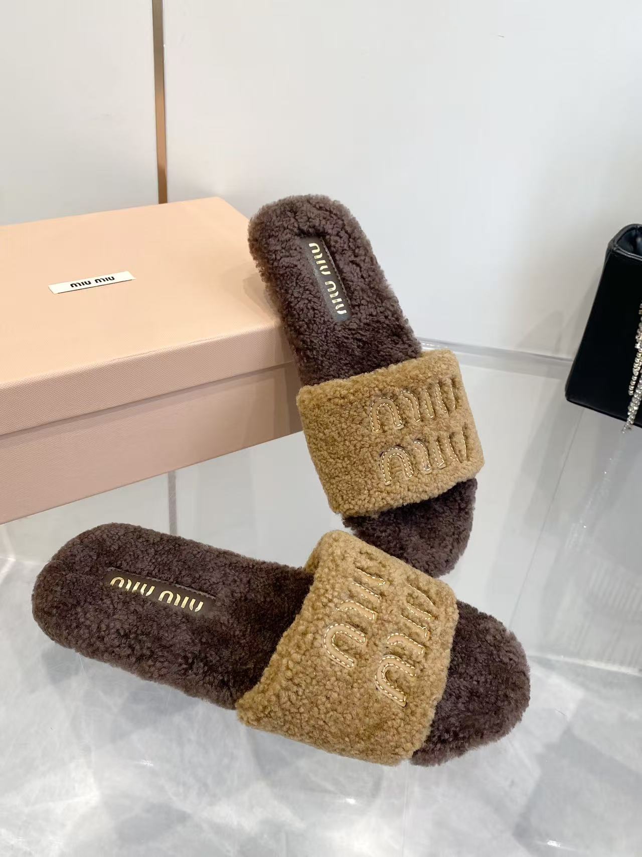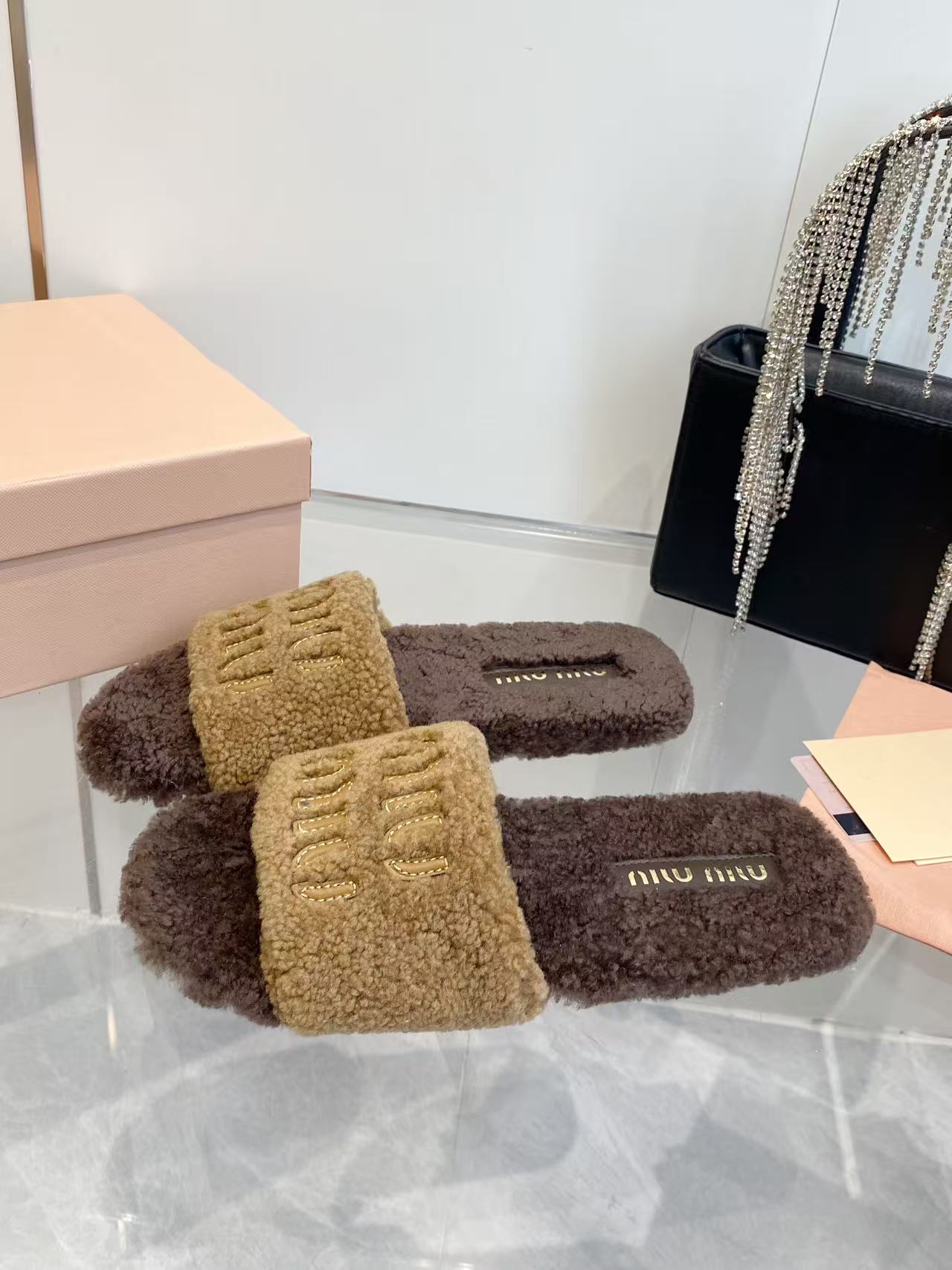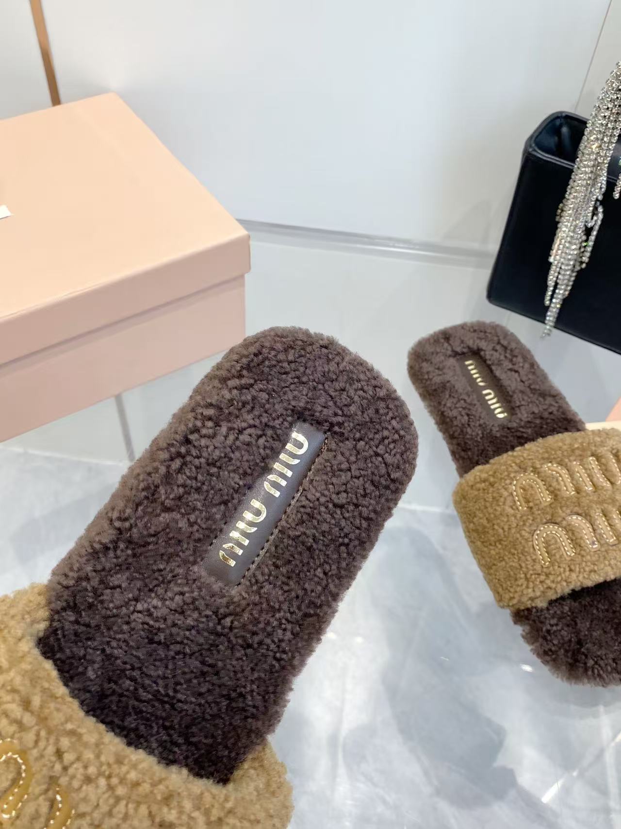 这款鞋子是AAAAA 1:1 质量 (非常棒). 使用了和原版一模一样的材料. 商标部分也保持了和缪缪/Miu Miu一样. 图片拍摄是实物鞋子拍摄, 您所收到的实物保证和我们图片一模一样.