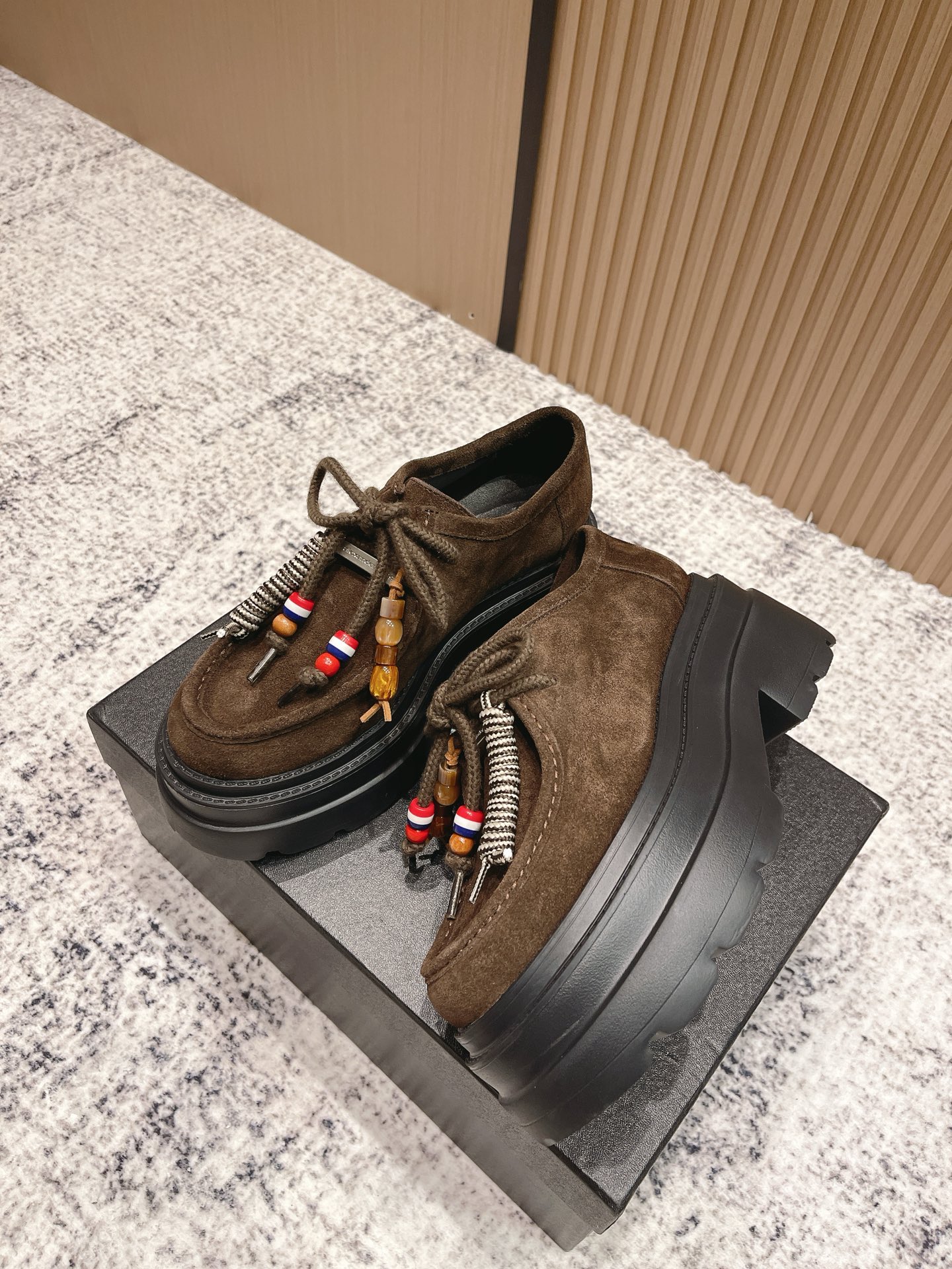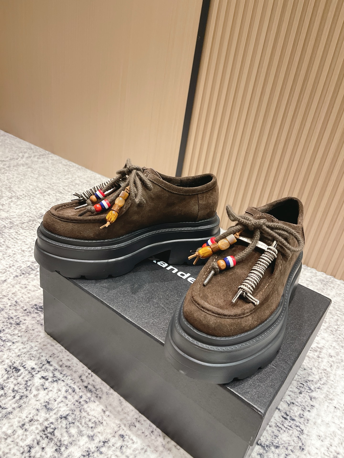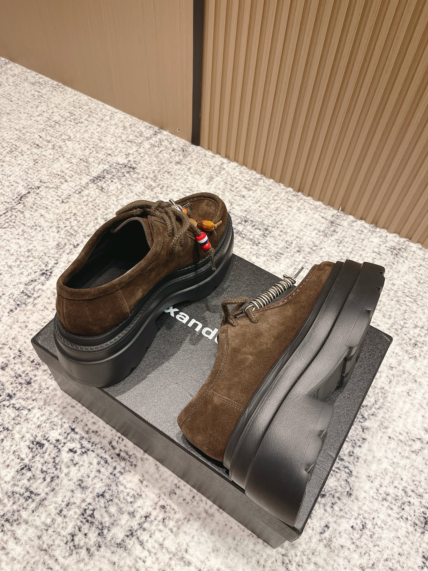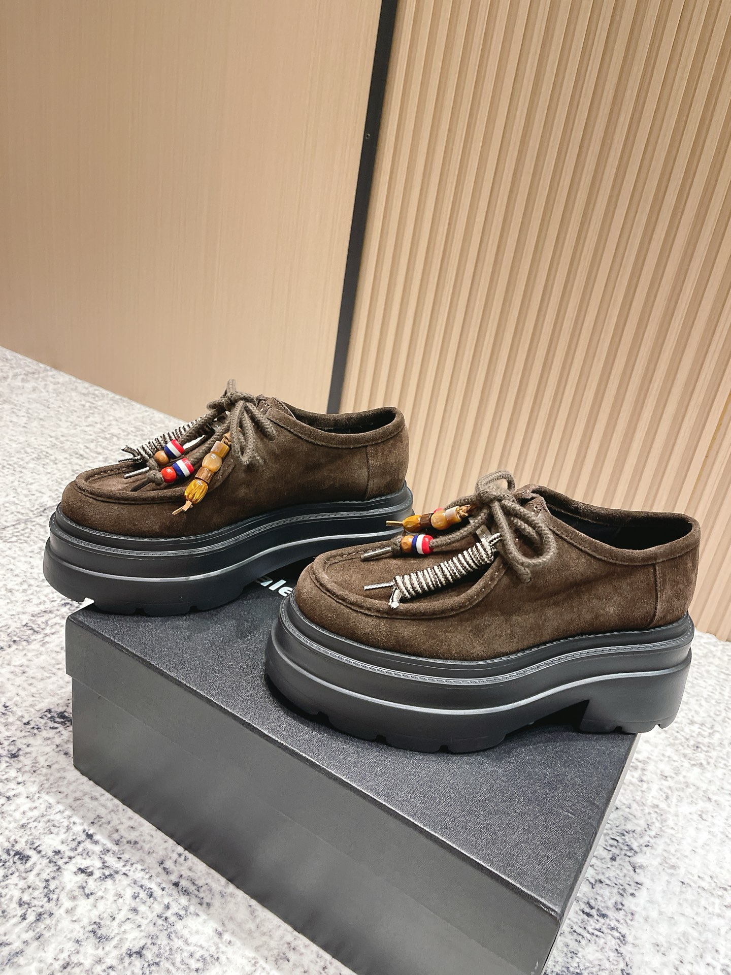 这款鞋子是AAAAA 1:1 质量 (非常棒). 使用了和原版一模一样的材料. 商标部分也保持了和亚历山大王/Alexander Wang一样. 图片拍摄是实物鞋子拍摄, 您所收到的实物保证和我们图片一模一样.