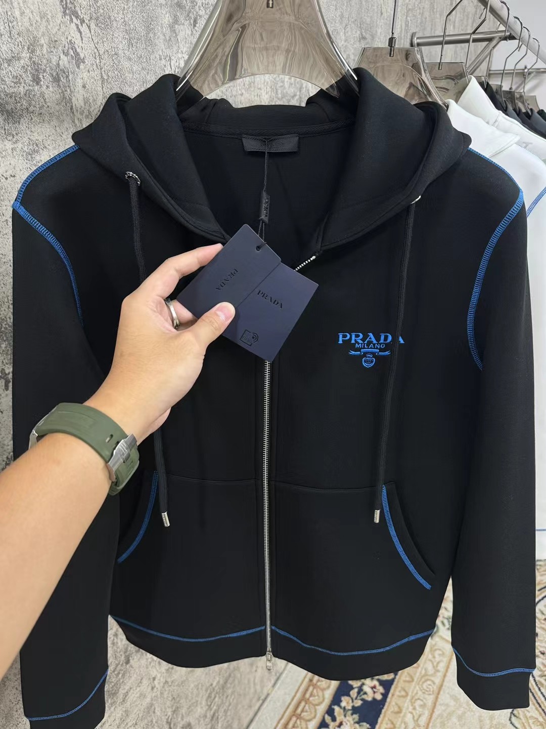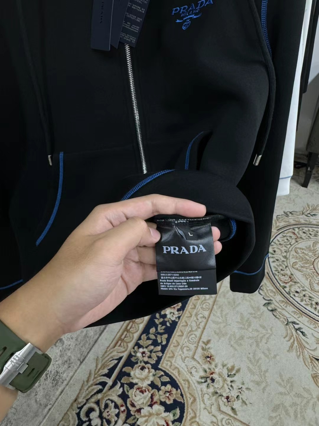 这款衣服是AAAAA 1:1 质量 (非常棒). 使用了和原版一模一样的材料. 商标部分也保持了和普拉达/Prada一样. 图片拍摄是实物衣服拍摄, 您所收到的实物保证和我们图片一模一样.