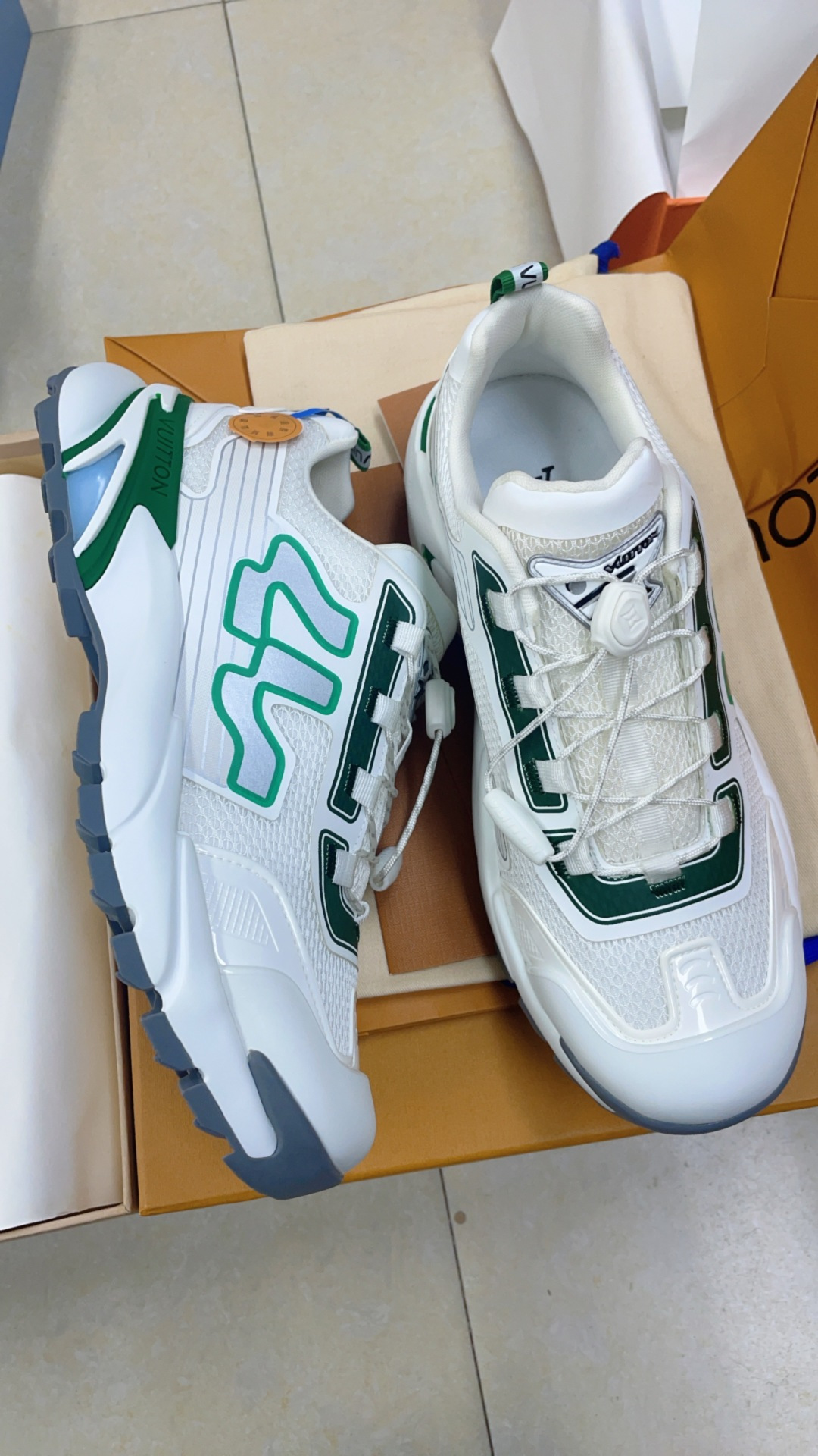这款鞋子是AAAAA 1:1 质量 (非常棒). 使用了和原版一模一样的材料. 商标部分也保持了和路易威登/Louis Vuitton一样. 图片拍摄是实物鞋子拍摄, 您所收到的实物保证和我们图片一模一样.