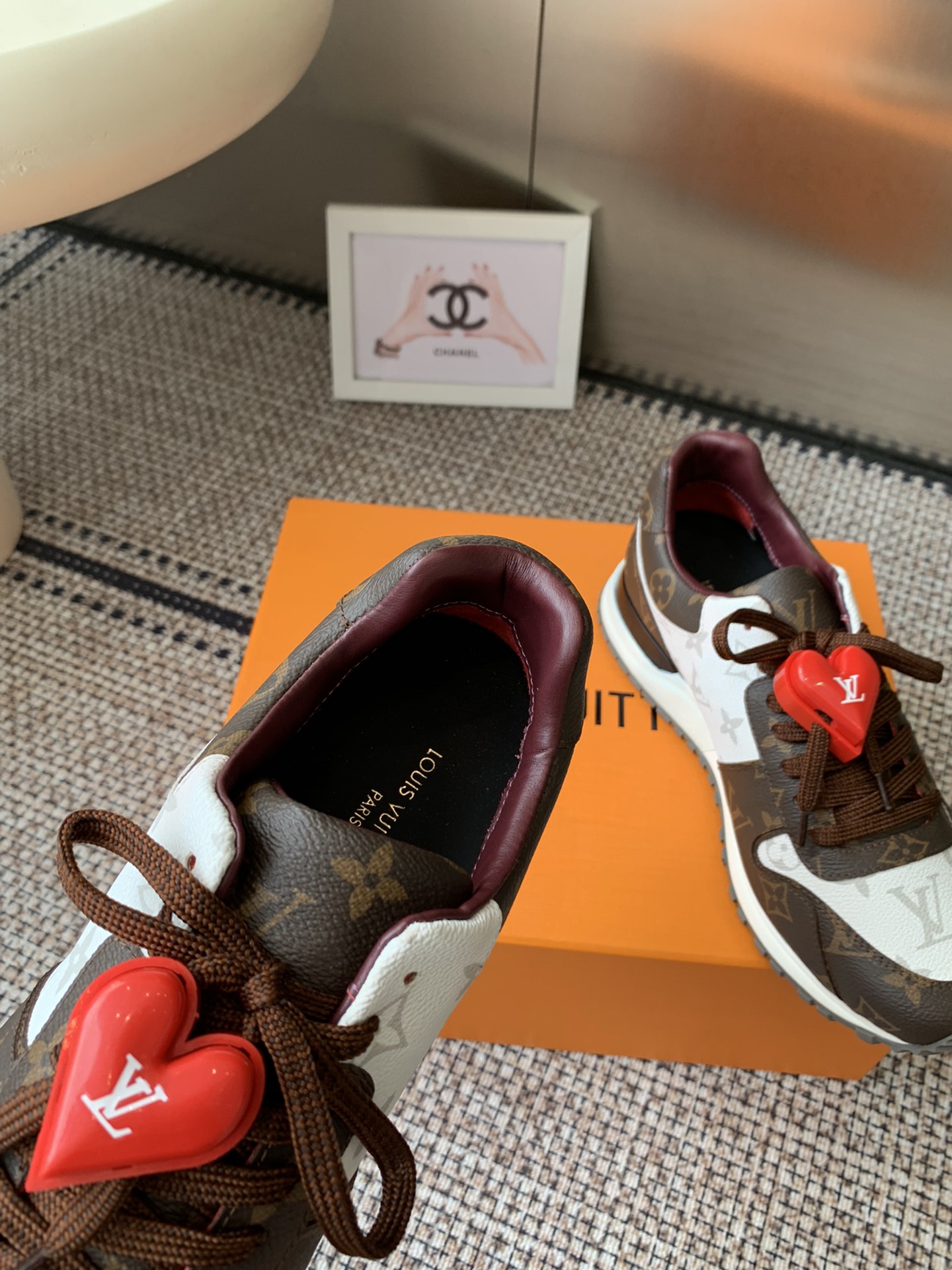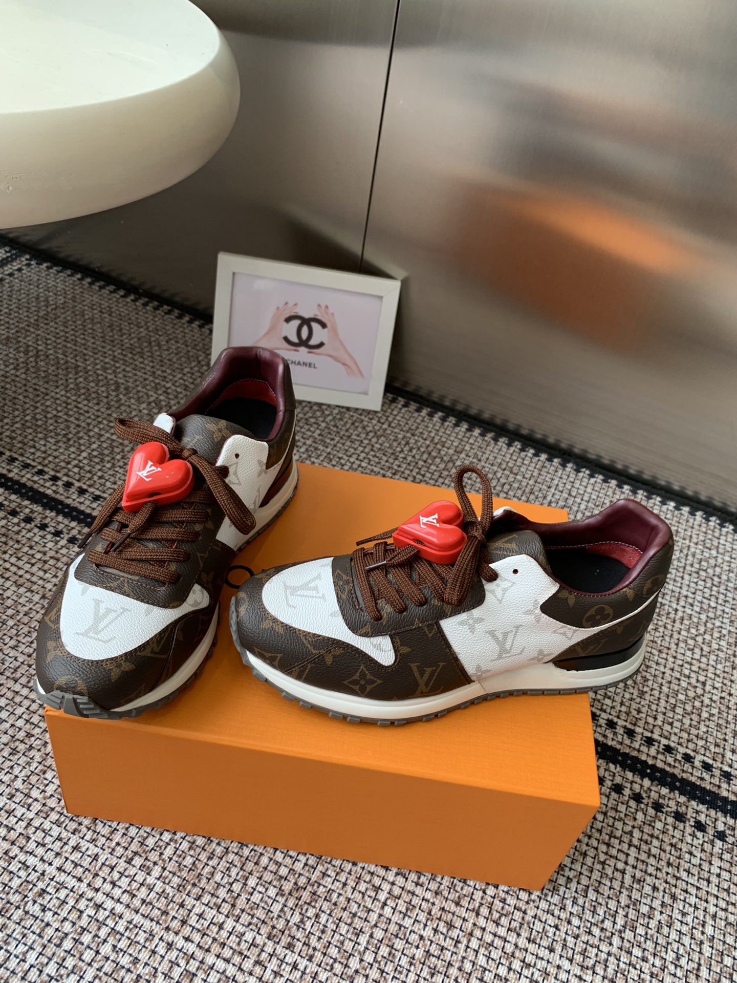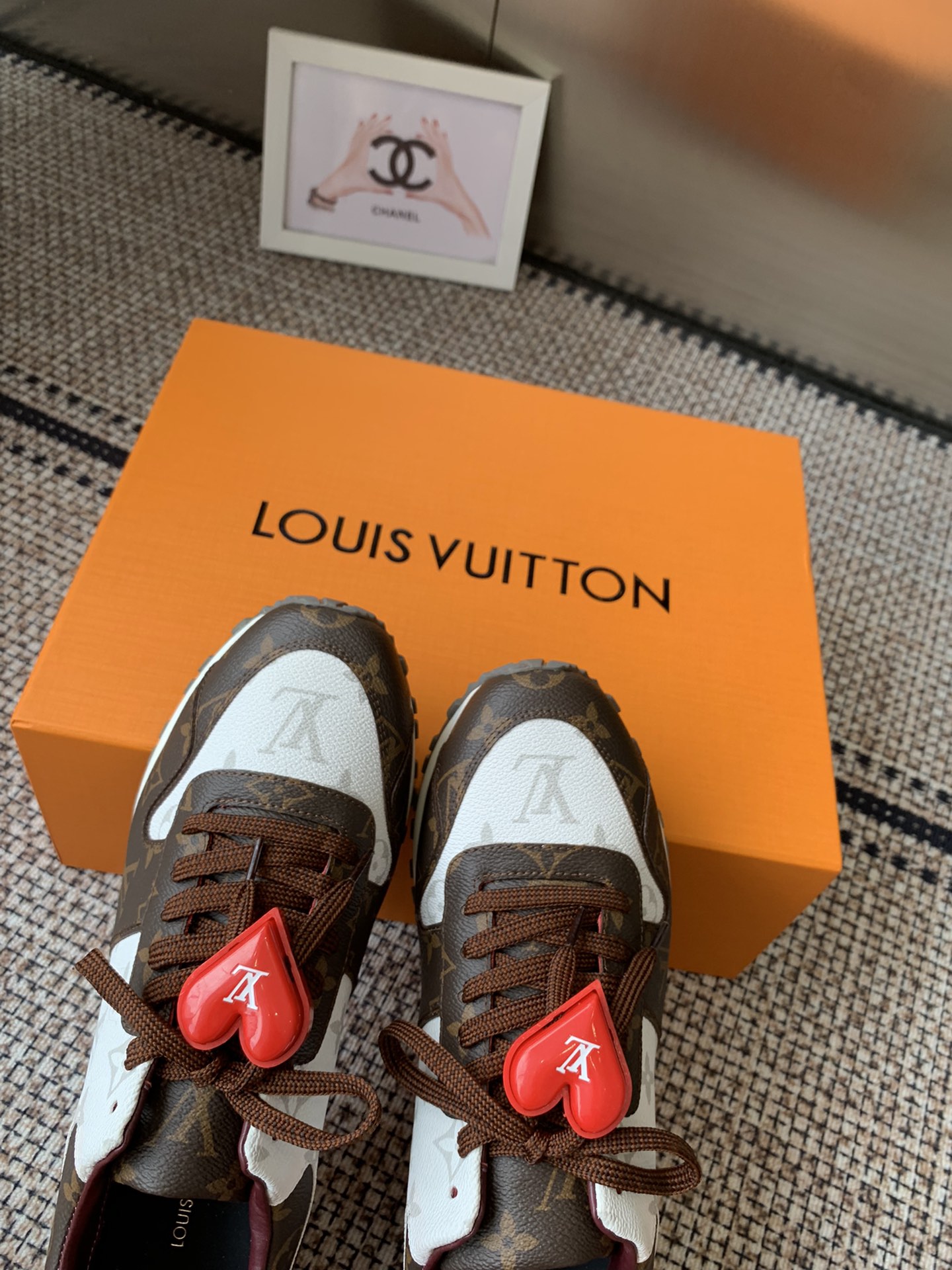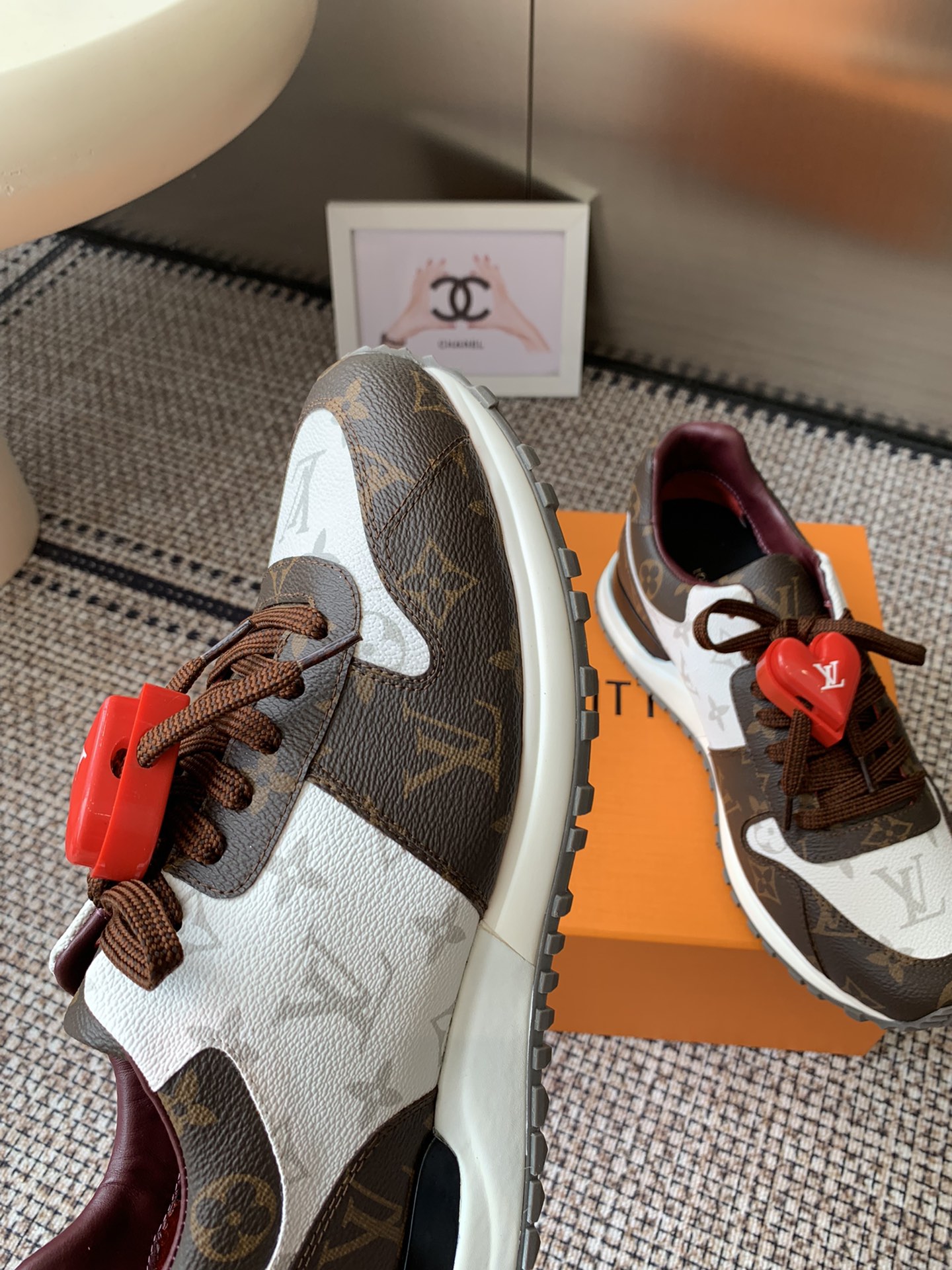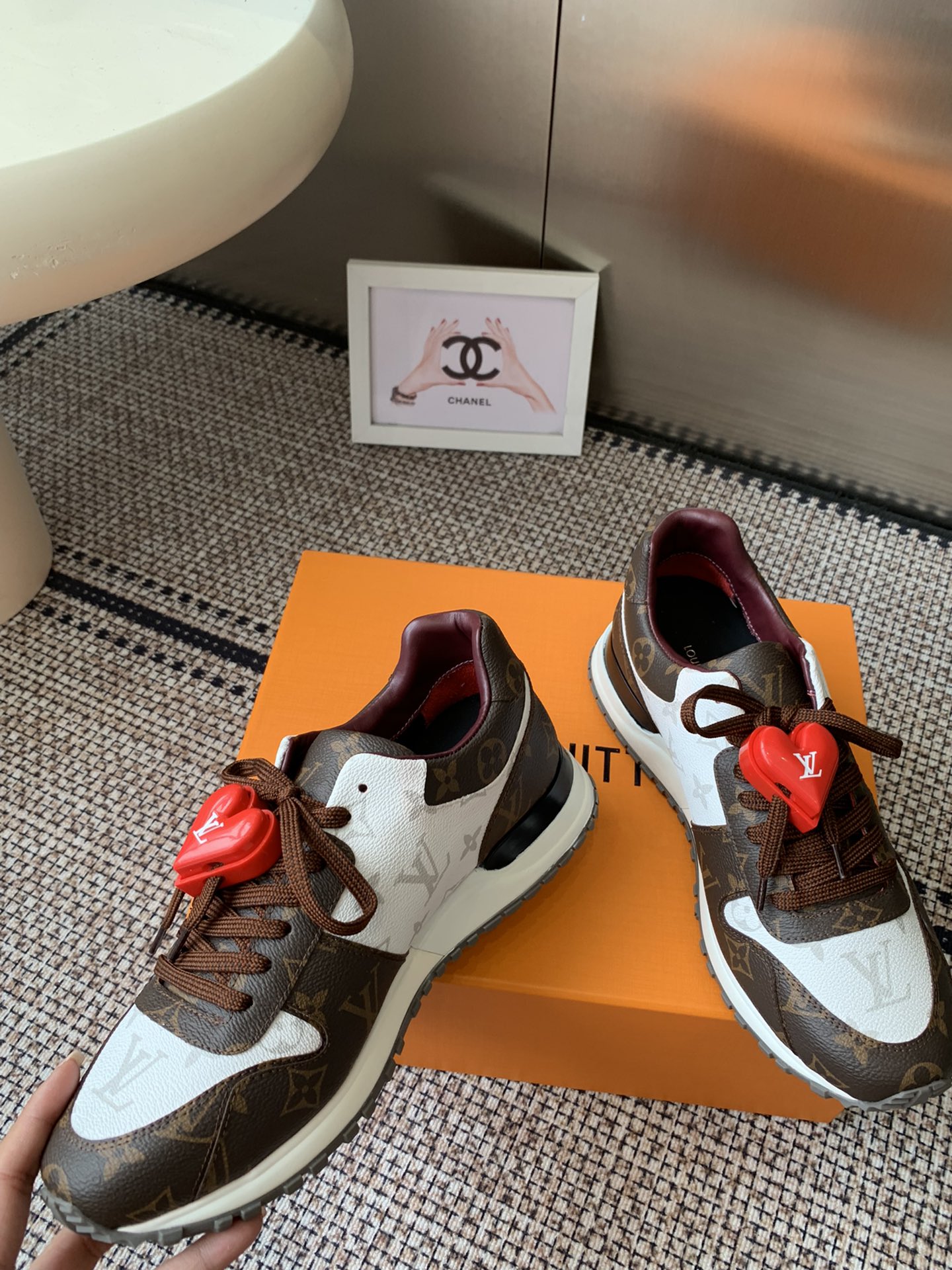 这款鞋子是AAAAA 1:1 质量 (非常棒). 使用了和原版一模一样的材料. 商标部分也保持了和路易威登/Louis Vuitton一样. 图片拍摄是实物鞋子拍摄, 您所收到的实物保证和我们图片一模一样.