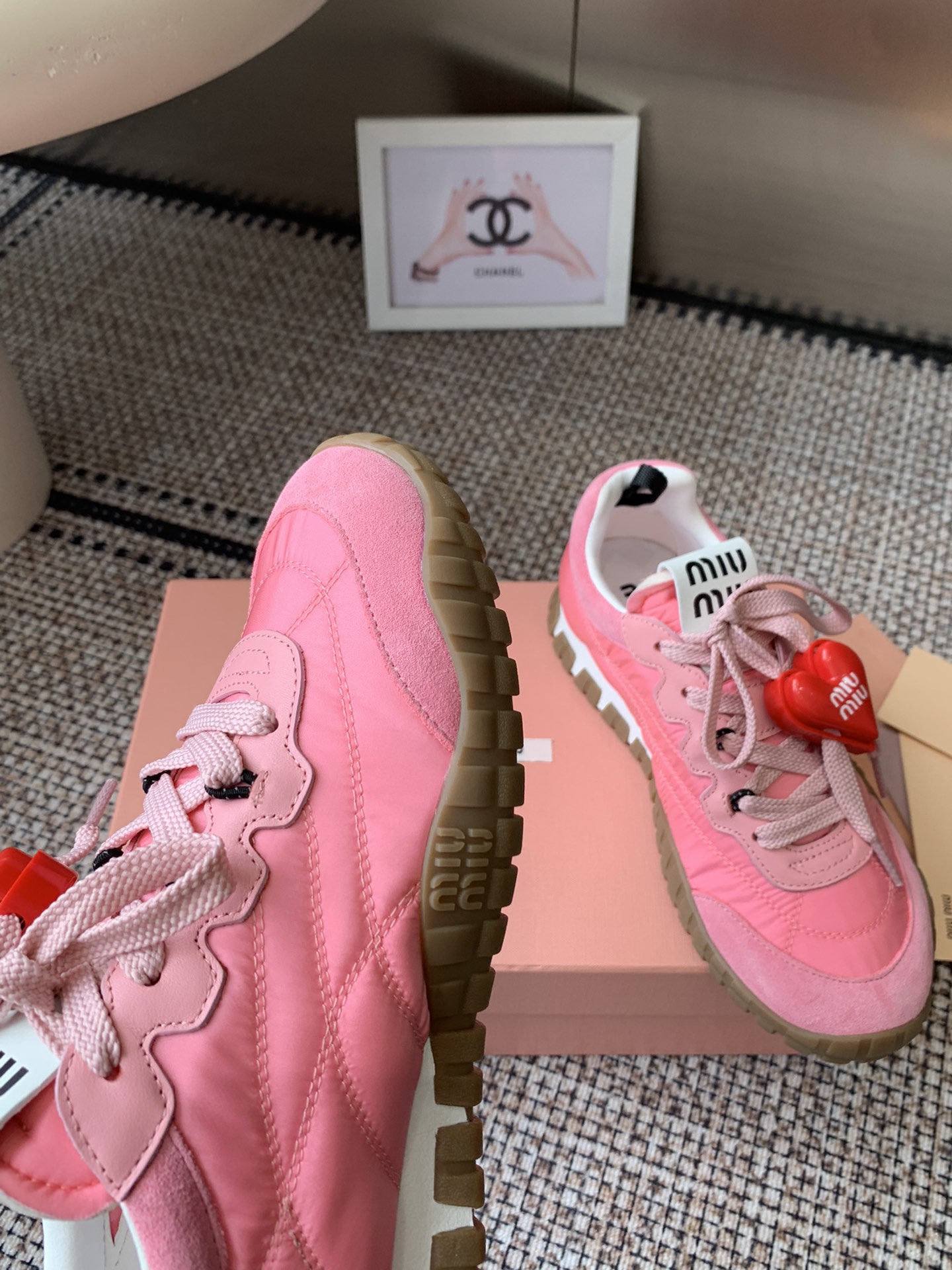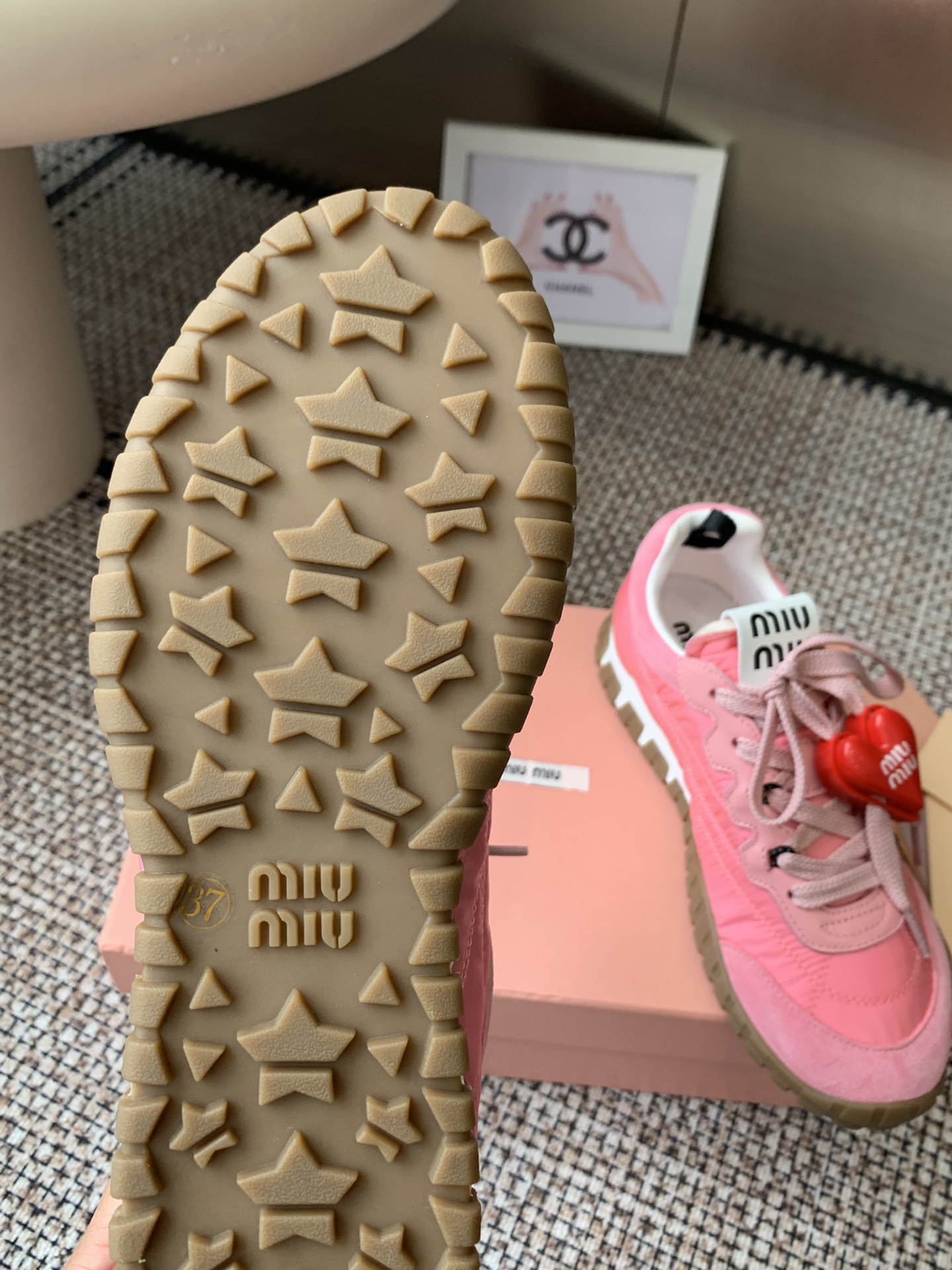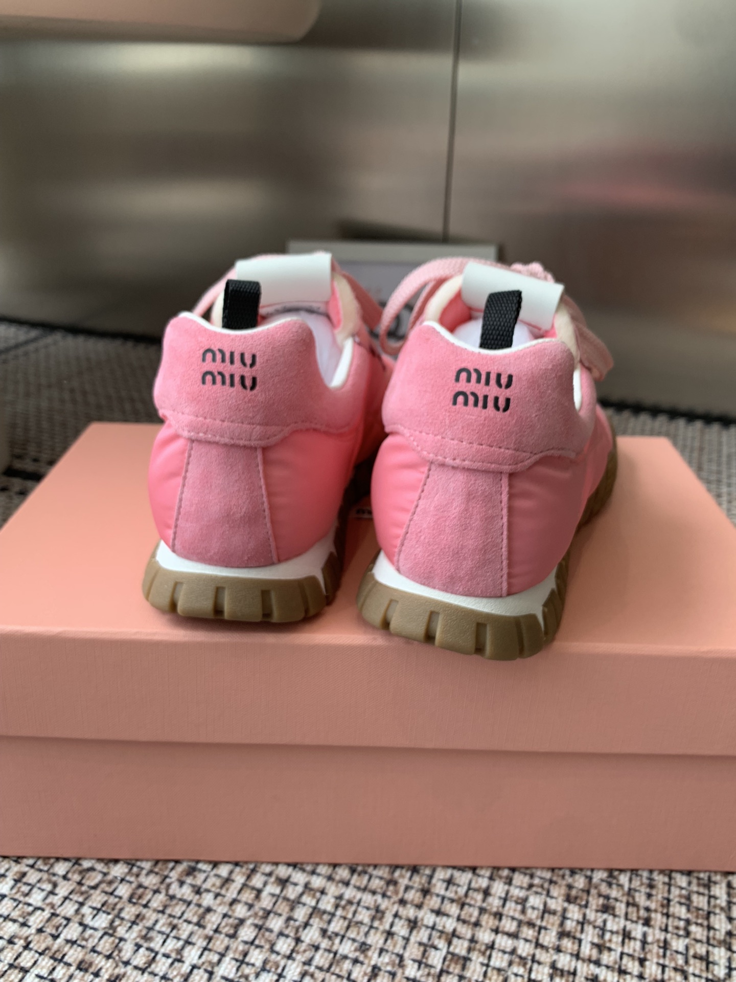 这款鞋子是AAAAA 1:1 质量 (非常棒). 使用了和原版一模一样的材料. 商标部分也保持了和缪缪/Miu Miu一样. 图片拍摄是实物鞋子拍摄, 您所收到的实物保证和我们图片一模一样.