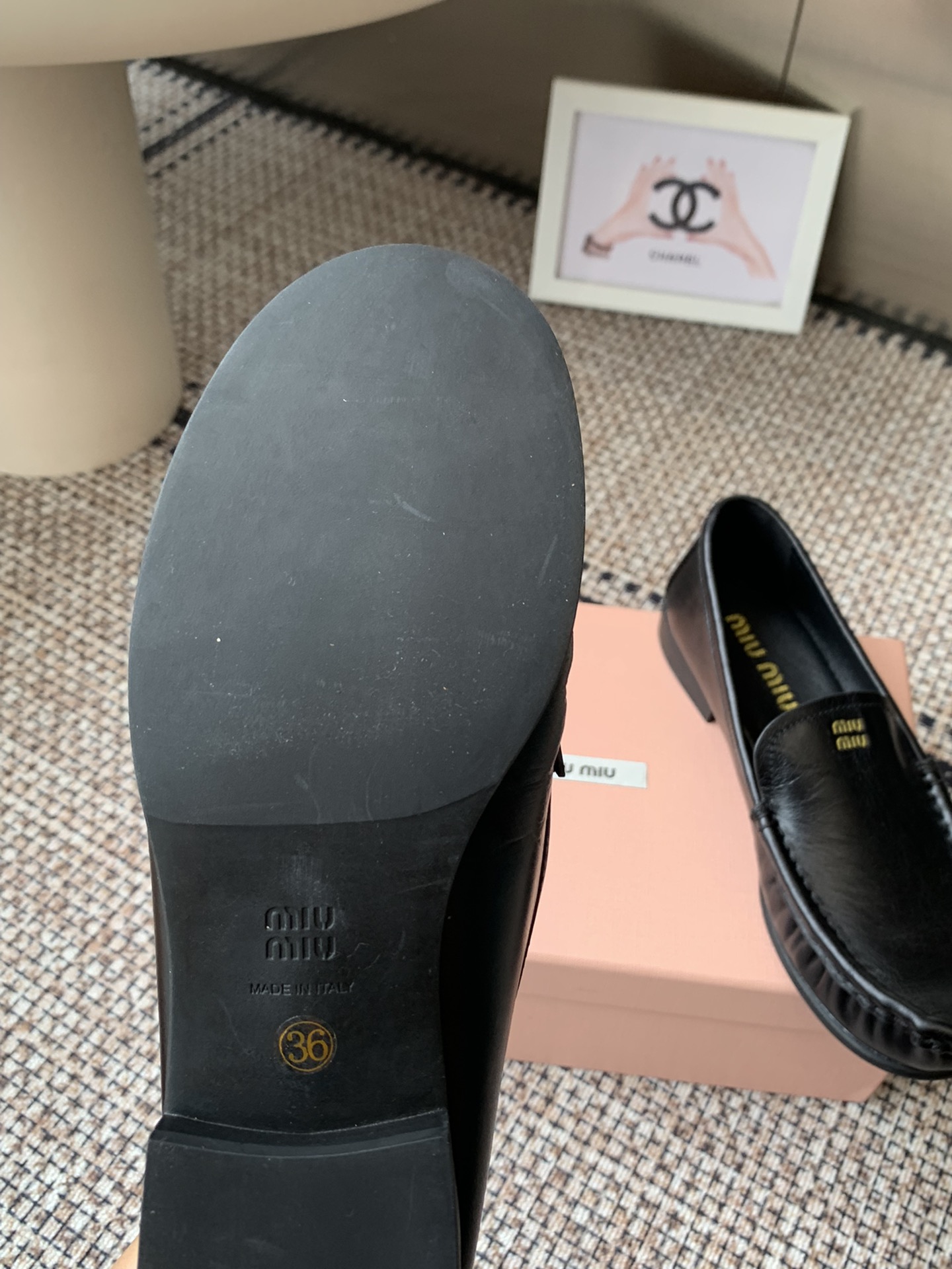 这款鞋子是AAAAA 1:1 质量 (非常棒). 使用了和原版一模一样的材料. 商标部分也保持了和缪缪/Miu Miu一样. 图片拍摄是实物鞋子拍摄, 您所收到的实物保证和我们图片一模一样.