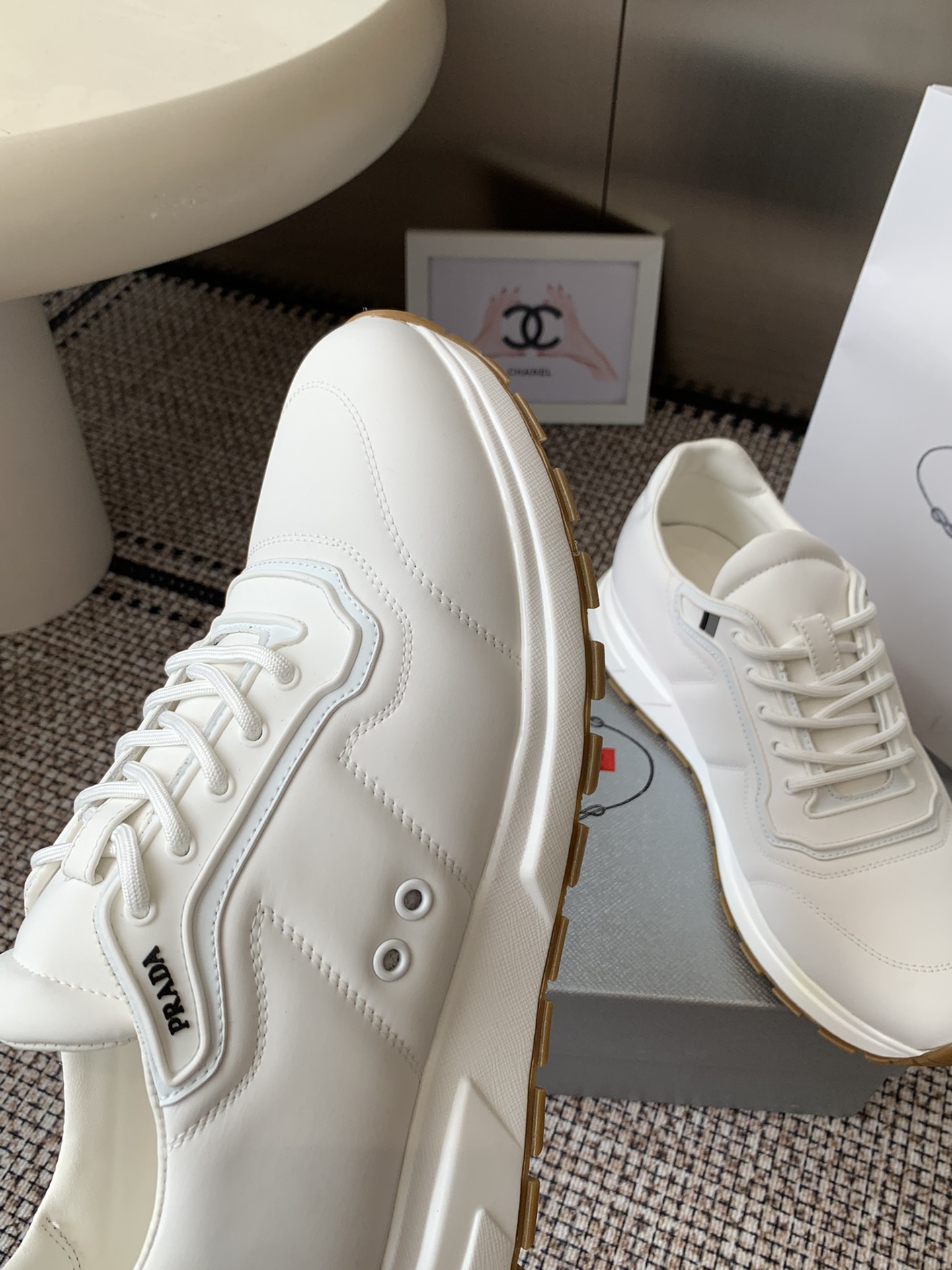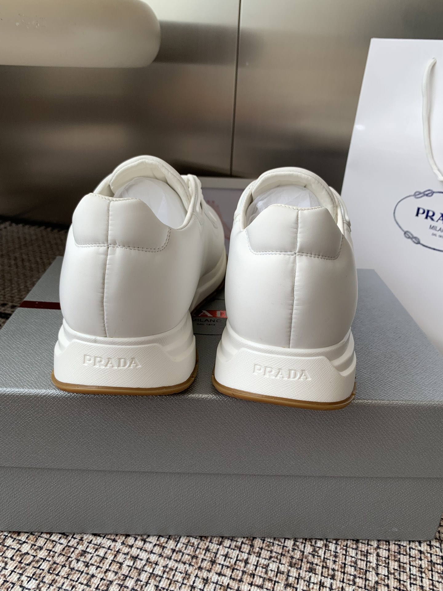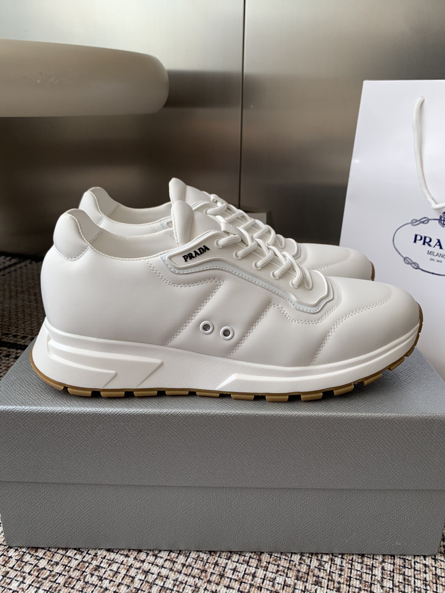 这款鞋子是AAAAA 1:1 质量 (非常棒). 使用了和原版一模一样的材料. 商标部分也保持了和普拉达/Prada一样. 图片拍摄是实物鞋子拍摄, 您所收到的实物保证和我们图片一模一样.