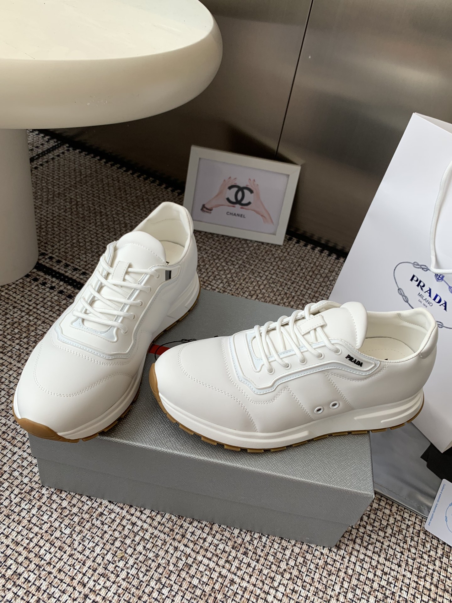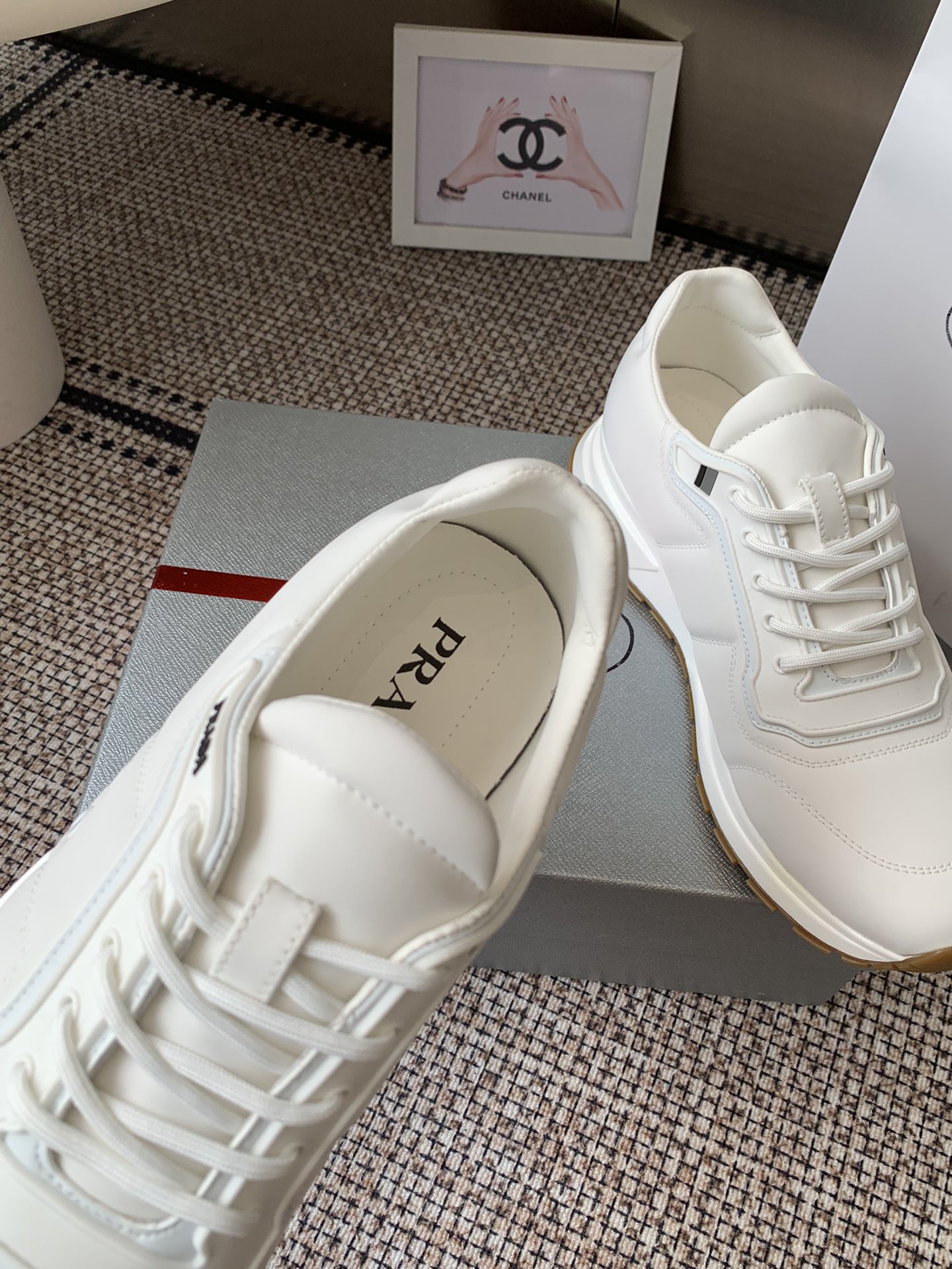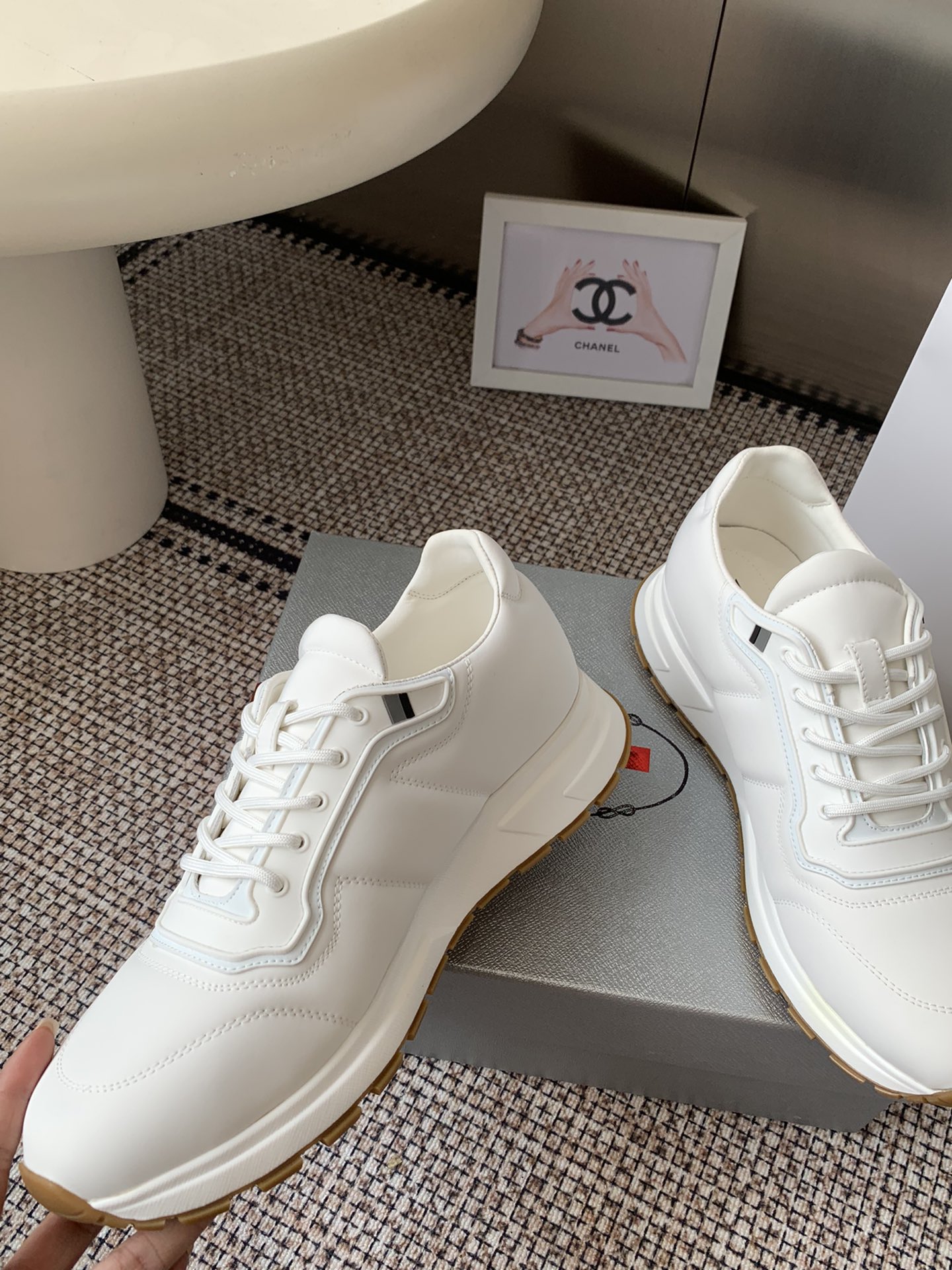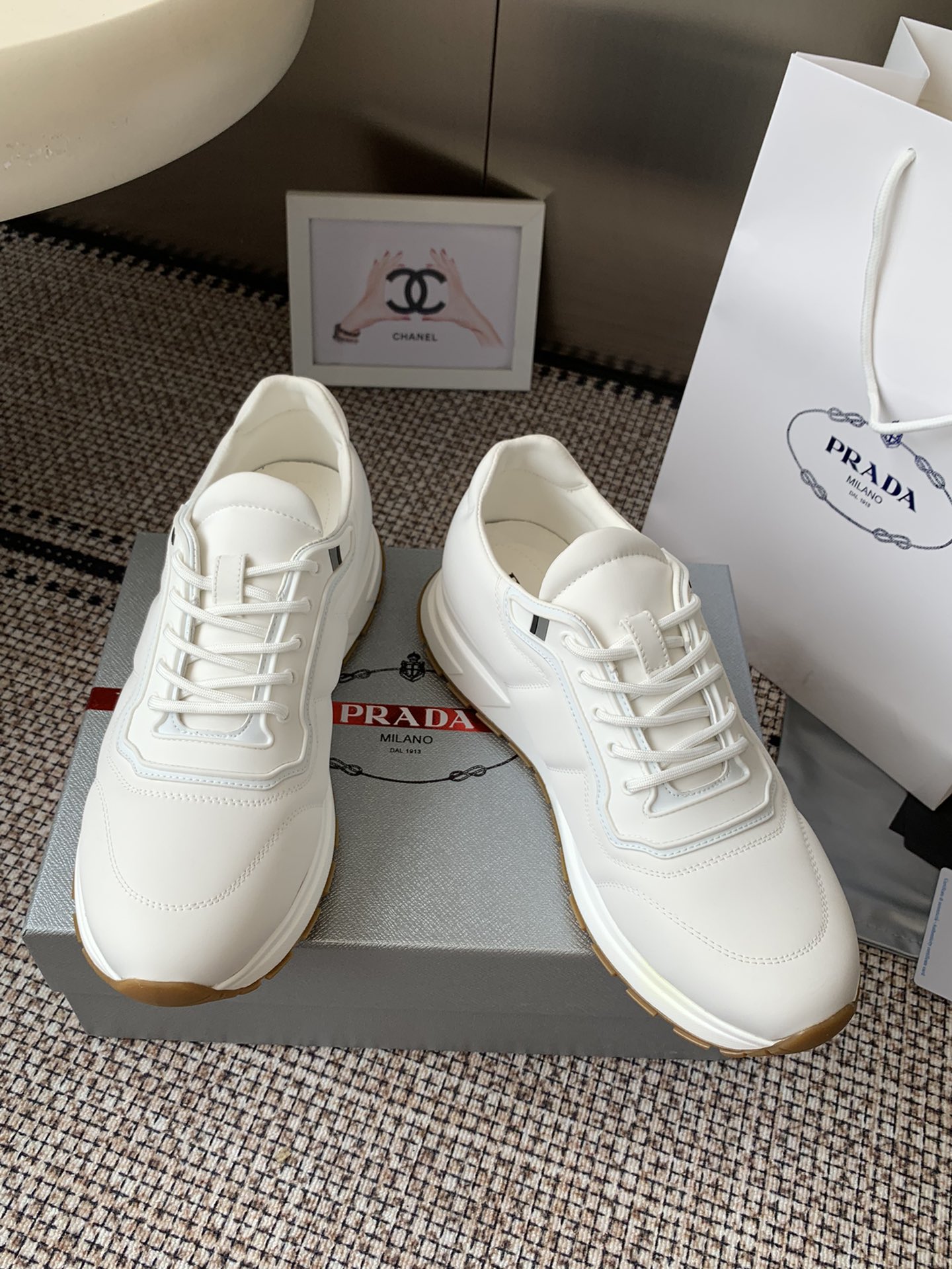 这款鞋子是AAAAA 1:1 质量 (非常棒). 使用了和原版一模一样的材料. 商标部分也保持了和普拉达/Prada一样. 图片拍摄是实物鞋子拍摄, 您所收到的实物保证和我们图片一模一样.
