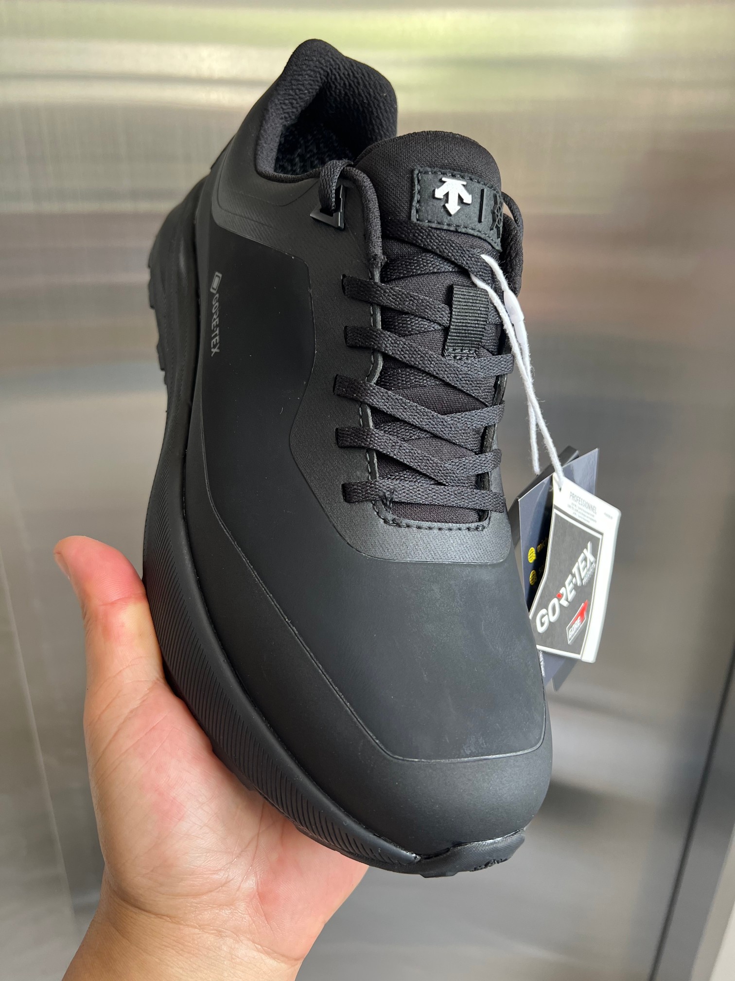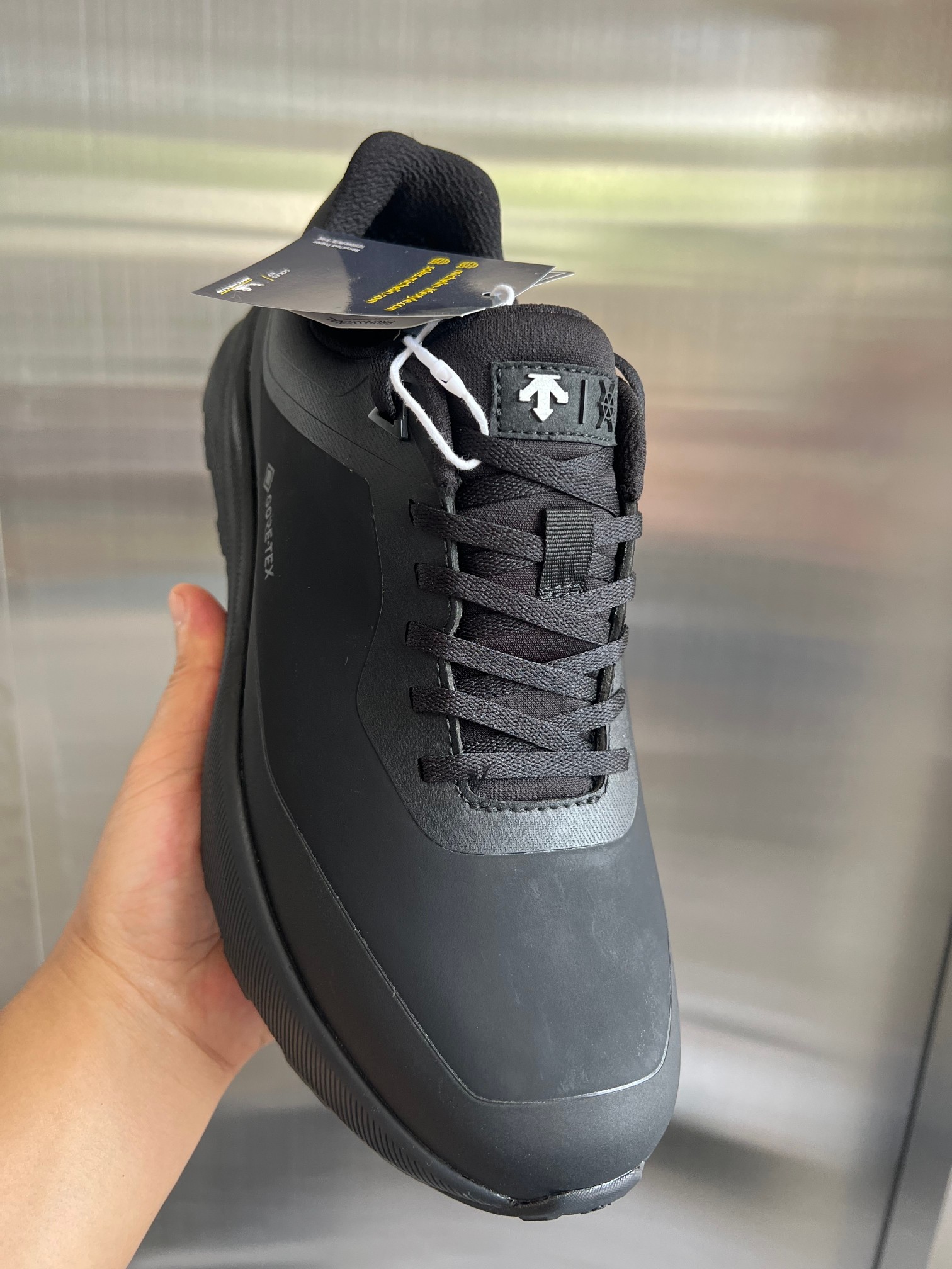 这款鞋子是AAAAA 1:1 质量 (非常棒). 使用了和原版一模一样的材料. 商标部分也保持了和Descente一样. 图片拍摄是实物鞋子拍摄, 您所收到的实物保证和我们图片一模一样.