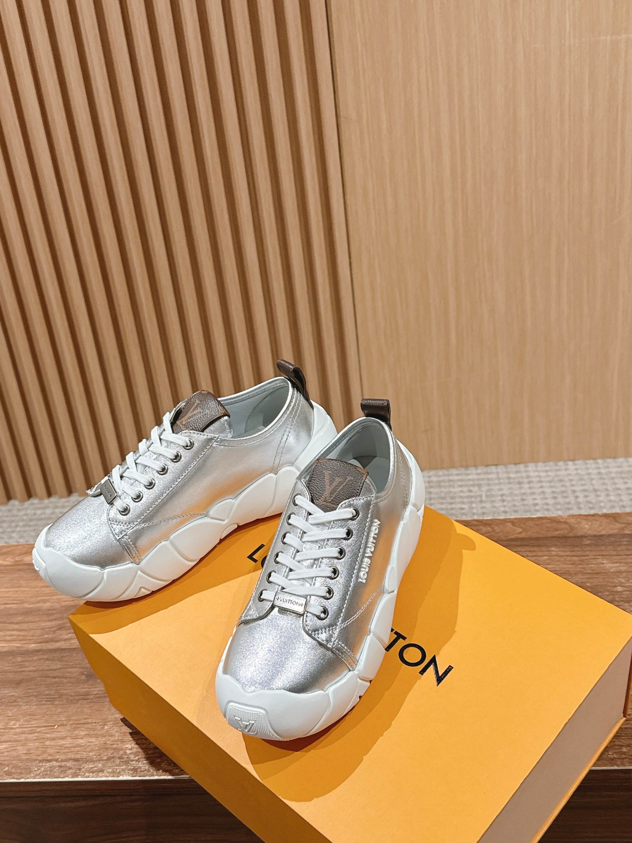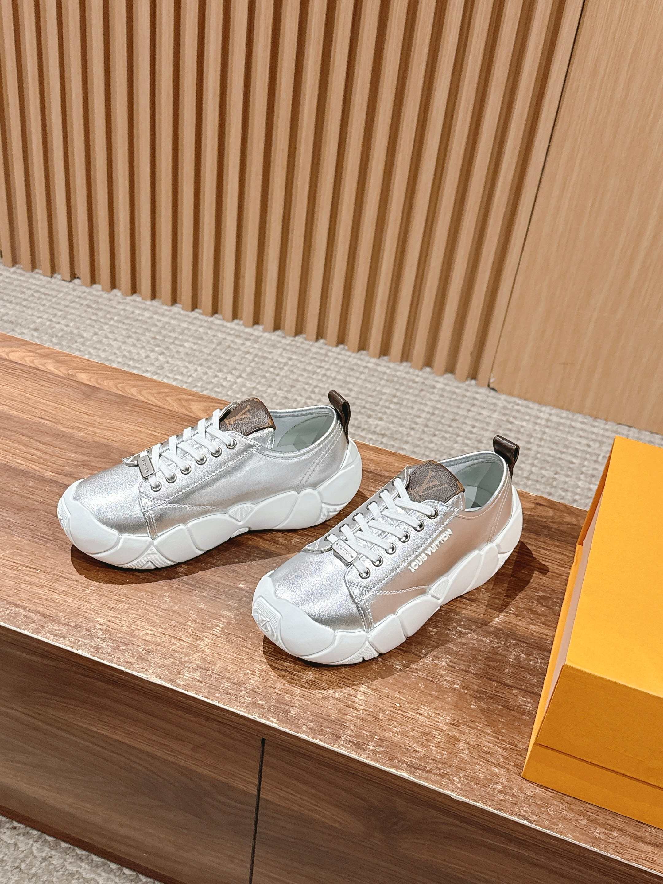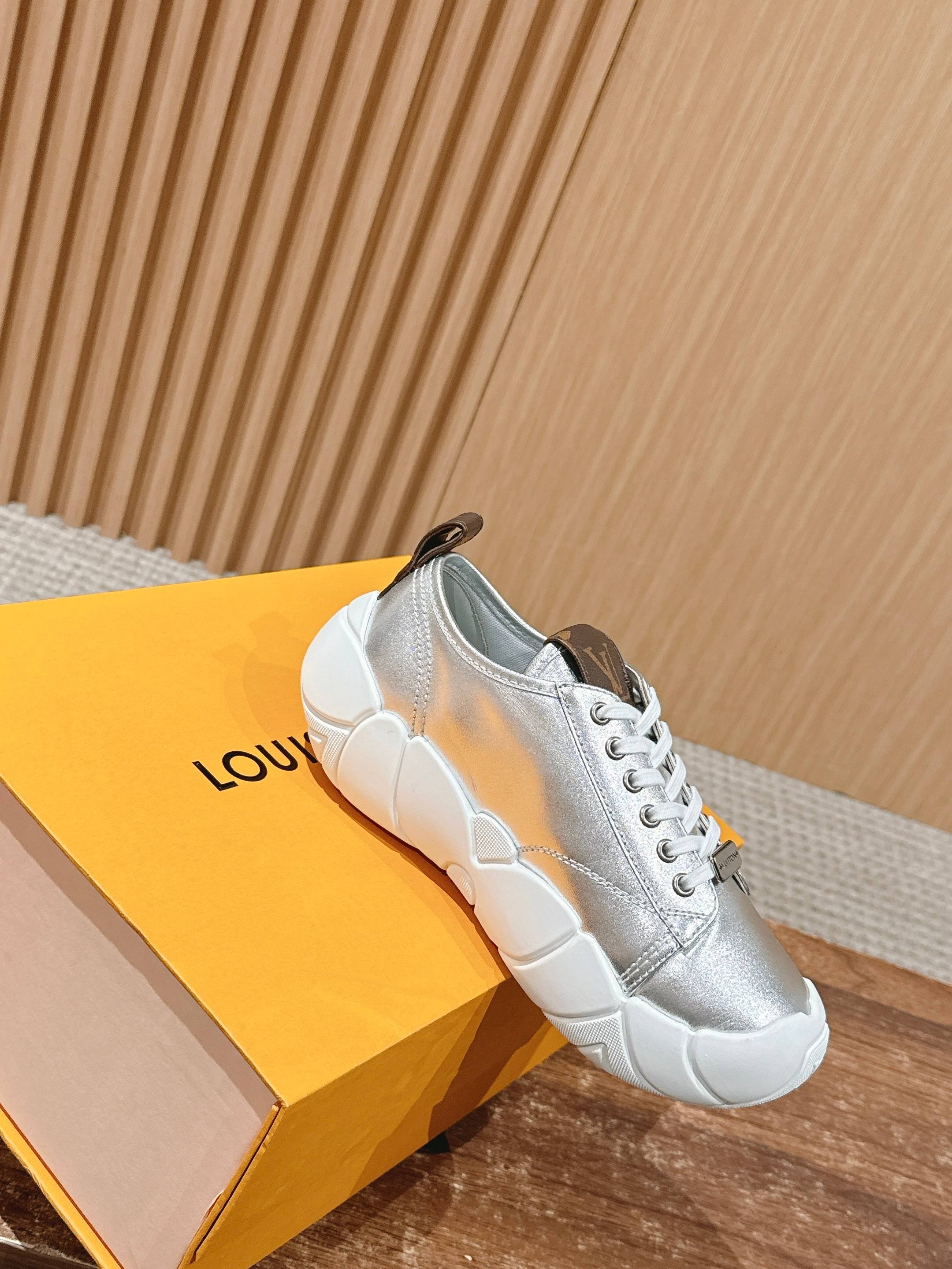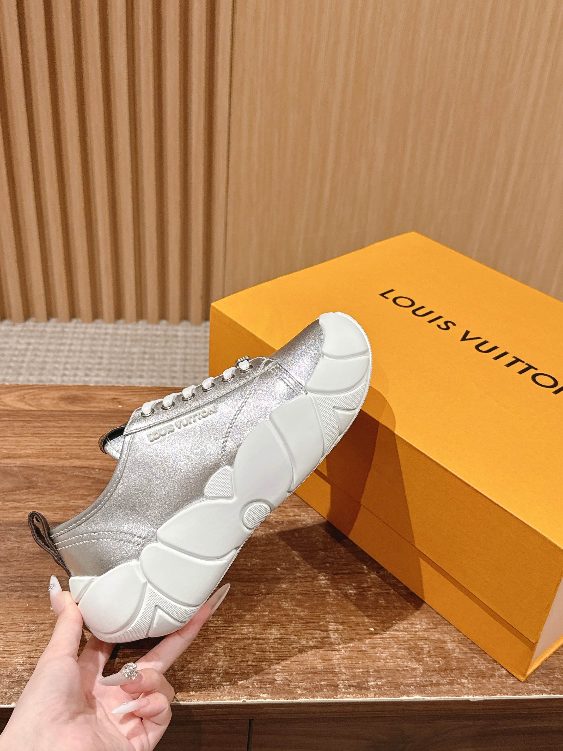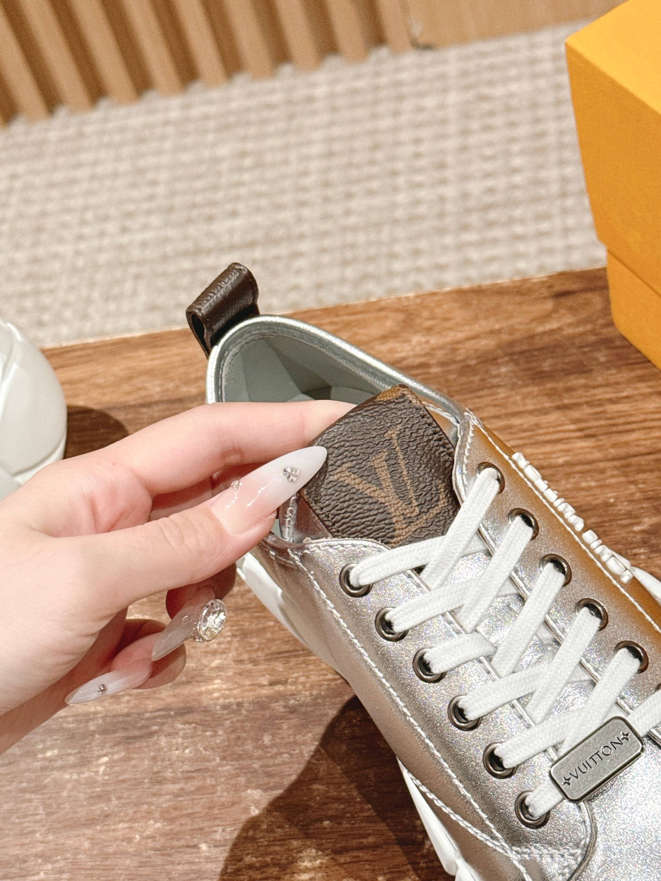 这款鞋子是AAAAA 1:1 质量 (非常棒). 使用了和原版一模一样的材料. 商标部分也保持了和路易威登/Louis Vuitton一样. 图片拍摄是实物鞋子拍摄, 您所收到的实物保证和我们图片一模一样.