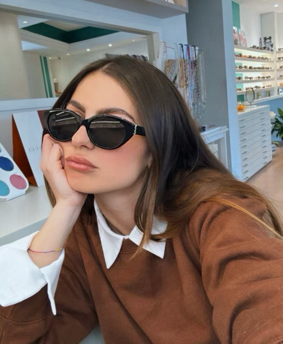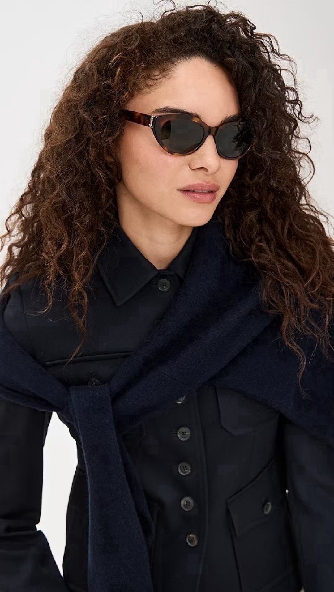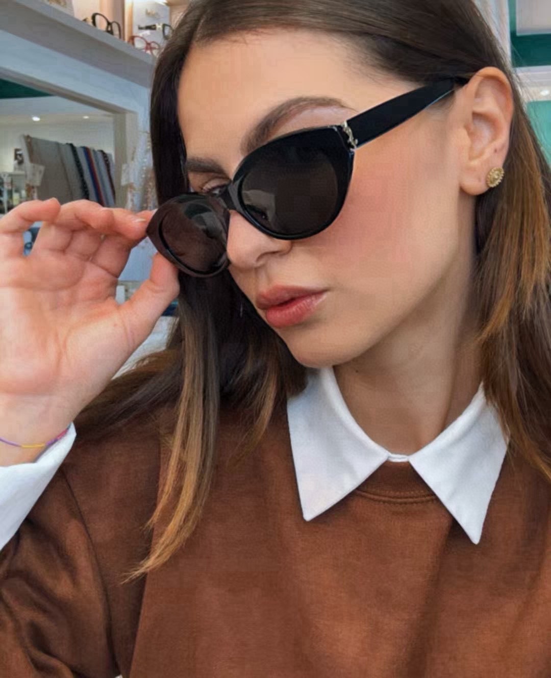 这款太阳眼镜是AAAAA 1:1 质量 (非常棒). 使用了和原版一模一样的材料. 商标部分也保持了和圣罗兰/Saint Laurent一样. 图片拍摄是实物太阳眼镜拍摄, 您所收到的实物保证和我们图片一模一样.