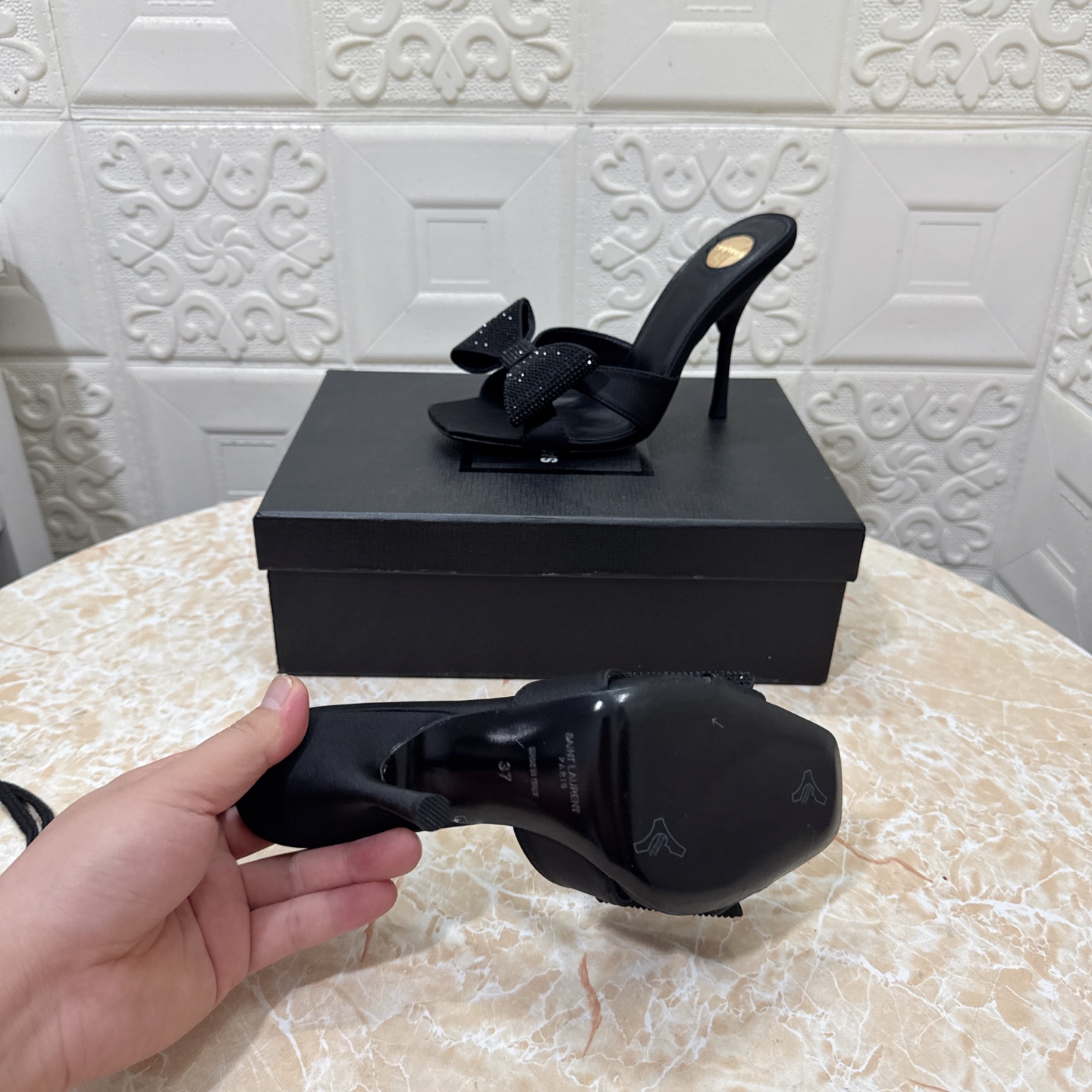 这款鞋子是AAAAA 1:1 质量 (非常棒). 使用了和原版一模一样的材料. 商标部分也保持了和圣罗兰/Saint Laurent一样. 图片拍摄是实物鞋子拍摄, 您所收到的实物保证和我们图片一模一样.
