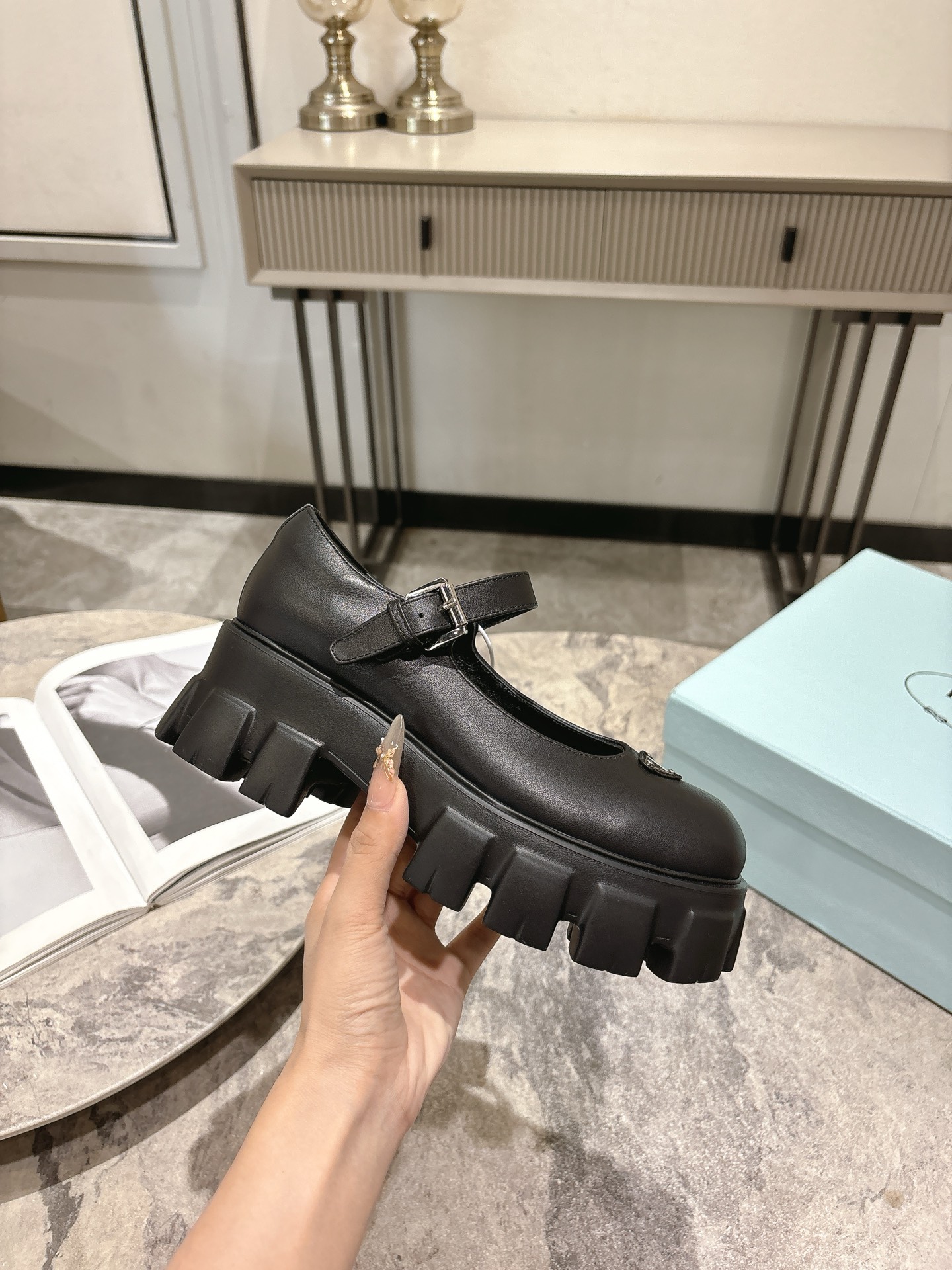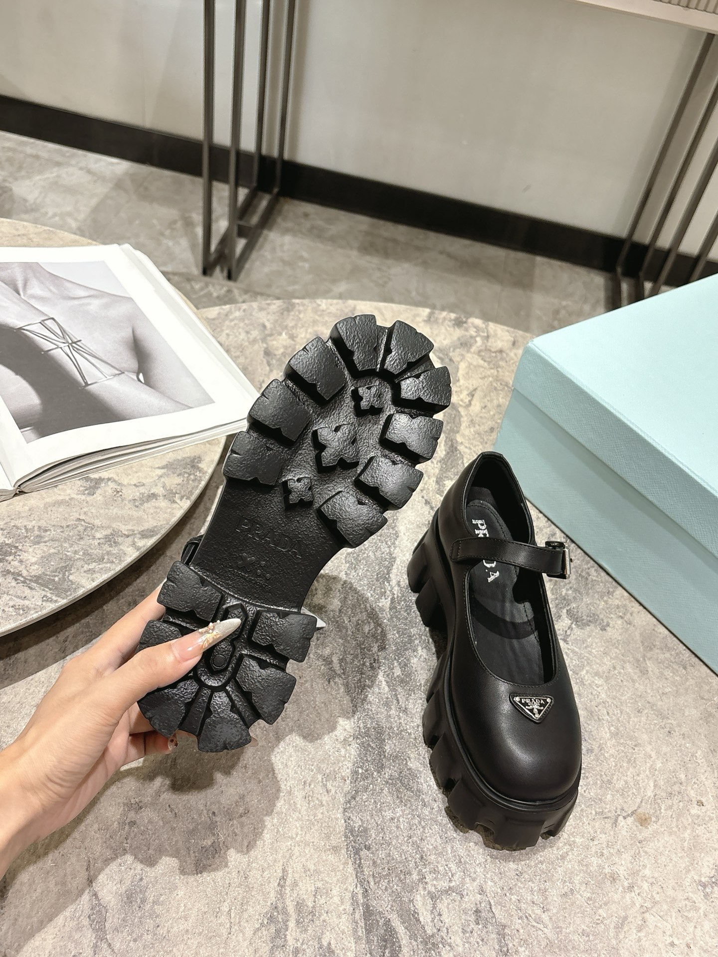 这款鞋子是AAAAA 1:1 质量 (非常棒). 使用了和原版一模一样的材料. 商标部分也保持了和普拉达/Prada一样. 图片拍摄是实物鞋子拍摄, 您所收到的实物保证和我们图片一模一样.
